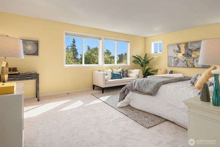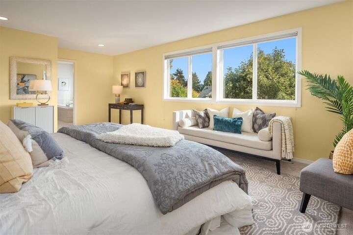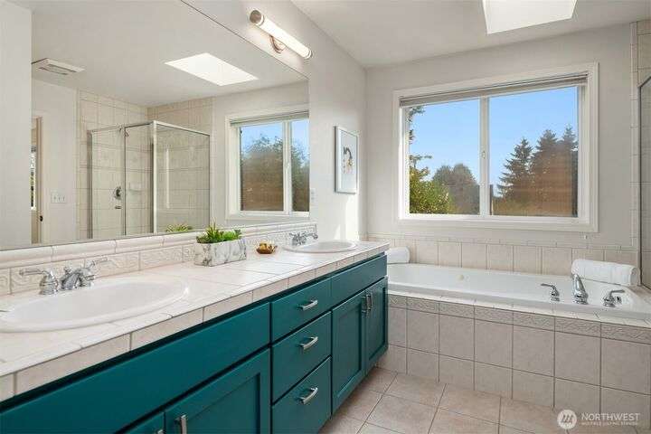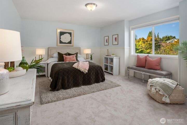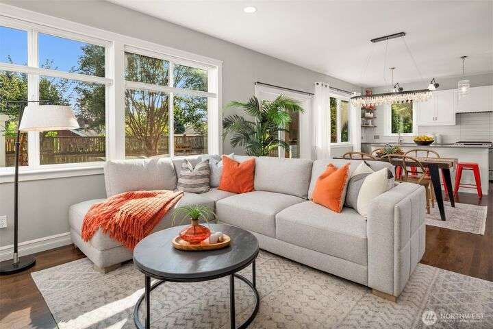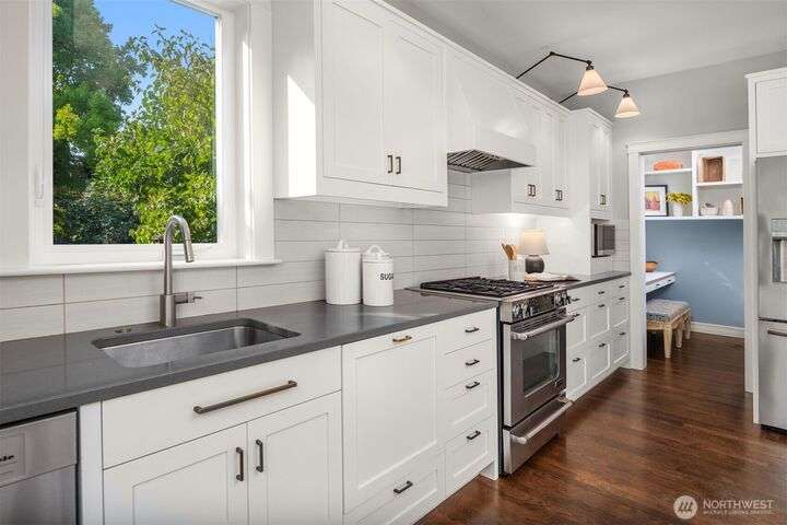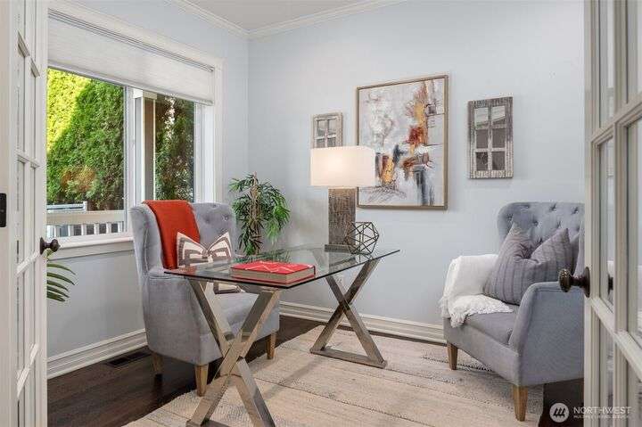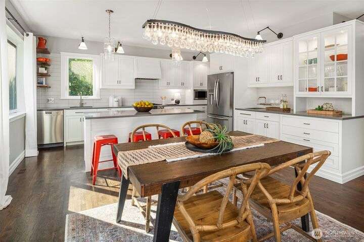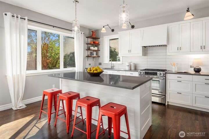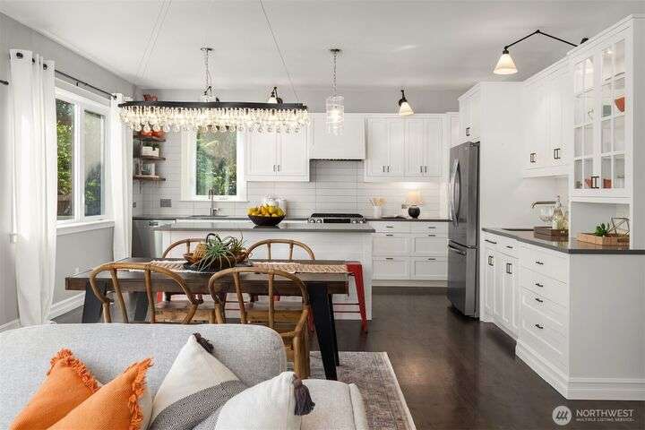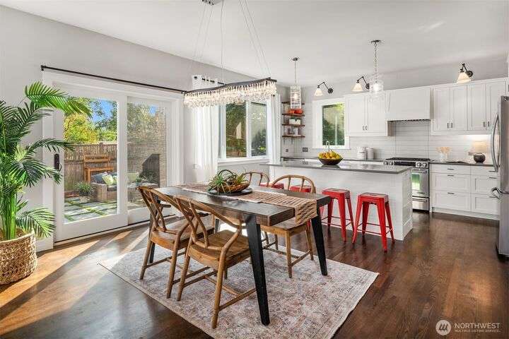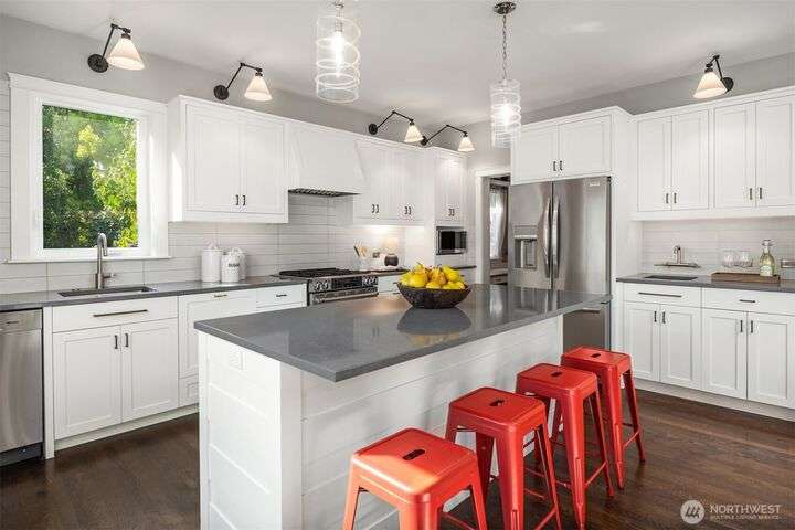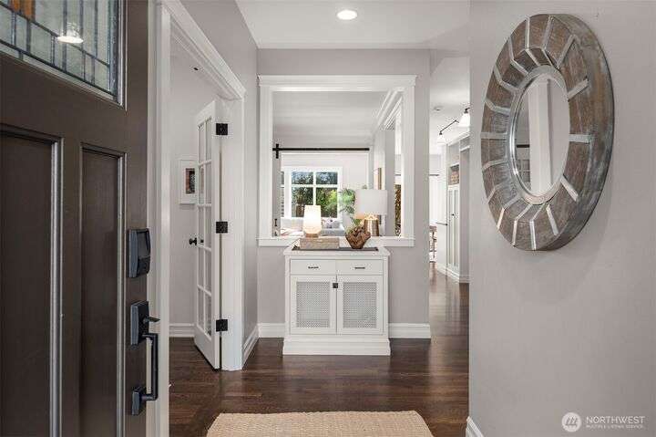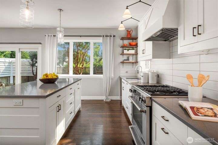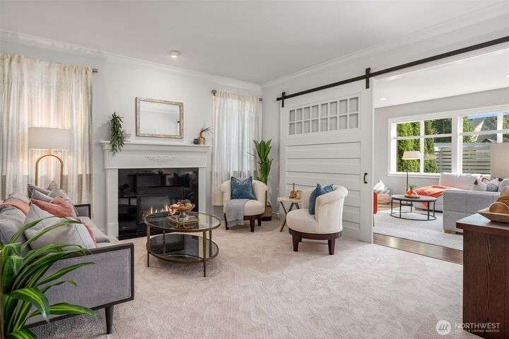 Experience exceptional craftsmanship and thoughtful custom design in sought-after Sunset Hill! This sunny, spacious home welcomes you w/rich hardwood floors and 2 living areas separated by a beautiful barn door that opens revealing a south-facing open-floor plan w/dreamy kitchen featuring an extra-large island w/seating, coffee bar, high-end appliances and walk-in pantry w/second refrigerator. Glass doors open to a level yard with turf, garden and patio spaces. Work or craft in the bonus room w/built-in bookshelves and French doors. Upstairs find 2 primary en-suite bedrooms one w/spa tub, two more roomy bedrooms, an extra bath and laundry room. Sleep well all summer w/heat pump A/C! Big 2-car garage and driveway offer ease and security.