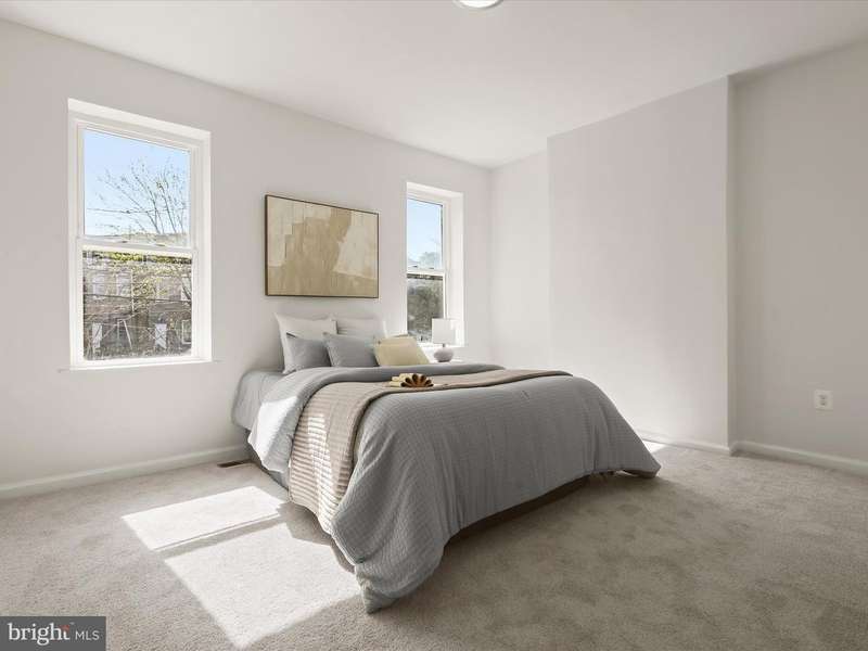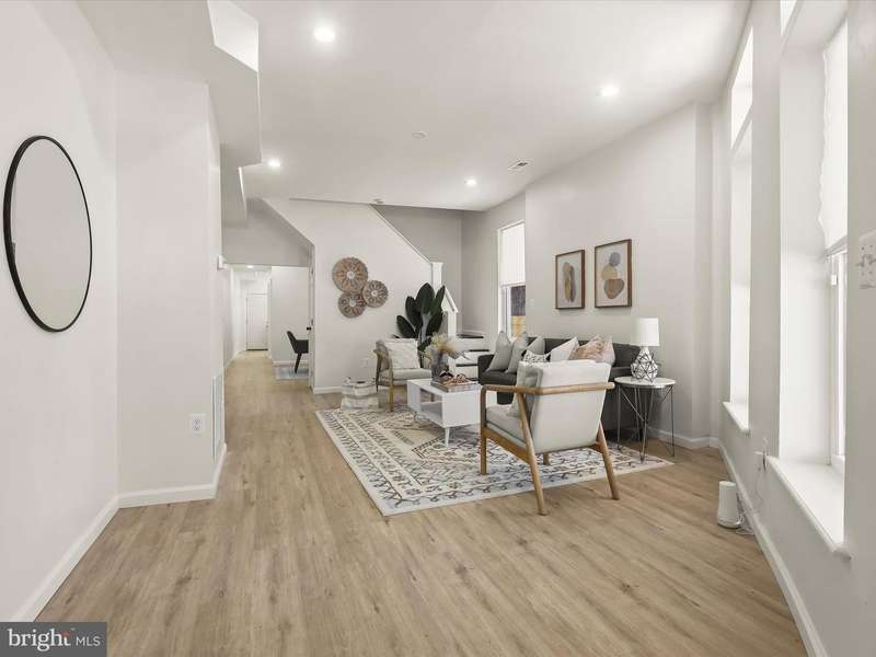 Welcome to this beautifully renovated all-brick corner home in the heart of East Baltimore Midway! This spacious 3-bedroom, 2-bathroom gem features stylish, design-inspired updates throughout and boasts a fully fenced side and backyard with expansive patio space-perfect for entertaining or enjoying quiet outdoor moments. Step inside to discover luxury vinyl plank flooring, fresh neutral paint, recessed lighting, and sleek black hardware that adds a modern touch. The main level offers a light-filled living room, formal dining area, and a thoughtfully designed eat-in kitchen complete with a charming breakfast nook and backyard access. The kitchen showcases dual-tone cabinetry, gleaming quartz countertops, stainless steel appliances including a built-in microwave, and a glass top electric range-blending function and flair. Upstairs, you'll find three generously sized bedrooms and a full bath. The primary bedroom is a true retreat with a cozy sitting area and three closets, while the stylish upper bath features elegant tile flooring and a designer shower niche with eye-catching honeycomb tile. The expansive basement offers endless potential and features a brand-new washer and dryer, plus a convenient utility sink-ready for your personal touch and customization. Enjoy the best of indoor-outdoor living with the expansive patio and fully fenced yard, just minutes from local green spaces like Cecil Community Park. Don't miss your chance to own this stunning home that seamlessly combines comfort, style, and convenience!