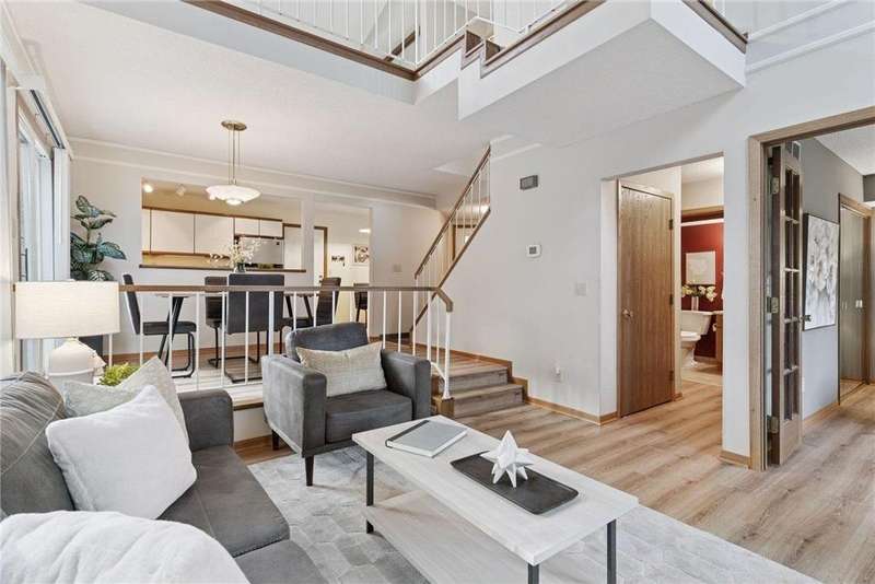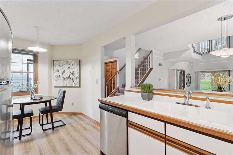 Meticulously maintained Rose Hill townhouse. Sunlight fills this end unit through the abundance of windows and skylight. The sunken living room creates nice, divided spaces while keeping the concept open. Kitchen, laundry, bedroom, bathroom and living room conveniently located on the main level. The spacious upper level has an additional bedroom, sunny loft and spa-like bathroom. The loft would make a wonderful family room, office or anything you may need the extra space for. Enjoy the beautiful fall season on the large maintenance free deck. Fantastic location with quick access to both downtown Minneapolis and St Paul, freeways, green spaces, U of M, dining and more.