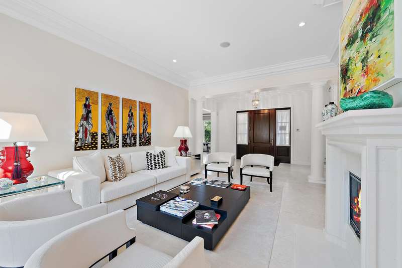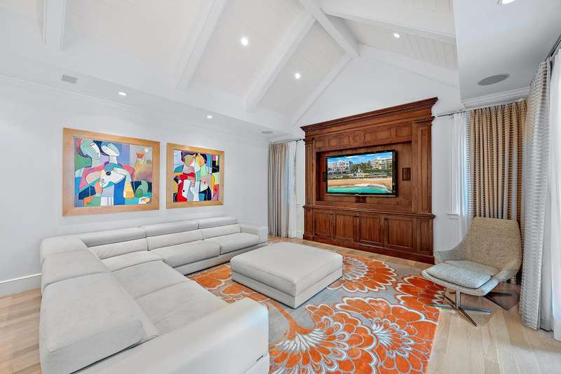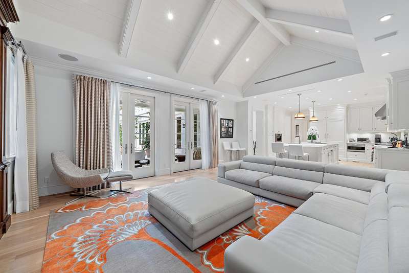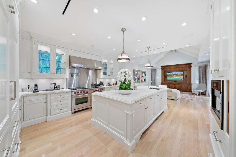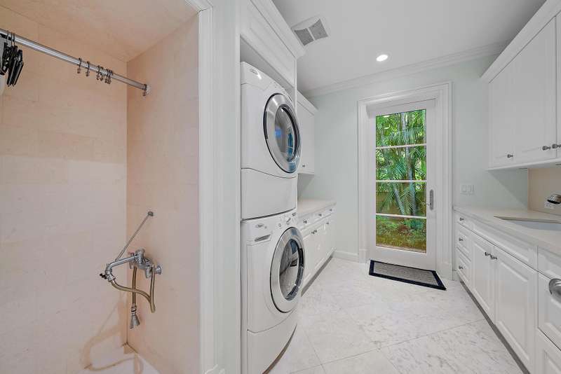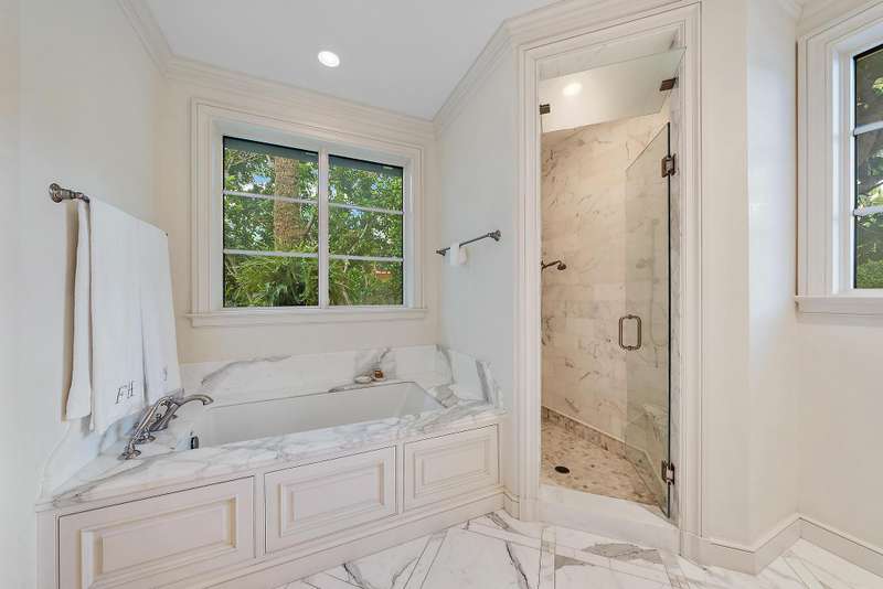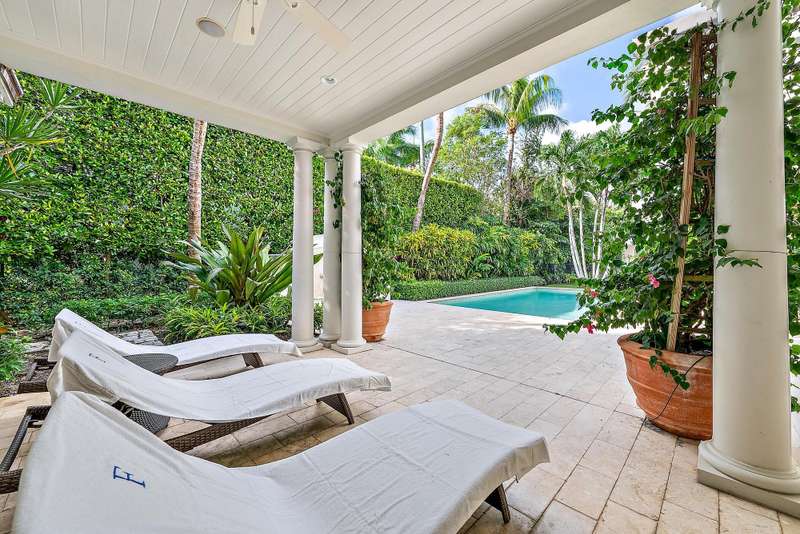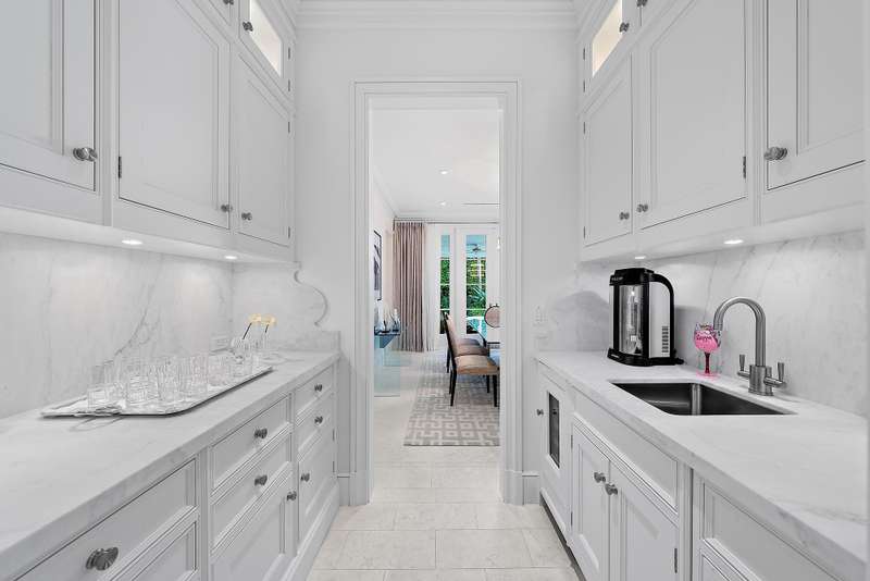 Discover this exquisite West Indies-style home, built and finished by Leeds Custom Design, and nestled on a picturesque 1/3-acre lot. An inviting open great room welcomes you, featuring a dual-sided fireplace that elegantly connects to the dining area. The kitchen is a culinary dream, showcasing a state-of-the-art Wentworth kitchen with Wolf, Sub-Zero, and Miele appliances, along with a large island and cozy breakfast area. The family room, complete with a home theater, is adjacent to a relaxing covert loggia with a beautiful wall fountain. Retreat to the primary suite, which exudes elegance with two ensuite bathrooms. All other bedrooms, each with an ensuite bath, are located on the second floor for added privacy.