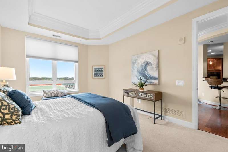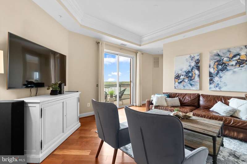 This exceptional 5th-floor condo offers a one-of-a-kind, unique floor plan with breathtaking panoramic views and an abundance of natural light from its sunny southern exposure. Featuring two generously sized bedrooms with expansive closets, this upscale residence combines comfort and style. Inside, you'll find beautiful hardwood floors, soaring 10-foot ceilings, and elegant granite countertops throughout. The freshly painted interiors are complemented by custom window treatments that add both privacy and sophistication. Step outside to your private balcony and enjoy sweeping views of the surrounding area. Key Features: 2 spacious bedrooms with large closets Gorgeous hardwood floors Soaring 10-ft ceilings for an open, airy feel Granite countertops in kitchen and baths Freshly painted with custom window treatments Private balcony with stunning views Assigned parking space for convenience Building Amenities: Rooftop pool with panoramic vistas State-of-the-art fitness center Elegant club rooms for gatherings and relaxation Concierge service for a luxurious living experience Ideally located in the vibrant Annapolis Towne Centre, this condo puts you within walking distance of premier shopping, dining, and entertainment options. Whether you're enjoying a meal at one of the area's finest restaurants or exploring local boutiques, everything you need is just moments away. This is a must-see home that blends modern living with the best of Annapolis! Don't miss out on the chance to call this spectacular property yours.