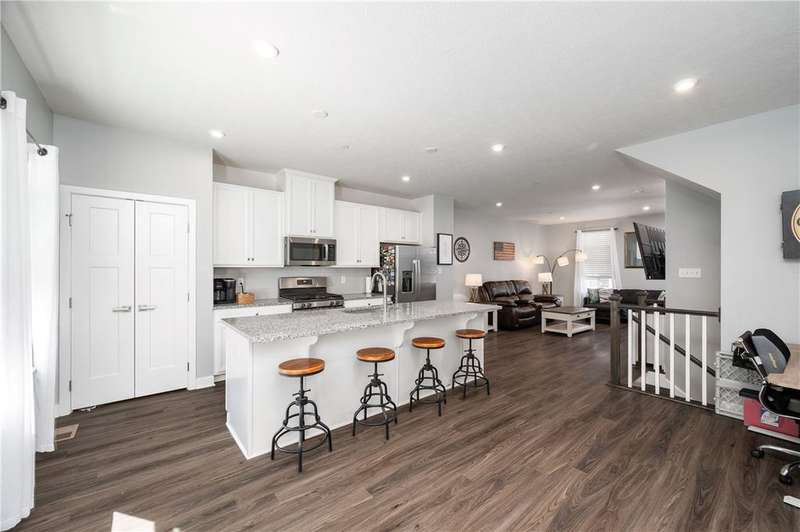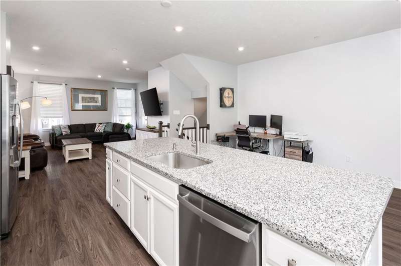 Gorgeous townhome in desirable Park Place community. Only 3 yrs young, this townhome is perfectly positioned for plenty of guest parking in front of the home. Loaded w/ options and upgrades, the lower & main floor are decked out in luxury vinyl plank flooring. Upgraded with gleaming solid oak stairs. Main floor boasts a stunning open floorplan, with a spacious living room that flows into the large kitchen for entertaining guests. 42" cabinets, granite countertops, and ceramic tile back splash complete the gourmet kitchen! Upstairs find a large primary ensuite w/ tray ceiling, quartz vanities, and Roman (double) shower. 2 additional bedrooms, laundry, and full bath finish off the top floor! *** Award winning clubhouse featuring 24 hr. gym, billiards room, golf simulator, community pool, built-in grills, horseshoe pits, putting greens, etc. HOA covers all grass cutting, mulching, sidewalk snow removal, etc.