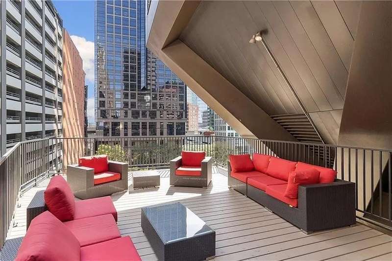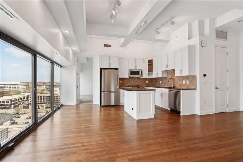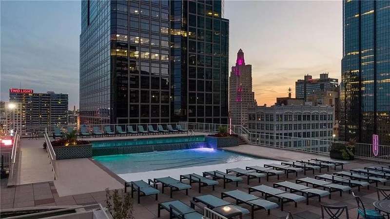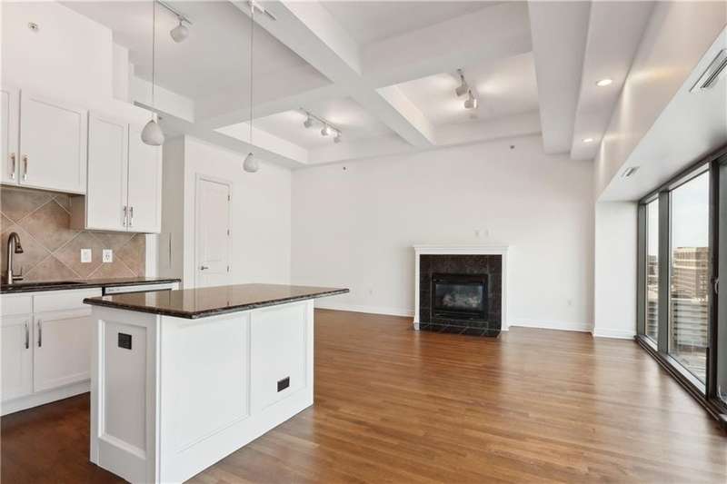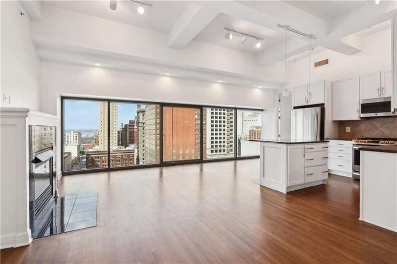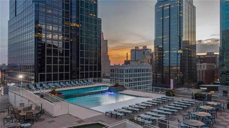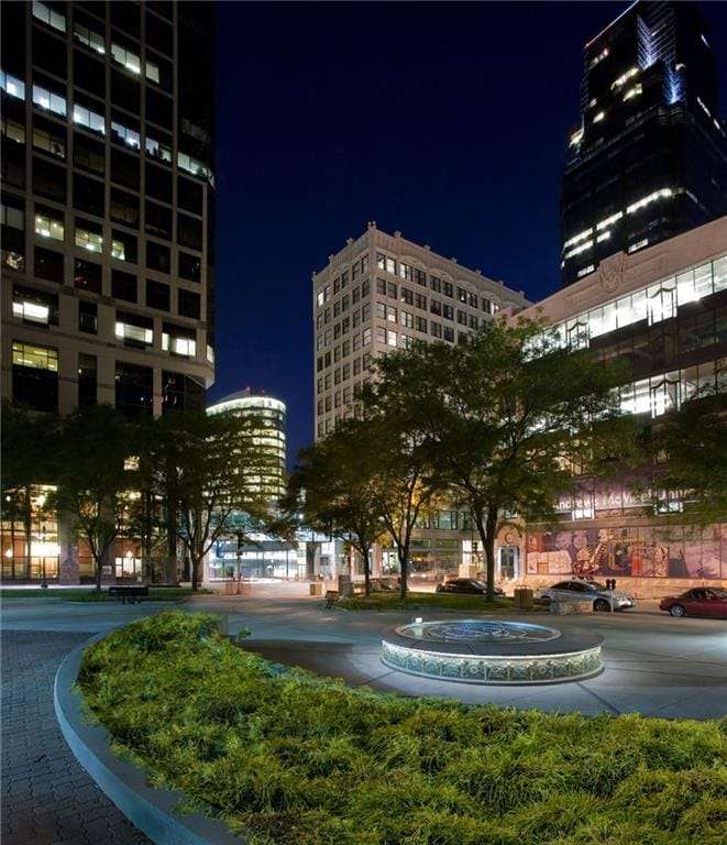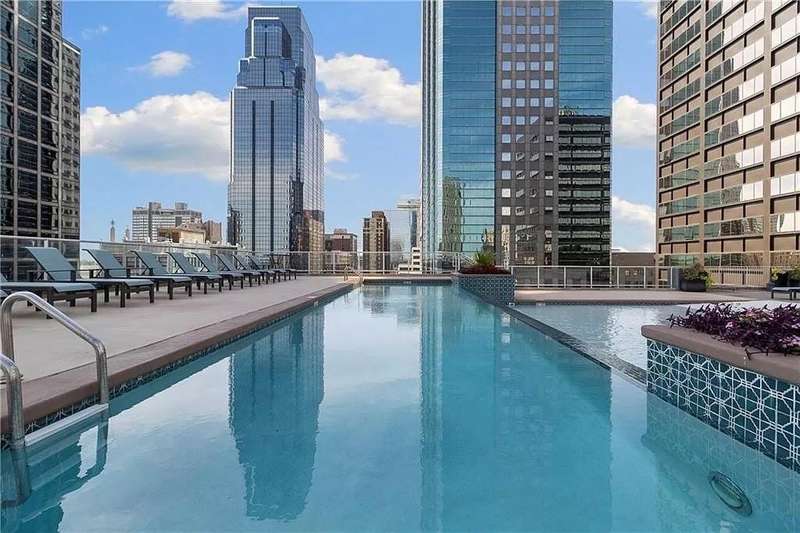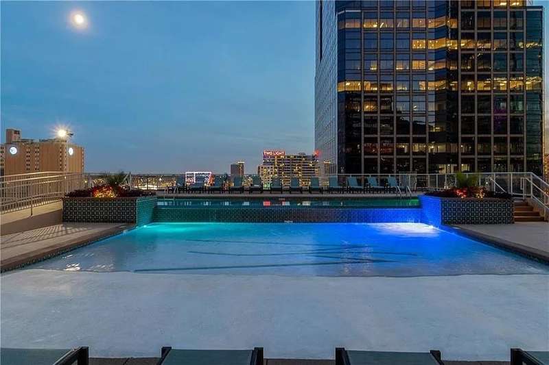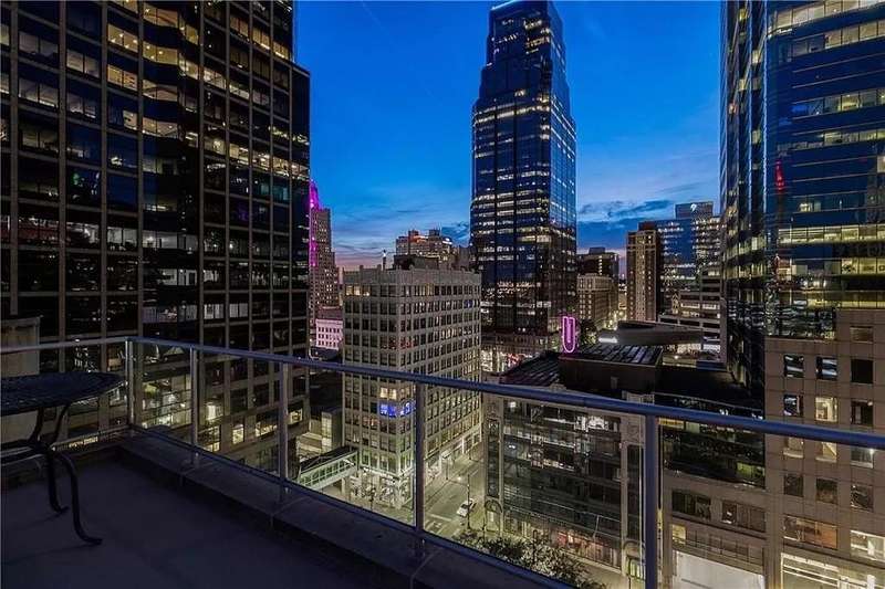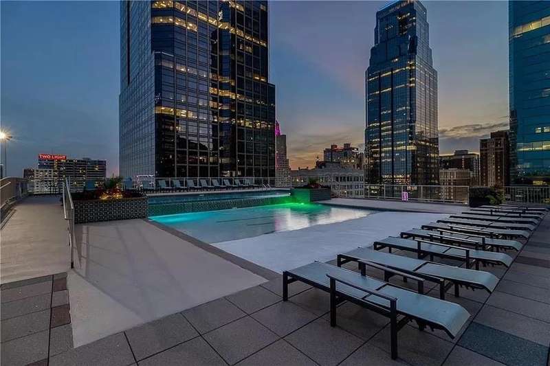 Luxury condo with amazing 12th floor view of downtown Kansas City. Vaulted ceilings and floor to ceiling windows provide rooms full of natural light. Gas fireplace. Updated and move-in ready with fresh paint, refinished hardwood floors and new carpet. Large open kitchen with stainless steel appliances that stay, gas stove, granite countertops and perfectly placed island. Roomy bedroom faces north towards the river. Bathroom suite has dual sinks with new faucets, jetted soaker tub, walk-in shower and large walk-in closet with washer/dryer. Nest thermostat. Exceptional amenities include 24/7 security, fitness center, viewing deck and outdoor lounge, party room, theatre, rooftop pool, putting green, pub room and conference room. Community events held continually. Two secured parking garage spaces, storage unit & Google Fiber. Two blocks to the Power and Light District, close proximity to shopping, restaurants, entertainment, T-Mobile Center & intersecting major highways for quick access to the metro. 1 block away from the Street Car! This condo is a downtown KC gem.