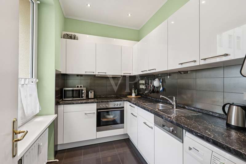 This charming, high-quality renovated 2-room apartment is located on the mezzanine floor of a well-kept apartment building dating back to around 1927. The property's approx. 55 m² of living space skillfully combines the classic character of the year of construction with contemporary living comfort and impresses with its well thought-out room layout and tasteful furnishings. The comprehensive core renovation about three years ago included all relevant trades and ensures a homely ambience with state-of-the-art technology. The bright living room impresses with its spacious layout and offers a wide range of options for individual design. Large windows emphasize the pleasant feeling of space and create an inviting atmosphere. The bedroom, which is quietly located facing the inner courtyard, offers privacy and enough space for a large bed and additional furniture. The modern fitted kitchen adjoining the living room is equipped with high-quality appliances and blends harmoniously into the overall appearance of the apartment thanks to its timeless design. The beautifully designed bathroom impresses with elegant tiles, modern sanitary facilities and a well thought-out room layout that allows for maximum comfort even in a small space. The materials used meet the highest living standards: The floors are fitted with hard-wearing, high-quality finished parquet as well as tasteful tiles that are both visually and functionally impressive. This apartment is ideal for singles or couples who value stylish living and an urban environment. The combination of historical flair, modern furnishings and a central location makes this property a special offer on the real estate market. The property is being sold furnished and is therefore suitable both for owner-occupation and for renting out. If you are interested, we will be happy to send you a detailed exposé or arrange a personal viewing appointment - we look forward to hearing from you!