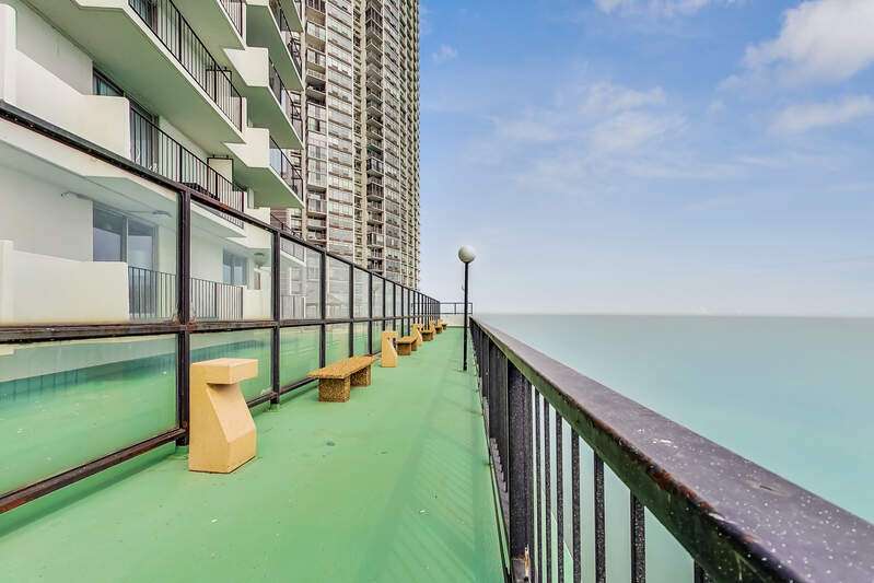 Welcome to this beautifully updated 2-bedroom, 2-bath south-facing residence in the sought-after Malibu East Condominiums-where lakeside tranquility meets urban convenience in the heart of Edgewater Beach. Thoughtfully renovated in 2019, the open-concept kitchen seamlessly flows into a spacious dining area and expansive living room, perfect for entertaining. The kitchen showcases white cabinetry, abundant storage including a pantry, granite countertops with a waterfall edge, modern gray subway tile backsplash, and stylish black appliances-blending functionality with contemporary design. Natural light floods the oversized living and dining areas, creating a warm and inviting ambiance. The primary suite is a serene retreat featuring walk in closet and a spa-like bath with jacuzzi tub/shower combo, glass doors, and updated vanity with new counters and cabinetry. A generous second bedroom offers flexible use as a guest room or home office. The second bathroom boasts modern finishes and a walk-in shower with custom tile work. Step outside onto the impressive 42-foot-wide private terrace, stretching across the living room, primary suite, and second bedroom-offering sweeping views of the lake and the perfect spot to enjoy lake breezes or evening sunsets. Freshly painted throughout. Appliance updates include: Stove (2024), Dishwasher (2019), Microwave (2019), Water Heather and AC (2022). Malibu East is a full-service, pet-friendly building with top-tier amenities including two outdoor pools, tennis courts, a fitness center, lakefront party room, and sundeck lounge area. Additional conveniences include on-site management, GARAGE parking available for rent, and a mini-mall with shops and services right downstairs. Conveniently located near beaches, lakefront trails, shopping, restaurants, and public transit. Additional storage included (Storage Closet #235). Move-in ready and designed for comfort, style, and ease-this home is an incredible opportunity to own in one of Chicago's premier lakefront communities. For more details on features, mechanicals, and building information, see attached documents.