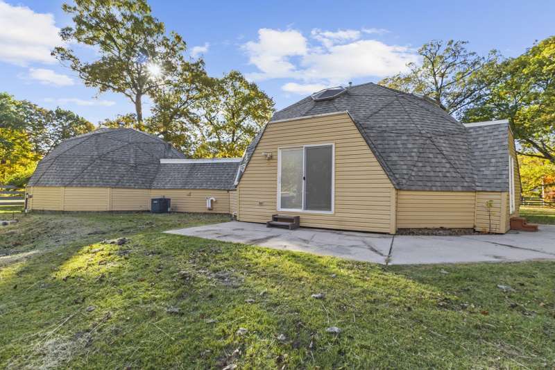 Escape the ordinary and discover a truly unique 2BR (possibly 3), 2BTH dome home set on a sprawling 1.5-acre lot in unincorporated Monee. This distinctive property offers a perfect blend of open space surrounded by scenic woods, giving you a quiet, country feel with room to breathe. The full unfinished basement (with its own exterior entrance) offers even more square footage which could be finished for additional living area perfect for entertainment, gaming, hobbies or anything your lifestyle inspires. The beautiful kitchen features a subway tile backsplash, quartz counters, stainless steel appliances, and a convenient breakfast bar. A loft with dedicated full bath (most recently used as the owner's primary bedroom) is ready to be converted into a more private owner's ensuite or can serve as a guest retreat. Being offered as-is, but this is not a project! Thanks to major recent updates (roof, most windows, furnace, central air & asphalt driveway-all within the last 5-10 years), this home is move-in ready and only needs a few finishing touches to add your personal polish. Virtually maintenance free exterior w/vinyl siding & windows and aluminum soffits ensure you get to enjoy your free time without the stress of constant upkeep. Despite the secluded location you are truly at the heart of everything. Local convenience is assured with all essential amenities, healthcare, pet care, and a variety of dining options-from fine restaurants to fast-casual coffee shops-right in in town. For major retail and entertainment, a quick 15-20 minute drive north or south reaches popular hubs featuring stores like Target, Walmart, and Marshall's, alongside franchises such as Buffalo Wild Wings, Crumbl and Nothing Bundt Cakes. Recreation abounds with nearby music venues, theaters, golf courses, sports complexes, and scenic escapes like the Monee Reservoir and Raccoon Grove Nature Preserve. With easy access to I-57, Metra, and Amtrak, and downtown Chicago just an hour away, this is the perfect secluded location that's still fully connected. Discover a one-of-a-kind home that delivers tranquility without sacrificing convenience.