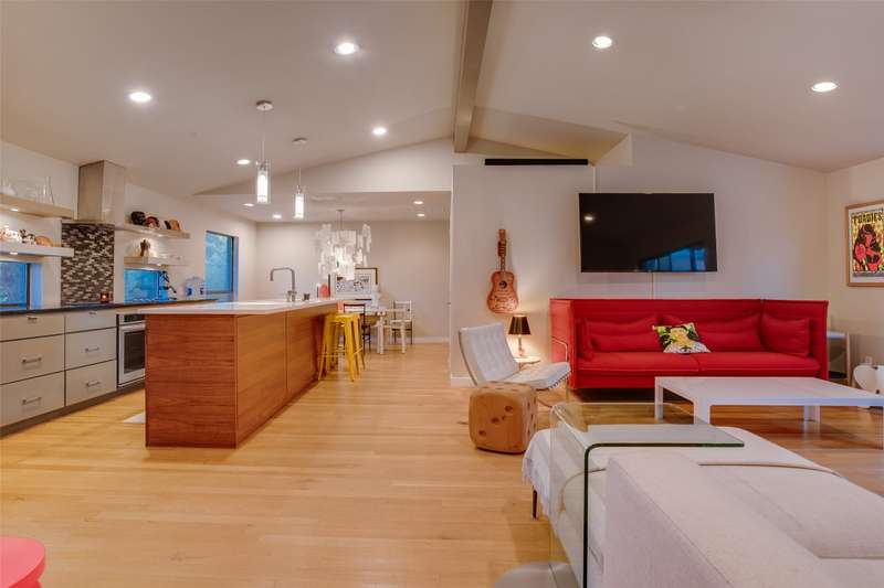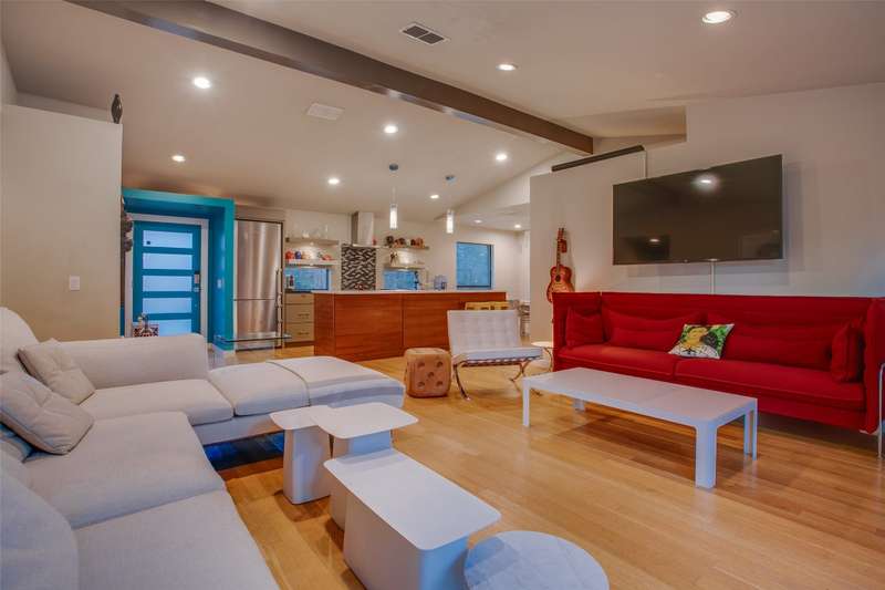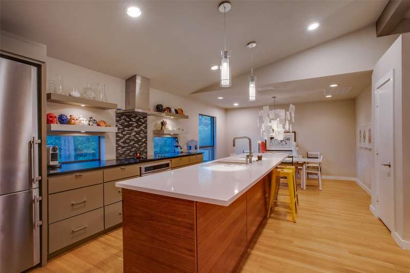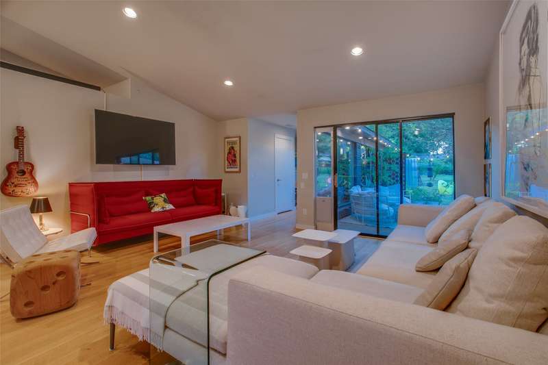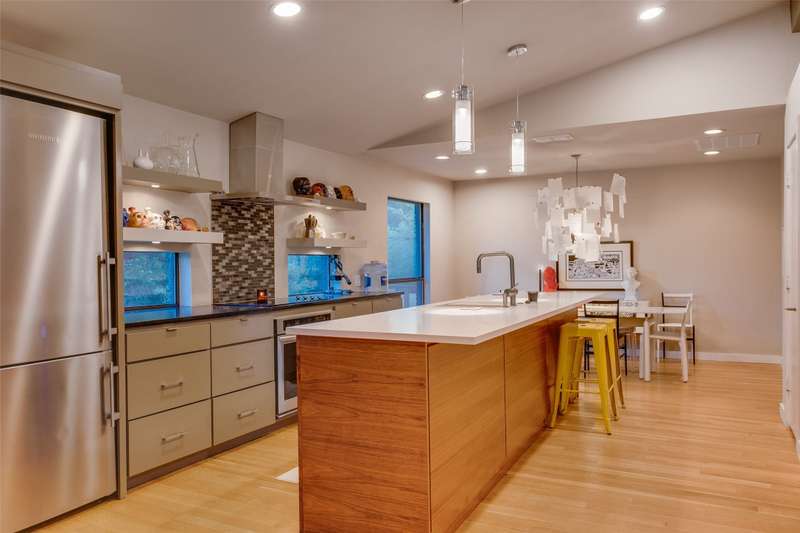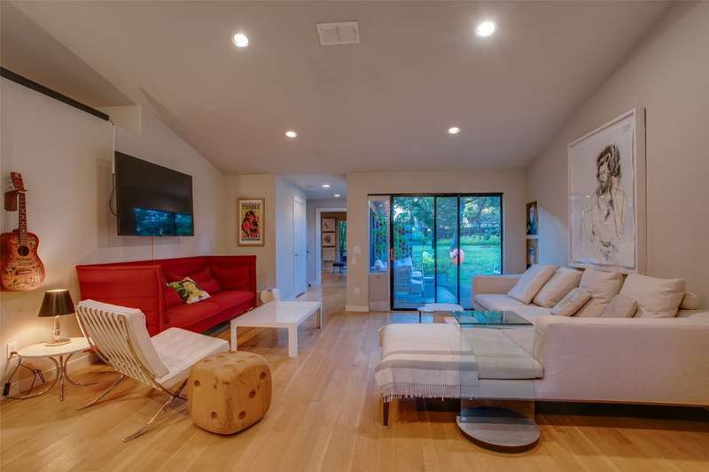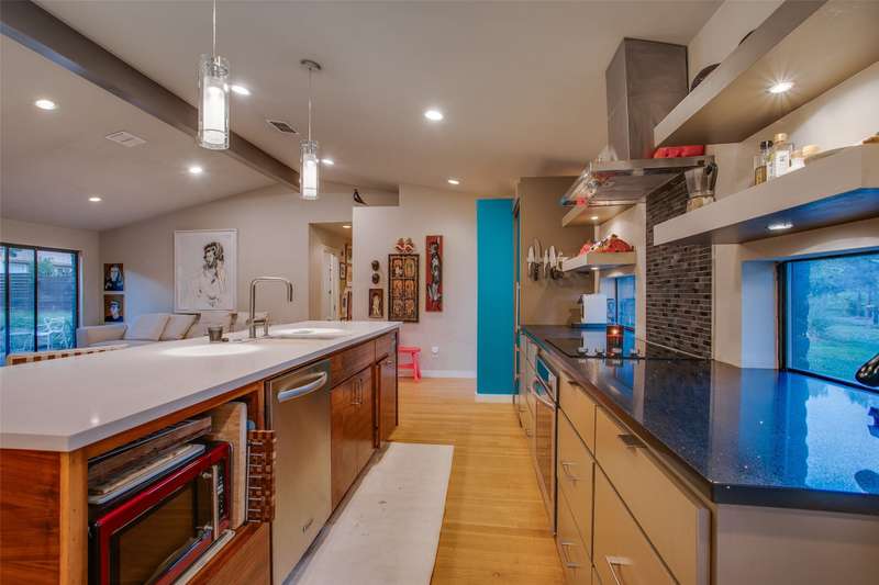 Discover a rare mid-century modern retreat on an oversized .35 acre lot in one of Dallas most desirable and quiet neighborhoods. This fully remodeled home blends timeless design with modern upgrades, offering a bright open floor plan, updated systems, and stylish finishes throughout.The gourmet kitchen features stainless appliances, stone countertops, and custom cabinetry, opening seamlessly to dining and living areasperfect for entertaining. The primary suite includes a spa-inspired bathroom with step-in shower and modern tile work.Large windows flood the home with natural light and connect indoor living to the outdoors. Step outside to enjoy a spacious backyard with mature trees, perfect for entertaining, future pool, or even a guest house.Located just 7 minutes from Downtown Dallas, with easy access to Bishop Arts, Joe Pool Lake, and major highways, this property offers the ideal mix of privacy, convenience, and style. Move-in ready with modern upgrades and updated systems throughout.