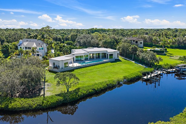 A rare fusion of privacy, precision, and architectural artistry, this minimalist modern masterpiece by Riverside Building & Design rests on over two acres along the North Fork of the Loxahatchee River. Designed to blend with its natural surroundings, it features clean lines, expansive glass, and seamless indoor-outdoor living with tranquil river views throughout. Highlights include a chef's kitchen with luxury appliances and custom cabinetry, a resort-style pool and spa, and a covered summer kitchen for effortless entertaining. A private dock with 16,000-lb lift offers direct access to the Intracoastal and Atlantic Ocean. With sleek design and timeless tranquility, 8309 SE Rivers Edge stands as one of Jupiter's most distinctive and private new waterfront estates.