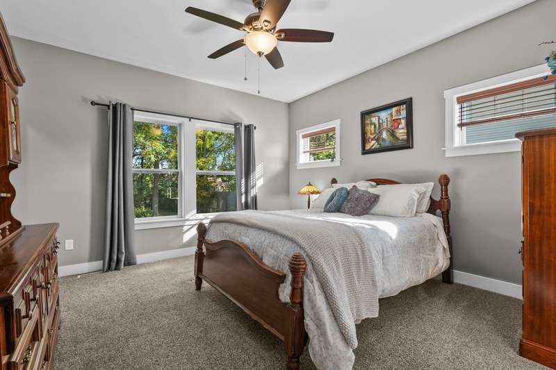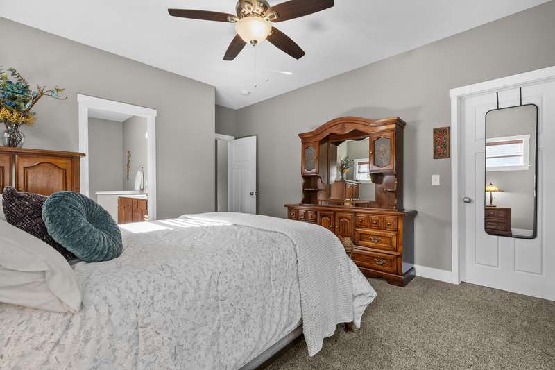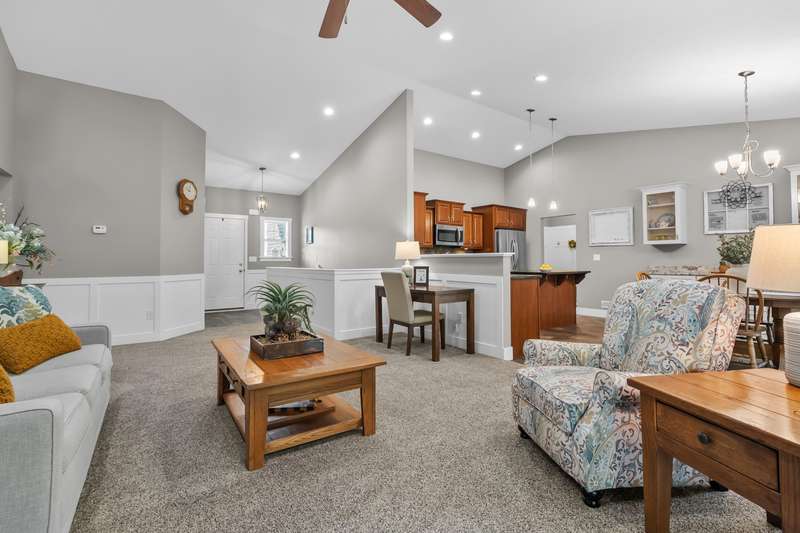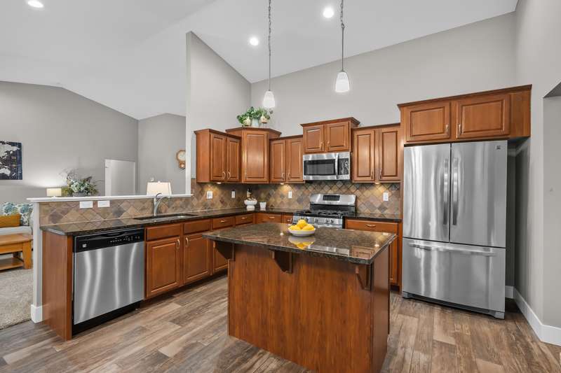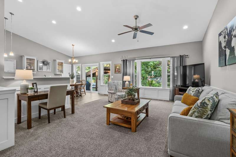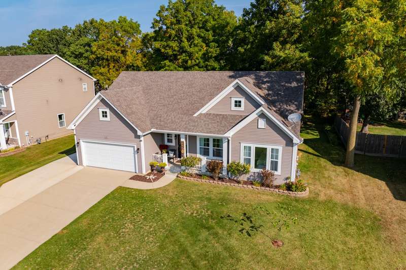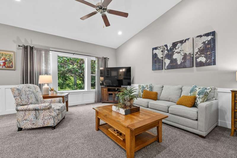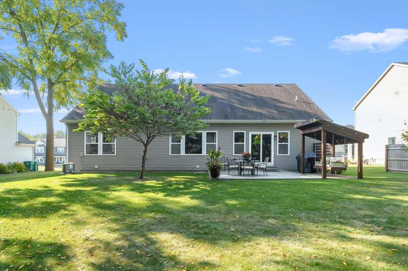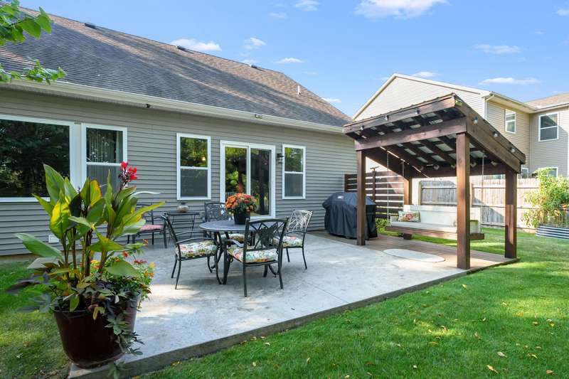 OPEN 11/09- 1:00-2:30 Join Me, Welcome to this meticulously maintained, like-new Harper Creek ranch located on a quiet street with no through traffic. This move-in ready home offers 3 spacious bedrooms & 2 full baths on the main level, plus a beautifully finished basement featuring a large 4th bedroom with egress, a 3rd full bath, and a spacious recreation room. The stunning kitchen boasts granite countertops, a center island, walk-in pantry, and built-in coffee bar. Enjoy the airy, open-concept layout with vaulted ceilings & a bright living/dining area. Plus a convenient main floor laundry with mudroom/drop zone. Outside, relax in your private backyard oasis, beautifully landscaped with perennial gardens, a pergola & porch swing, with a large patio, perfect for entertaining. Tastefully decorated throughout, offering the rare combination of like-new condition, tasteful updates, & a prime location, tucked away, yet close to schools, shopping, & more. Call to set up a tour