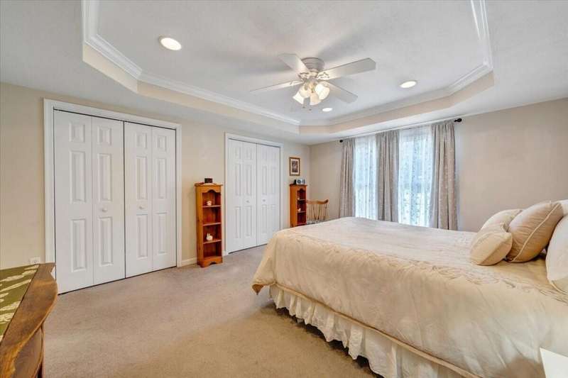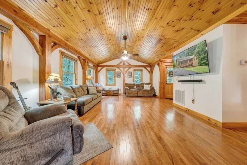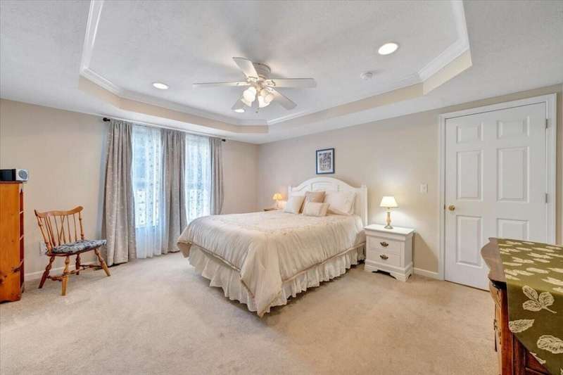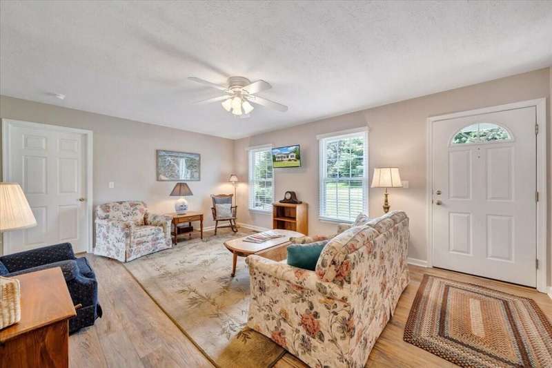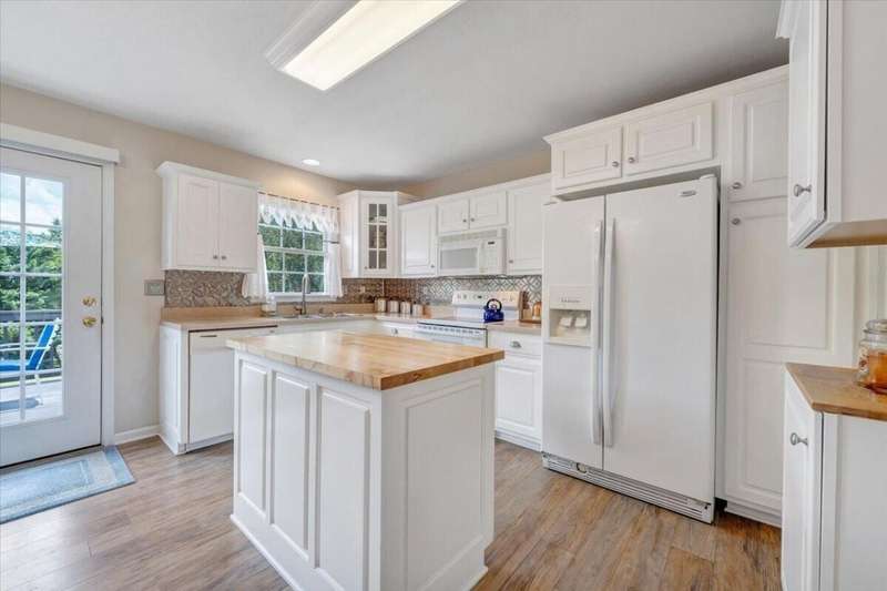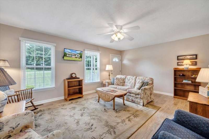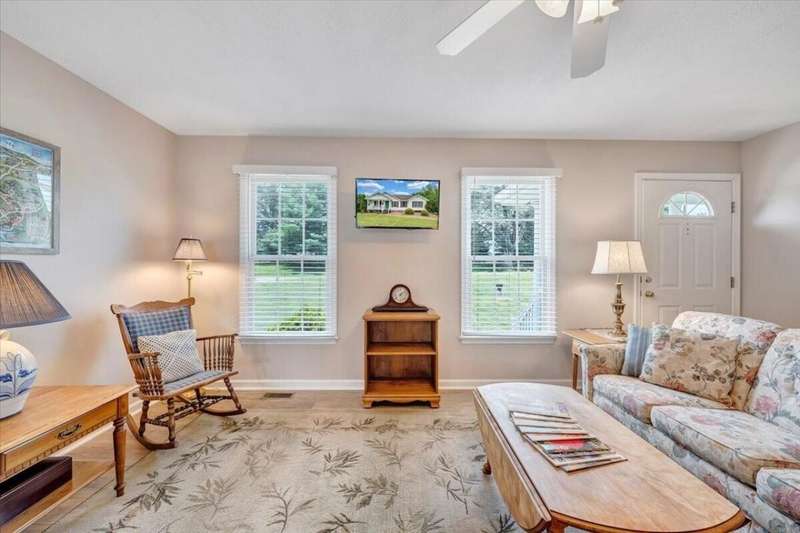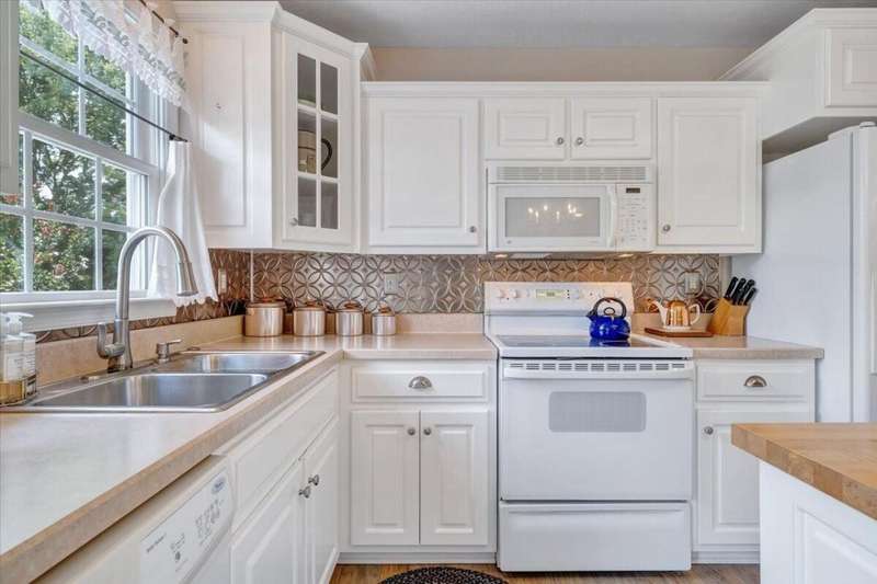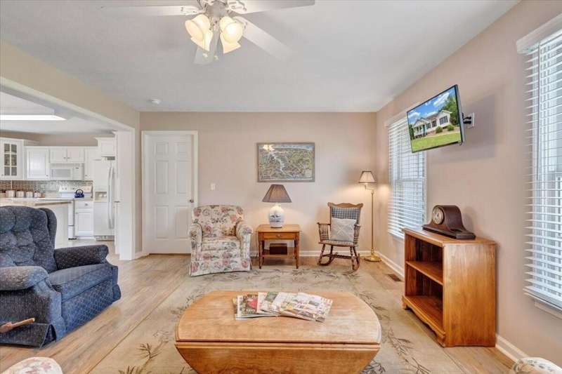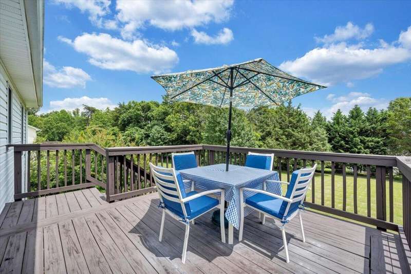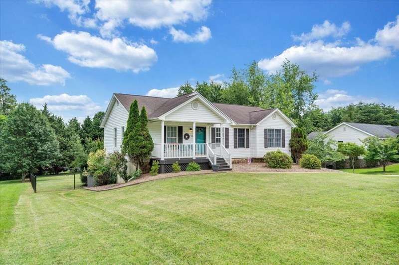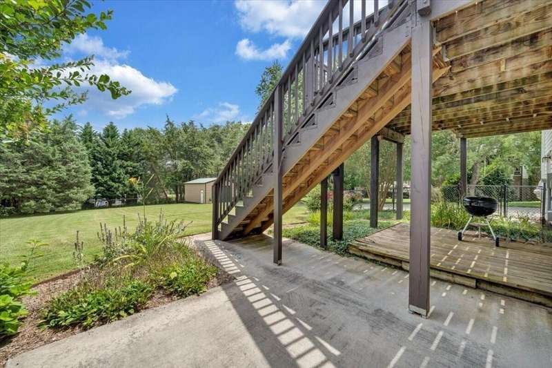 Enjoy one floor living in a quiet neighborhood less than 1 mile to deeded lake access and the beautiful waters of SML. This charming home features 1,842 finished SF with 3 bedrooms, 3 full baths, finished lower level, & oversized 2 car garage on 0.52 acres. From the moment you enter you'll feel right at home. Entry level hosts 3 BR & 2 BA, living room, laundry, & eat-in kitchen with an island leading out through the French doors to the rear deck, perfect for entertaining, overlooking the generous fully fenced rear yard w/mature trees. The primary BR boasts an attractive tray ceiling, 2 large closets, ensuite bath w/whirlpool tub, walk-in shower & double sink vanity. Finished lower level is currently decorated as 4th bedroom/office and rec room. 2 minutes to Scruggs Road and stores etc.