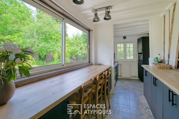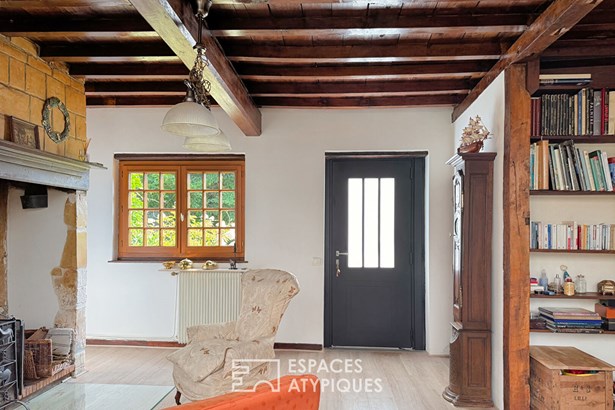 Just a short walk from Villers-Bocage, in the peaceful commune of Rubempre, this private property reveals much more than just a house: it offers a way of life, nestled in greenery. Upon entering, the spaciousness is astonishing, the perspectives open up, and the exposed beams interact with fluid circulation and views. The gaze is naturally guided to the recently renovated kitchen, which opens onto a verdant panorama, a true living picture to accompany meals in any season.