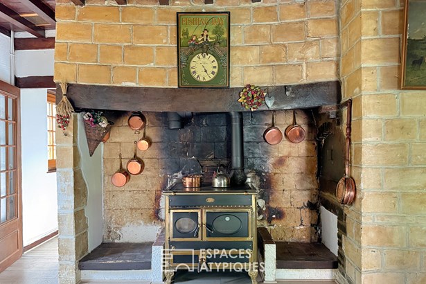 The ground floor, designed for conviviality, offers a warm living room, where an old fireplace with warm tones recalls the evenings of yesteryear, while in the dining room stands a magnificent cast iron stove, both functional and sculptural, promising simmered meals and shared moments. A heated veranda extends the living space, conducive to contemplation. A shower room with WC completes this level.