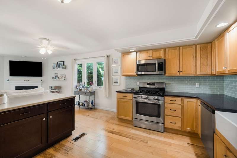 Welcome to 76 Cedarcrest, Shelton, CT 06484 this stunning 3-bedroom, 2.5-bath end-unit townhouse that lives like a single-family home while offering all the conveniences of condo living!Step inside to a tiled entryway with a coat closet and a charming half bath.The oversized eat-in kitchen features hardwood floors,granite countertops, a center island,gas cooktop,stainless steel appliances, tile backsplash, and recessed lighting-perfect for both everyday living and entertaining.The kitchen overlooks a spacious living room+formal dining room with a cozy gas fireplace and sliders that open to a large private deck.Upstairs, retreat to a massive primary suite with a vaulted ceiling, walk-in closet, and luxurious full bath featuring a jacuzzi tub and separate shower. The second level also offers a generously sized second bedroom, a full bath, a linen closet, and a convenient laundry area with washer and dryer.The finished third-floor bedroom offers incredible versatility-ideal for use as a guest room, gym, den, playroom, craft space, or home office.The lower level provides even more flexible living space, perfect for a media room, home theater, and additional storage.A true bonus is the oversized two-car detached garage-one of the largest you'll find in any condo providing ample room for storage and parking. Perks of Gas heat & Gas hot water, central air & new windows enjoy all that Shelton has to offer:low taxes,fantastic shopping,great restaurants & easy access to RT15,RT8 &RT34