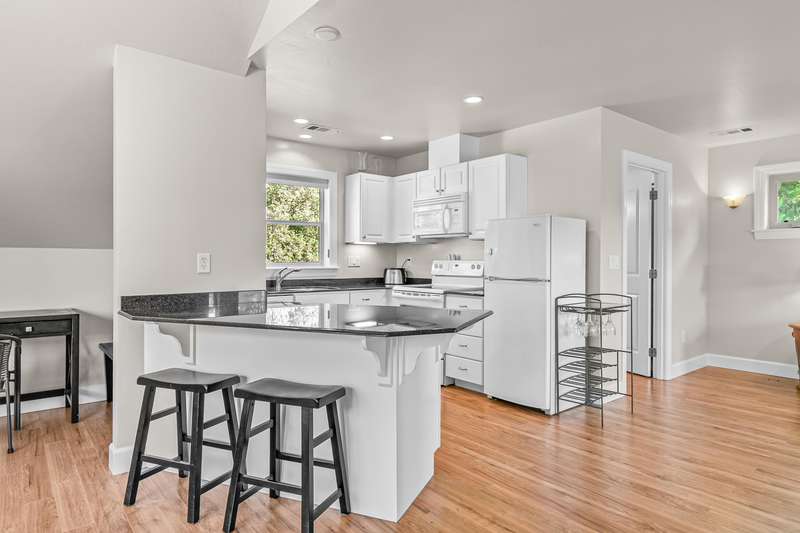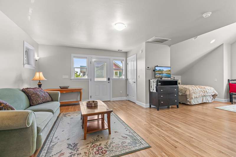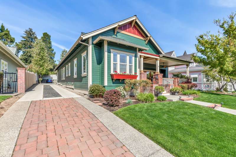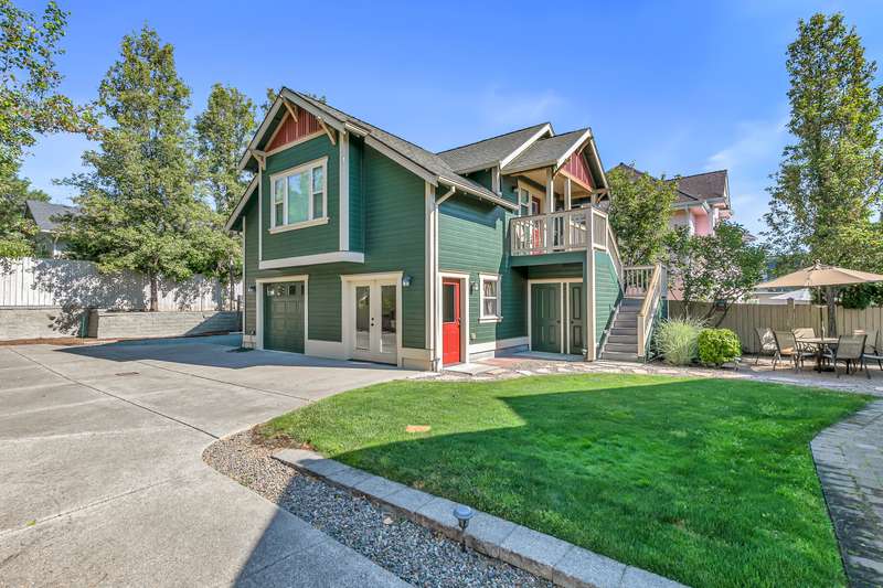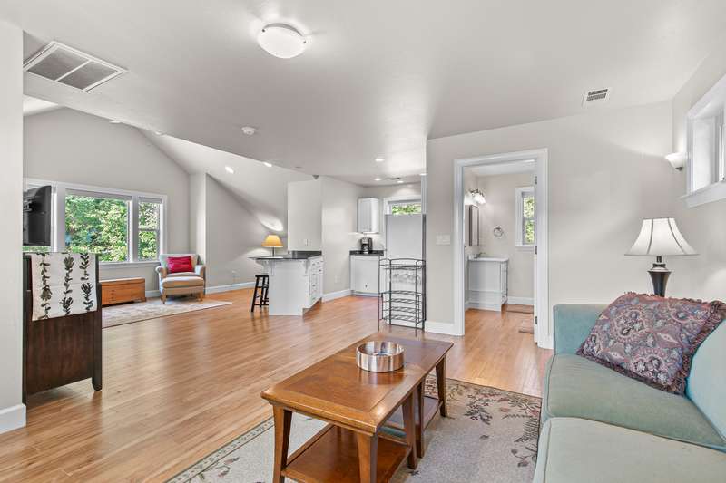 Nunan Square in Jacksonville is a delightful community to call home, and this home has much to boast about. Built in 2001 this abode was extensively remodeled and expanded in 2008 with main home featuring island kitchen, granite counters, stainless appliances and soaring 20' ceilings. Step into the spacious living room with coffered ceiling, gas fireplace and french doors leading to the amazing front deck. This is where the fun happens with great indoor/outdoor living. The primary bedroom is on the main floor with a walk-in closet, 10' ceiling and crown molding. Out back is a fully furnished, detached studio ADU which is great for guests or income. Below the ADU is a party/entertainment/hobby room; the uses are many and varied. Only a few homes in Nunan Sq. have ADU's so this is a real treat. Walking distance to downtown and Britt Gardens, the location is premium in JV.