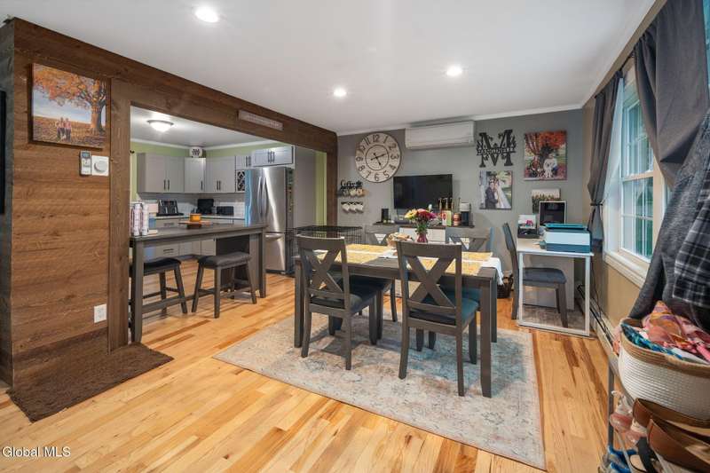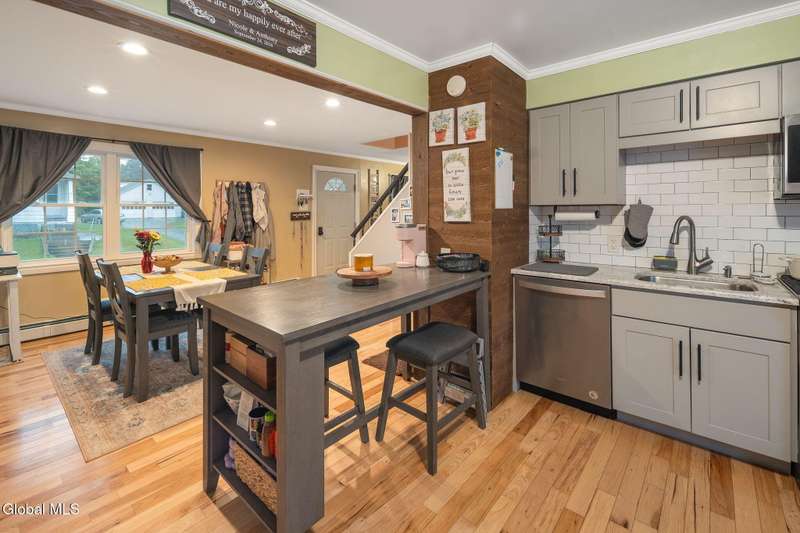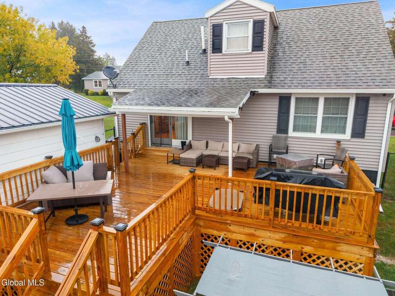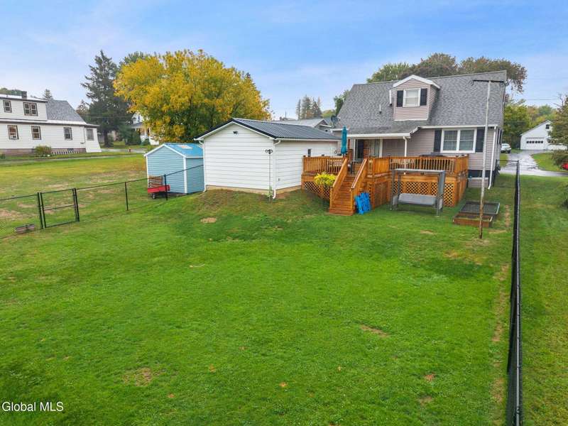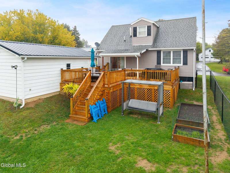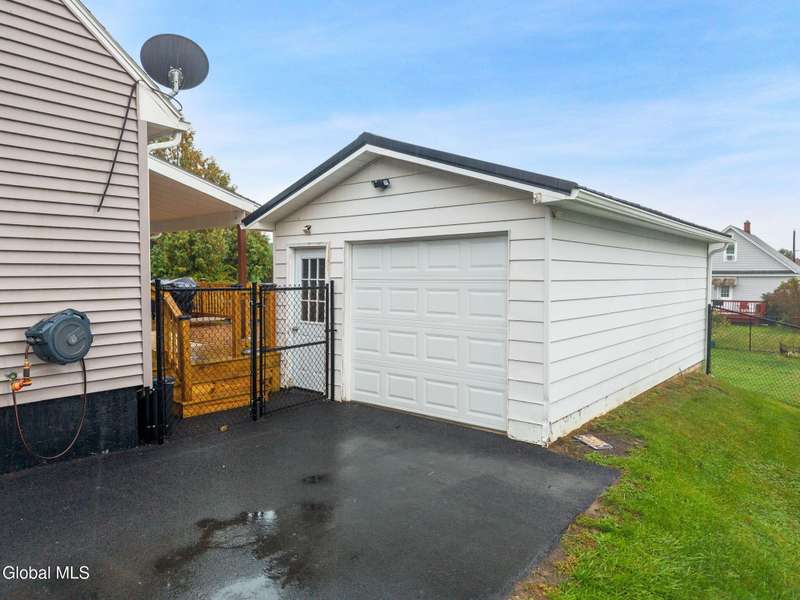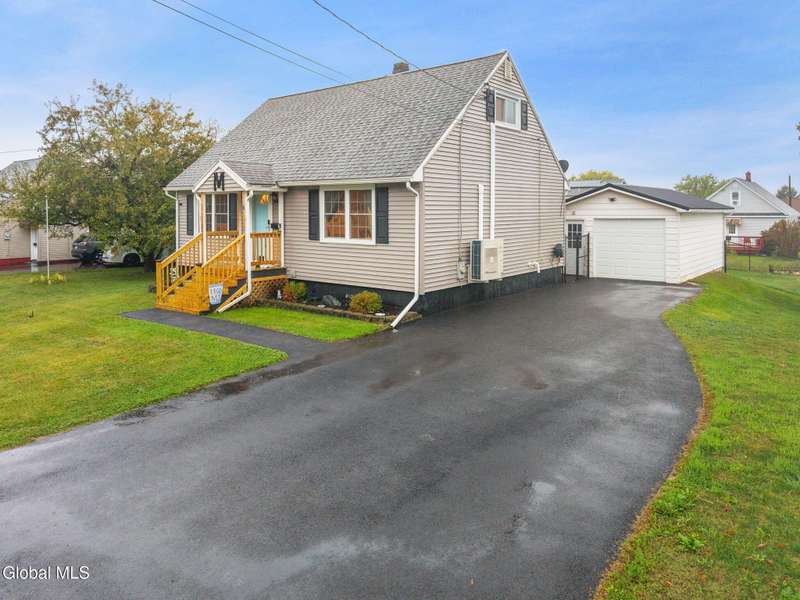 Welcome to this fully remodeled Cape Cod sitting on 3 lots which has since been combined into one parcel by current owner. First floor offers open concept kitchen w/backsplash and wine rack, dining, room, family room, full bath & 1st floor laundry room. Family room can easily be converted back to first floor primary bedroom if desired. Second floor offers 2 bedrooms (one currently being used as a closet) and full bathroom. Big ticket items such as air conditioning mini splits (2022), boiler, (2022) and garage roof (2025) have all been taken care of for you. Large front porch (2025) and back deck (2024) leading to a spacious fenced yard. Partially finished basement w/ washer & dryer hookups allows for a bonus room & additional laundry space. Land can be subdivided back to its original state with potential for 1-2 approved building lots upon approval of a variance from planning board committee. Municipal water, sewer & natural gas.