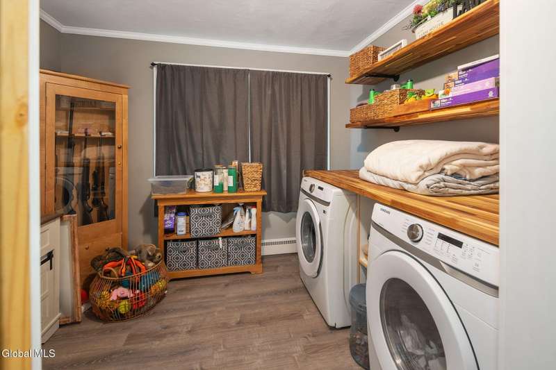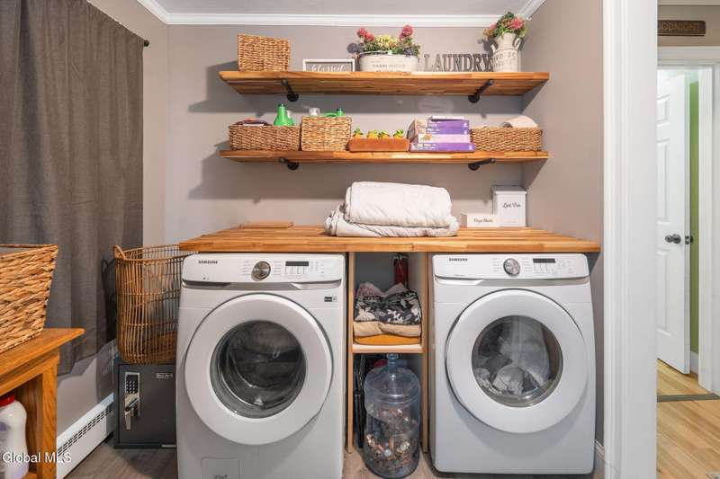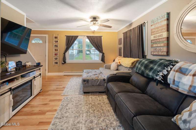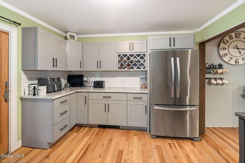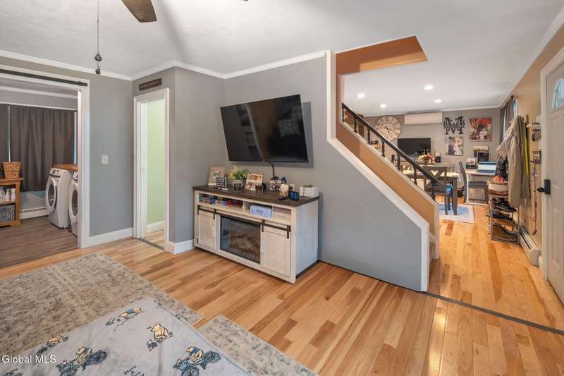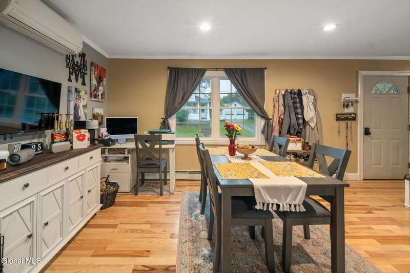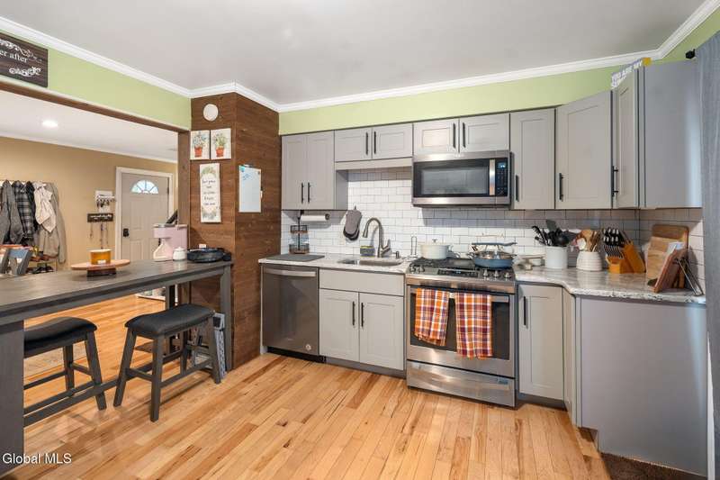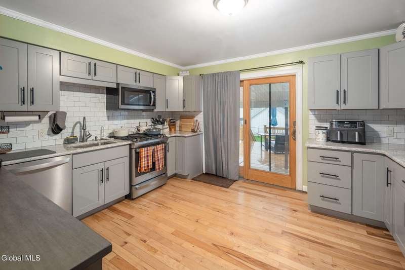 Welcome to this fully remodeled Cape Cod sitting on 3 lots which has since been combined into one parcel by current owner. First floor offers open concept kitchen w/backsplash and wine rack, dining, room, family room, full bath & 1st floor laundry room. Family room can easily be converted back to first floor primary bedroom if desired. Second floor offers 2 bedrooms (one currently being used as a closet) and full bathroom. Big ticket items such as air conditioning mini splits (2022), boiler, (2022) and garage roof (2025) have all been taken care of for you. Large front porch (2025) and back deck (2024) leading to a spacious fenced yard. Partially finished basement w/ washer & dryer hookups allows for a bonus room & additional laundry space. Land can be subdivided back to its original state with potential for 1-2 approved building lots upon approval of a variance from planning board committee. Municipal water, sewer & natural gas.