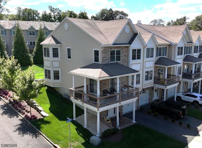 This exceptional 3-bedroom, 3 and a 1/2 bath end unit features a rare wraparound deck that offers stunning mountain views. On the main level, you'll find a gourmet kitchen equipped with custom cabinets, granite countertops, stainless steel appliances, a tile backsplash, and a sliding door that leads to the back patio and yard area. The living room includes a cozy gas fireplace and sliding glass doors that open to the desirable wraparound deck. Upgrades enhance this home with hardwood floors throughout, custom crown molding, wood and iron stair railings, recessed lighting, and California closets in the kitchen, coat closet, laundry room, and all bedrooms. An attached garage and two heating and cooling units add to the comfort and convenience. The finished ground level provides a versatile space that can be used as a family room, office, or potential in-law suite, complete with a storage closet and a private full bathroom.Completely move-in ready with modern updates throughout.