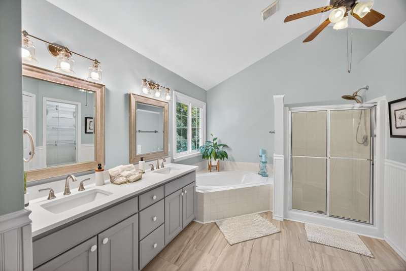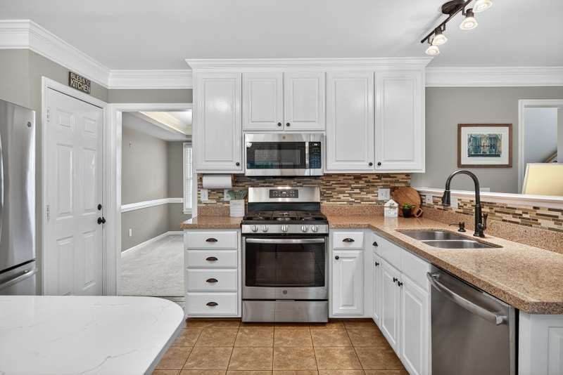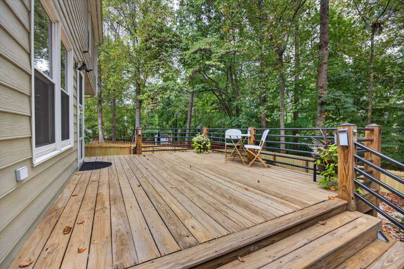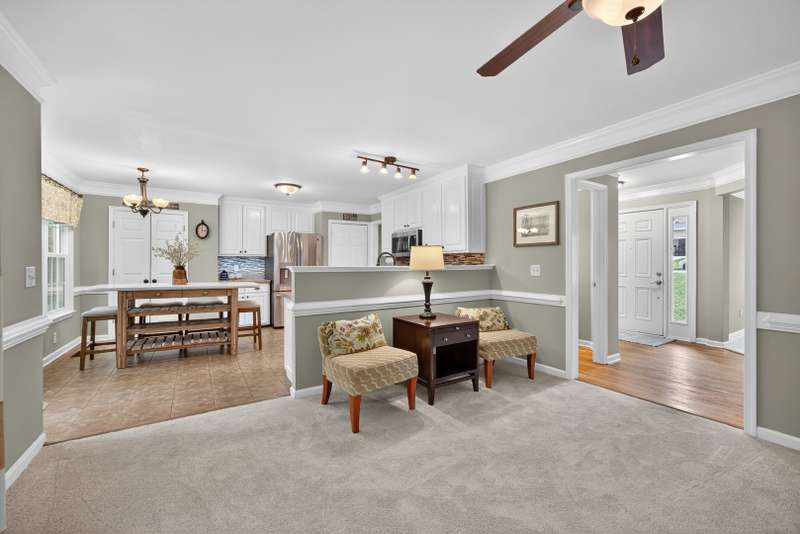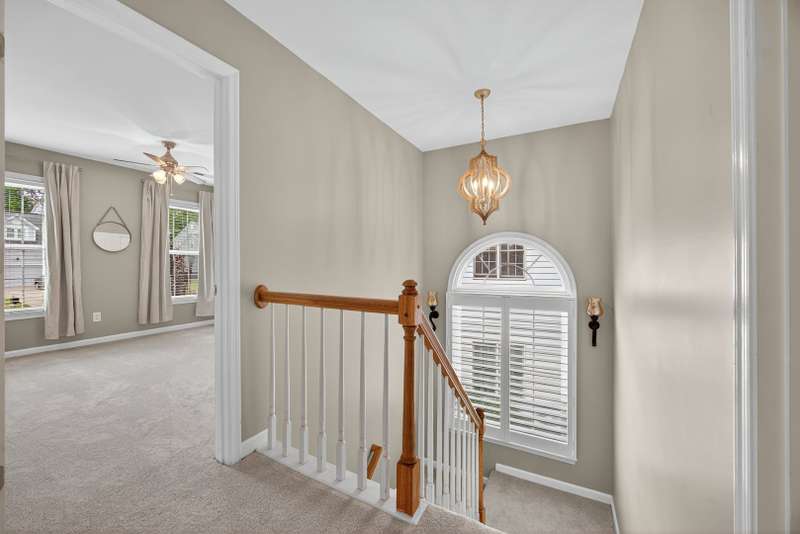 Welcome home to this 4-bedroom, 2.5-bath home in Adams Farm with FRESH PAINT AND BRAND NEW CARPET throughout the entire home. On the main level, you'll find a cozy den, a dining room for gatherings, eat-in kitchen with beautiful quartz countertops and stainless steel appliances, plus an additional living room that could double as the perfect home office. Upstairs, you'll find four bedrooms and 2 full baths, one bedroom is large bonus room that can serve as your fourth bedroom, playroom, or media space. The UPDATED primary bathroom offers a garden tub for soaking and separate shower. The convenient upstairs laundry makes chores a breeze. Outside you can enjoy a spacious deck and patio for entertaining. New fence in backyard. Other updates; gutter guards installed in 2021, roof is 2018, tankless water heater, downstairs HVAC system replaced 2021. Upstairs AC unit is 2017. This home has the perfect blend of charm, functionality, and modern updates?come see for yourself!