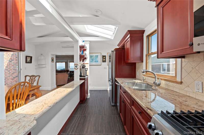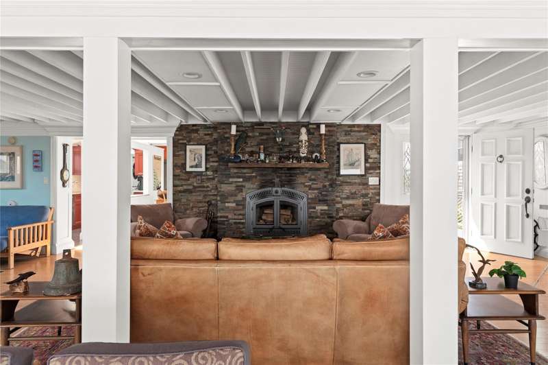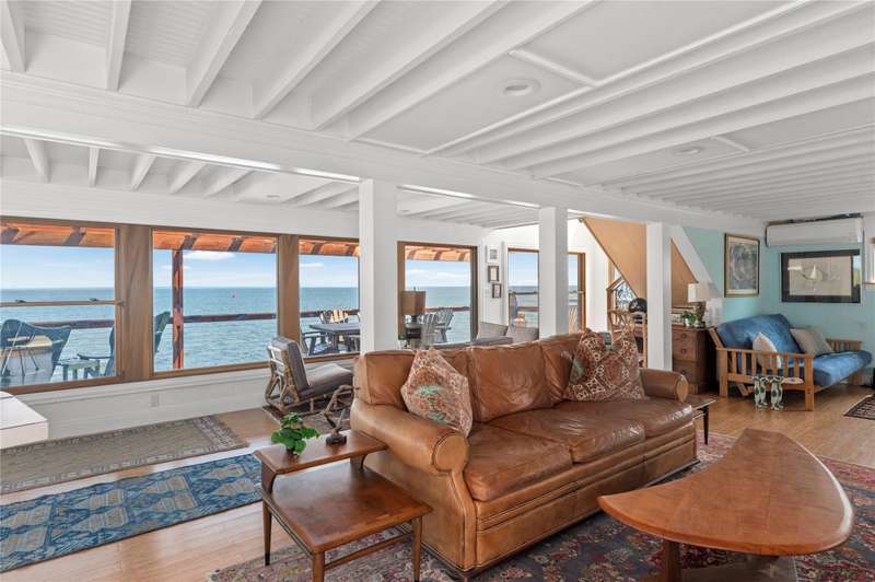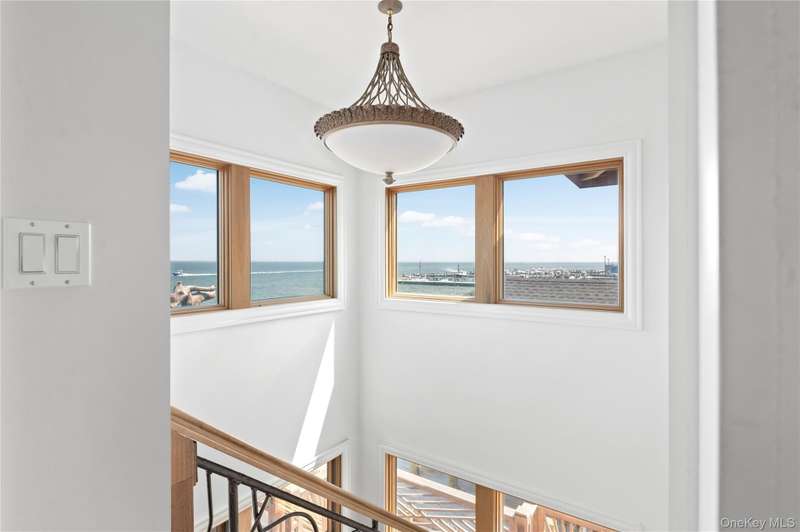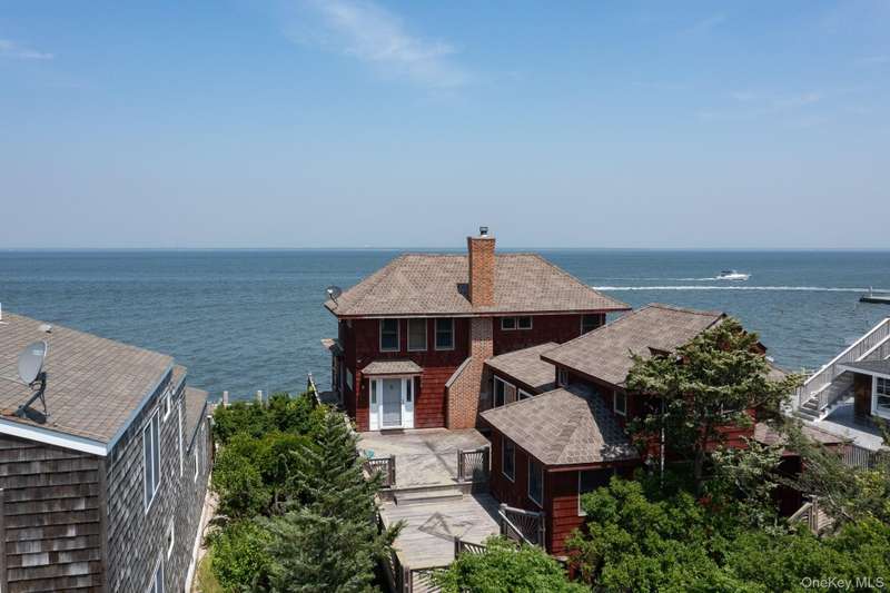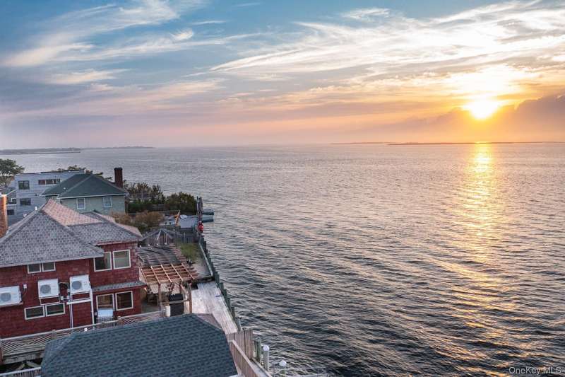 Bayfront Beauty with Breathtaking Views. Wake up to the soothing sounds of the water and experience sweeping, panoramic vistas of the Great South Bay from this stunning two-story coastal retreat. Elevated 11.5 feet on Pearson fiberglass pilings and boasting 50 feet of bulkhead, this home offers the ultimate waterfront lifestyle. The wraparound ironwood decks provide the perfect stage for unforgettable sunrises and sunsets from every angle—ideal for lounging, entertaining, or simply soaking in the serenity of the bay. Step inside to a beautifully designed interior built for year-round living. The inviting living room features a cozy fireplace, while the custom-built steam room adds a luxurious spa-like touch. Fully insulated and thoughtfully laid out, this over 2,000-square-foot home offers both comfort and versatility. The private master suite is a true sanctuary, complete with a Bayfront Juliet balcony where you can take in serene water views right from your bed. Two bay-facing bedrooms share a full bath, while three additional bedrooms in the rear of the home and a second full bath provide perfect separation for guests or extended family. The spacious kitchen flows seamlessly into the dining area, with sliders opening to the expansive deck—ideal for effortless indoor-outdoor living. There’s even room to add a pool and create the ultimate backyard oasis. Peaceful mornings, spectacular sunsets, and evenings under the stars await you in this private yet convenient coastal gem.