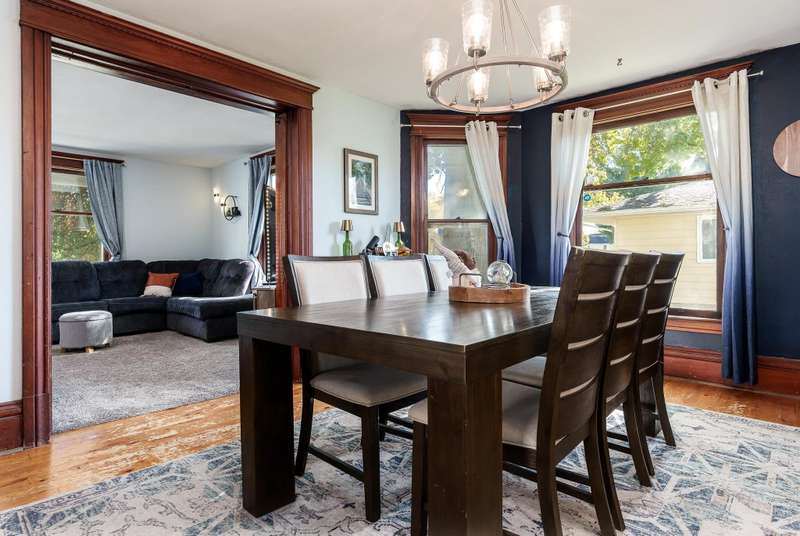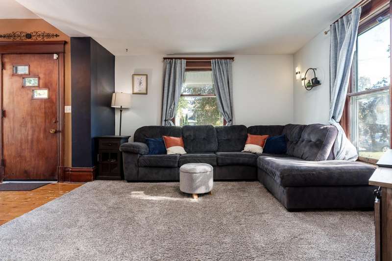 This home offers incredible space both inside and out in a highly sought-after Belvidere location within the Belvidere School District! Enjoy a beautiful front porch that welcomes you home and sets the tone for the charm found throughout. The standout feature is the detached guest/in-law suite or four-season room, a stunning addition with vaulted ceilings, a service bar, a full bathroom, and sliding doors that open to the fenced backyard. This versatile space expands your living area and creates a true outdoor oasis. Inside, you’ll find convenient first-floor laundry, a spacious living room, and a beautiful dining room with rustic hardwood floors—perfect for gatherings and everyday comfort. A bonus room on the main level was previously used as a fourth bedroom, offering flexible living options. The staircase and original trim details showcase the home’s timeless craftsmanship rarely seen in newer builds. Upstairs features three generously sized bedrooms and an updated, spacious full bath. The full basement offers potential for future expansion, while the oversized garage provides plenty of room for parking and storage. With newer appliances. Furnace, and central air 2023. This home beautifully blends classic character, modern comfort, and an unbeatable Belvidere location. Don’t miss this truly unique and versatile property!