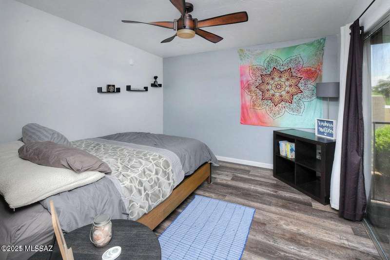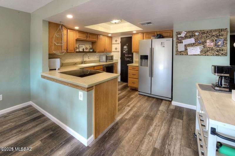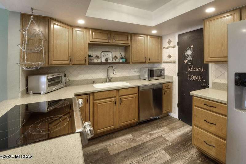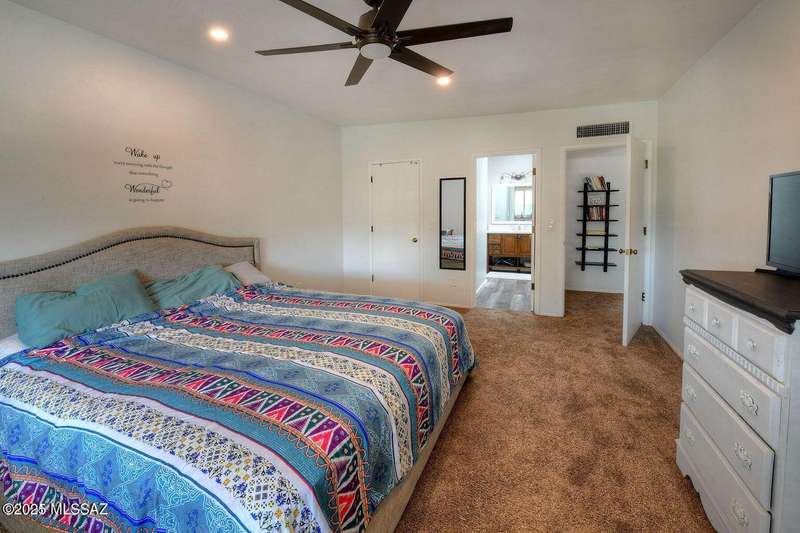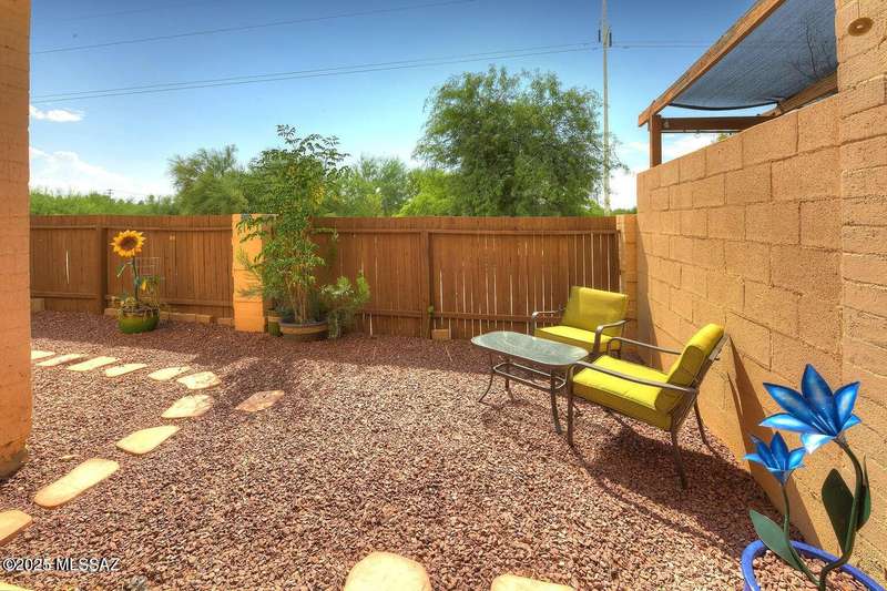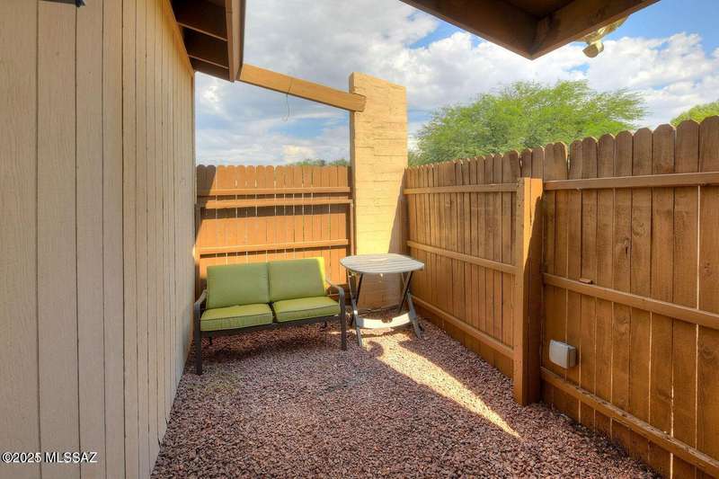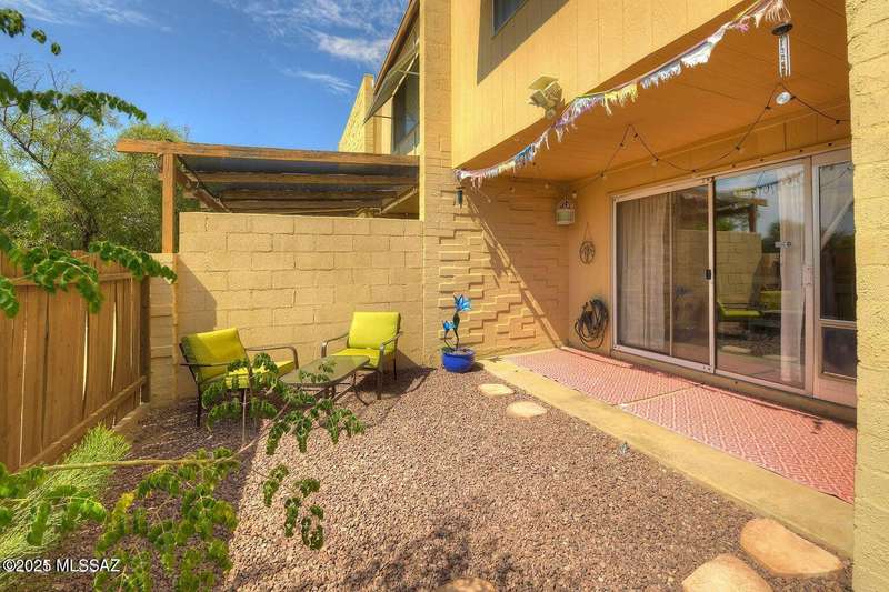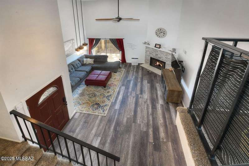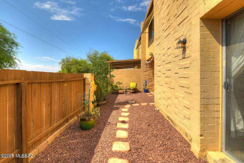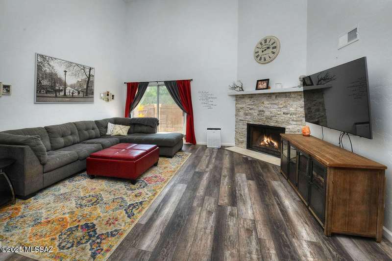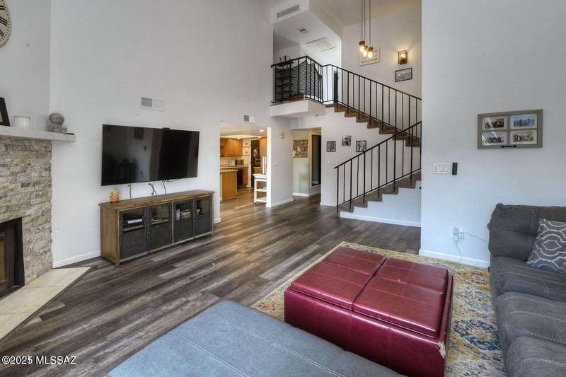Contemporary fully-updated 3BR/3BA located in Northeast community of Pantano Townhomes. Private corner unit welcomes you home w/ 17' living room ceilings, wood burning stone fireplace, engineered wood flooring & sliders to patio. Open plan. Updated kitchen raised ceiling, corian countertops & SS appliances. Huge walk-in pantry! Charming eat-in kitchen w/ patio access for indoor/outdoor dining. Split bedroom plan. 1st floor bedroom w/ private patio & bath. Upstairs owner's suite w/ en-suite bath w/ walk-in closet. Spacious Guest/Kids rm w/ screen porch, walk-in closet & full bath. 2 car garage. Back fence can be moved back adding 15' to yard. River Walk entrance in your backyard. HOA includes community pool, tennis & basketball courts & front yard maintenance.