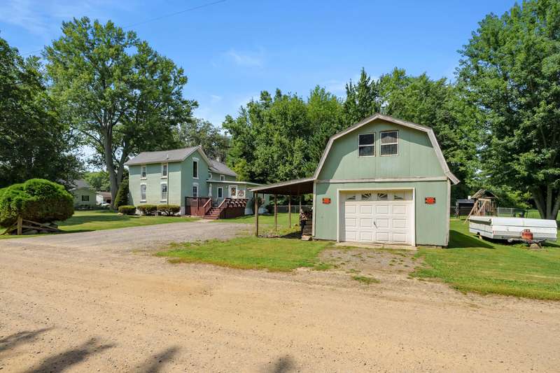 Wonderful farmhouse on large lot with 3 bedrooms, spacious kitchen and living areas and even a bonus office space. Oversized garage with 2nd floor, perfect for storing seasonal items, hobby or a craft room The large backyard is partially fenced. A new wood boiler was installed in 2021 and heats both the home and water. The roof of the addition was replaced 4 years ago. The septic tank and drain field were completely replaced in 2020. Country living just 10 minute from Charlotte and less than 30 minutes to Lansing. Seller reserves right to set offer deadline.