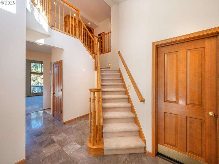Tucked away in a peaceful Southwest Hills neighborhood, this beautifully maintained home has excellent curb appeal and a thoughtfully designed floor plan - perfect for everyday living and entertaining. The newly carpeted main level features a spacious primary suite, laundry room, a formal living and dining room and two gas fireplaces. The main level family room has a vaulted ceiling and dramatic wall of windows that flood the space with natural light. Upstairs are two bedrooms with walk-in closets, a shared full bathroom, and a huge bonus room, which could serve as fourth bedroom. Outside you'll find an oversized deck, ideal for outdoor gatherings. The fully fenced yard, extra-deep garage, and abundant storage throughout make this home as practical as it is charming. Don’t miss your chance to make this Southwest Hills gem your own!