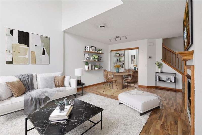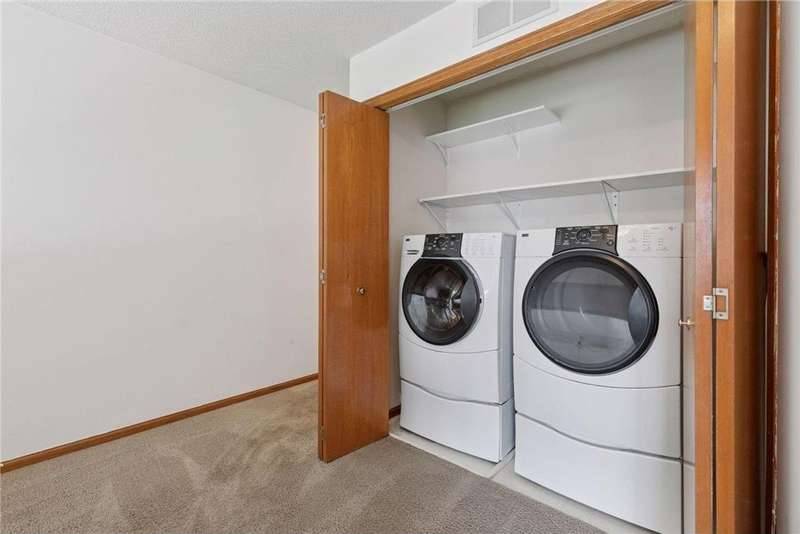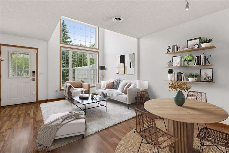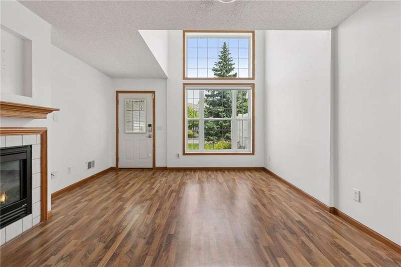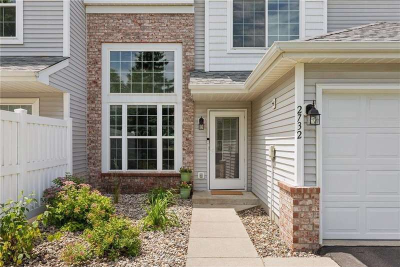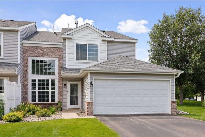 Ultimate convenience is calling for you in Pioneer Pointe. This wonderful end-unit townhome offers two bedrooms and two bathrooms within walking distance of Target and easy enjoyment of the Chaska Commons. The front door opens to vaulted ceilings and gorgeous light from a transom window in the living room. This room is enhanced by a cozy gas fireplace and an open dining space. The light extends into the kitchen, with abundant cabinet storage and walkout access to a private patio. The extra trees and green space make it the perfect retreat. Head upstairs to find an airy loft with a high-efficiency washer and dryer set. The primary bedroom shows off vaulted ceilings, a large walk-in closet and walk-through access to the full bathroom. A second bedroom completes this level. The garage has two parking stalls and a longer driveway to accommodate your guests. The deal sweetens with peace-of-mind coverage from an HSA home warranty for the new buyer. WELCOME HOME!