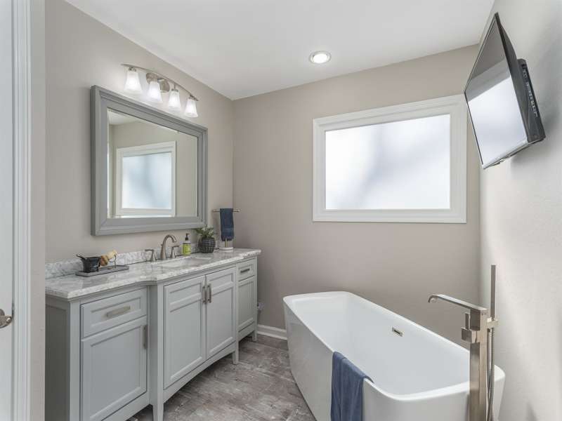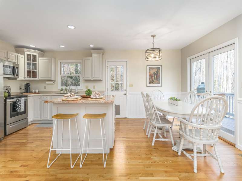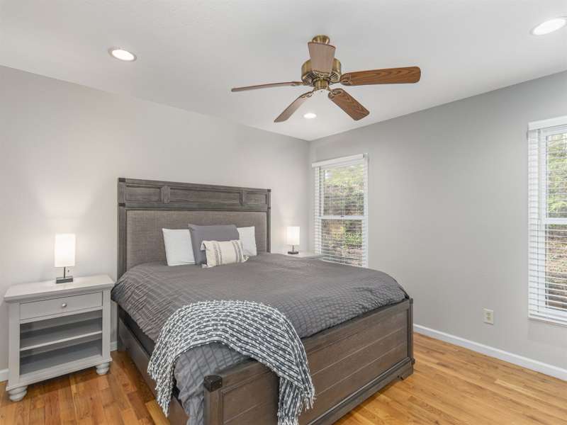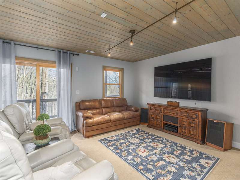Welcome to your dream home in the peaceful & established Hazel Hollow subdivision! This beautifully renovated 3-bedroom, 3 1/2-bath home offers a spacious layout with multiple bonus spaces, perfect for hobbies, work, exercise, or play. Freshly painted interior, the home features an open floor plan with a soaring cathedral ceiling &skylights in the living room, plus updated kitchen featuring painted cabinets, fun granite countertop island, & stainless-steel appliances. The refinished wood floors & modern lighting enhance the inviting atmosphere. The main-level primary suite is a true retreat with a tile walk-in shower, slipper tub, oversized modern vanity, and walk-in closet. Upstairs, two additional bedrooms, a hall bath, & a bonus room provide ample space. The lower level boasts a cozy family room, flex space, & a spa-like handicap accessible bathroom. Enjoy winter mountain views, summers among the trees, neighborhood pond, double decks, & a new rock retaining wall at the driveway.