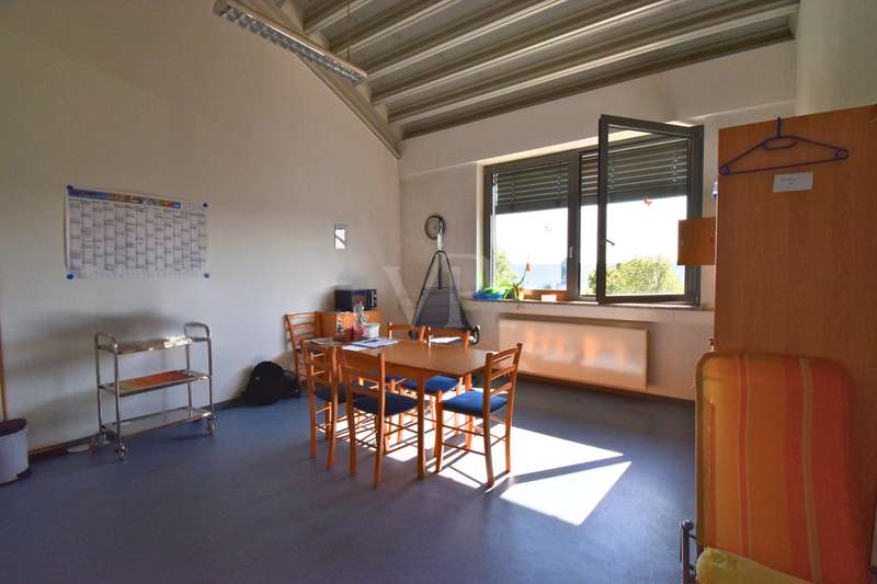 We offer you an extremely versatile office space for rent that can be perfectly tailored to the individual needs of your company. The entire space covers 710 square meters and is located in a modern building from 1998. The space can be flexibly arranged and can be rented as a whole or in sections. The property is in a well-connected location that is easily accessible both by car and by public transport. Floor plan and possible uses: Partial area 1: 476 square meters This spacious area is ideal for use as an open-plan office, fitness studio, doctor's or physiotherapy practice or other large-scale requirements. It offers plenty of space for a flexible layout, whether for workstations, training areas or sports activities. Partial space 2: The remaining area is currently divided into individual offices, a lounge and a meeting room. This space is ideal for smaller teams, specialized work areas or as an addition to the larger space. Both spaces can be rented separately or together, depending on your requirements. Facilities: Fully equipped kitchen: A modern kitchen is at your disposal, which is ideal for breaks or catering for guests. WCs: Separate sanitary facilities for men and women Common room: A spacious lounge and meeting room that can be used in a variety of ways. The rooms are bright and friendly, offer a pleasant working atmosphere and are equipped with modern IT infrastructure. The flexible room layout allows you to adapt the space optimally to the needs of your company. If you have any questions or would like to arrange a viewing, please contact us.