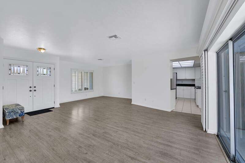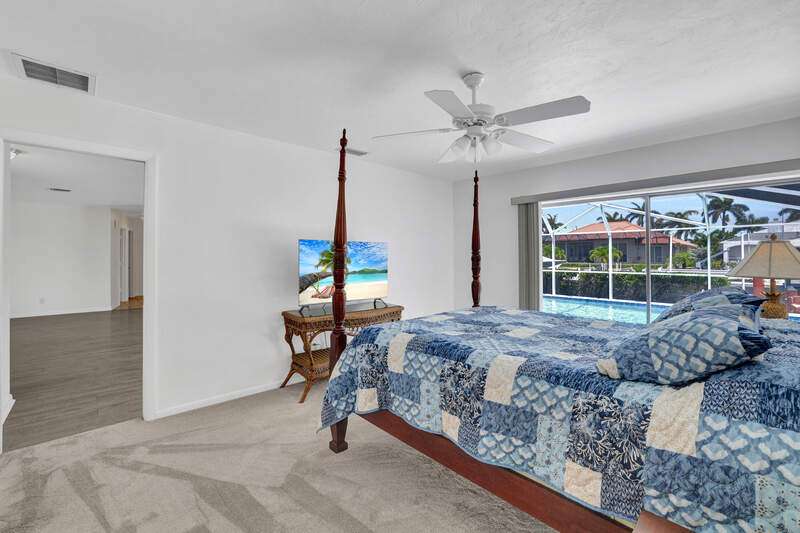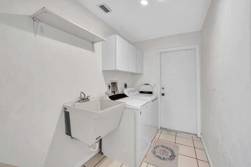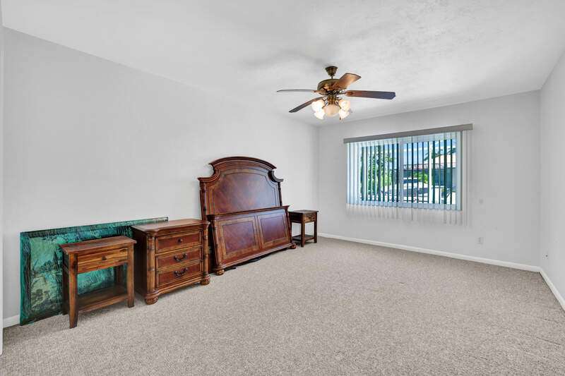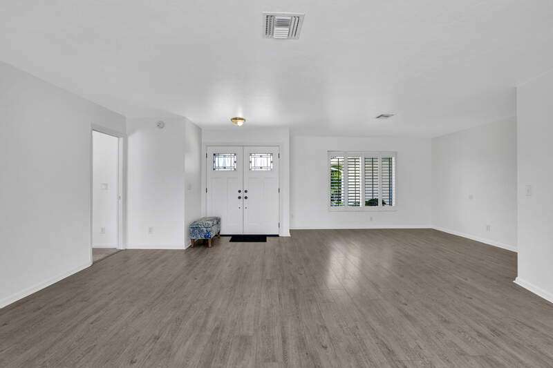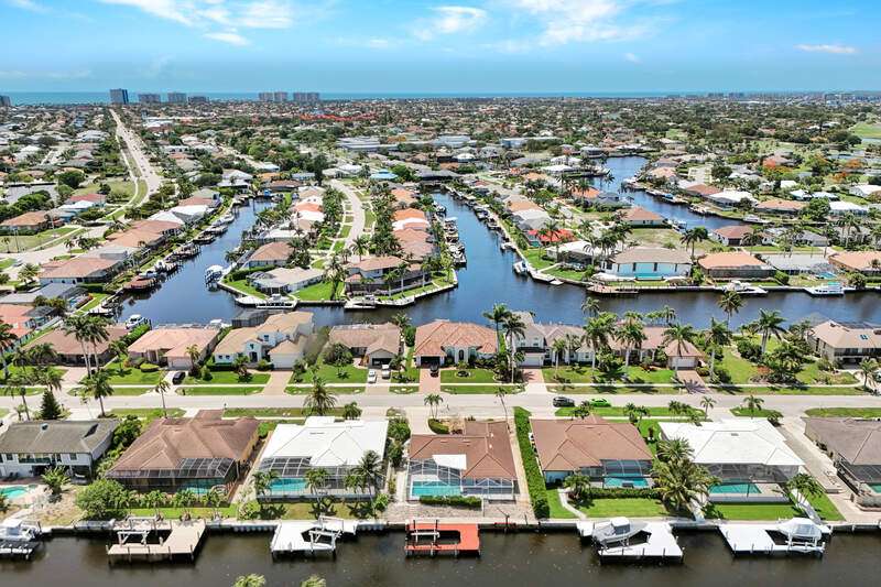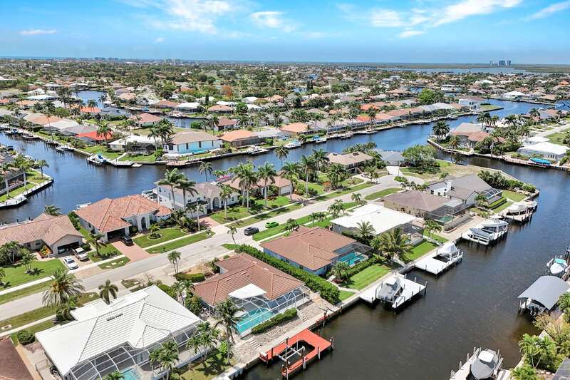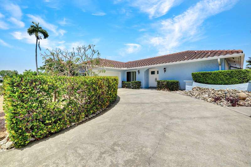 Exceptional value on this beautifully maintained waterfront pool home located on a quiet cul-de-sac with desirable southeast exposure for all-day natural light. This 3-bedroom, 2-bath home offers a bright and open layout with plantation shutters, tile plank and carpet flooring, and a welcoming double-door entry. The kitchen features white cabinets, granite countertops, stainless steel appliances, and a pantry. The spacious primary suite includes private outdoor access, while two guest bedrooms share a full bath. Enjoy outdoor living on the screened lanai (2019) overlooking the retiled and resurfaced pool (2017). Additional upgrades include new HVAC (2023), water heater (2023), roof (2017), and garage door (2018). A new seawall is scheduled for 2025 or 2026. The low-maintenance yard is a tropical retreat with a mature avocado tree, plumeria, and hurricane shutters for added protection. This move-in ready home offers comfort, peace of mind, and true Florida living-ideal for full-time or seasonal enjoyment.