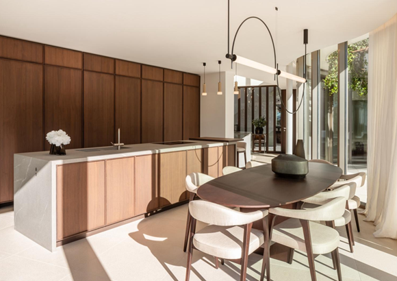 This property boasts a generous plot of approximately 750 sqm and a total living area of around 491 sqm spread across three floors. The villa features four bedrooms, each with an en-suite bathroom, a spacious living and dining room, a fully equipped kitchen, and a utility room. The modern and elegant design creates a harmonious living experience with an open-plan layout and simple sophistication.Carefully selected furnishings and amenities ensure maximum comfort, including underfloor heating, air conditioning, a fireplace, electric blinds, a wine cellar, an electric car charging station, a music system, solar panels, an alarm system, a fitness room, and more. The highlight is the rooftop terrace with a Jacuzzi and partial sea views, providing the perfect setting to unwind with a glass of wine at the end of the day. The outdoor area is equally impressive, with a refreshing pool and well-maintained gardens that offer ultimate relaxation. This villa embodies the perfect blend of luxur