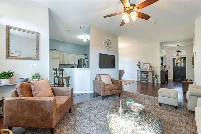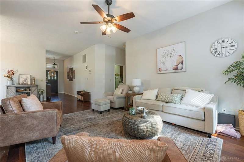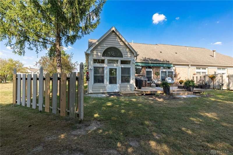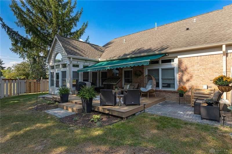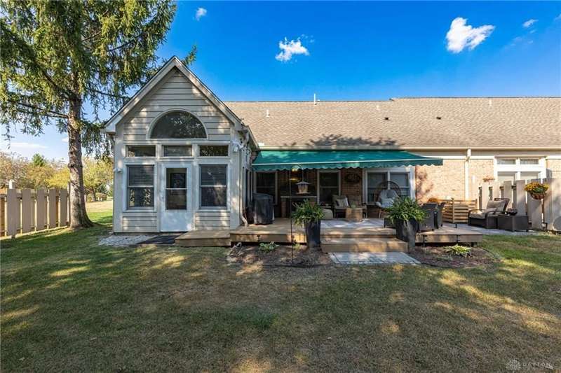 Do not miss out on this exquisite single floor ranch condo in Yankee Vineyards. Comes with 3 bedrooms, 2 baths with bidets, features 10ft. ceilings, gas fireplace, eat-in kitchen, formal dining room and an exquisite sunroom to relax in. Enjoy the newly built (2025) 14'x20' timber tech composite decking/patio pavers, retractable awning with remote and privacy fence (2024) along the back perimeter of the yard. The kitchen offers newer granite countertops, sink, fixtures and pantry. Main bedroom offers two walk-in closets and bathroom with double sinks. Enjoy the many updates to this beautiful ranch condo: (2021) Engineered wood flooring throughout the main areas and main bedroom, professional painting throughout condo and updated fireplace surrounds and mantle. Updated plumbing fixtures and mirror in guest bathroom. Updated kitchen cabinetry, plus faux wood blinds throughout the living room, sunroom and main bedroom. (2024) New ceiling fan in one bedroom along with luxury vinyl flooring in two bedrooms. (2025) New dish washer, garbage disposal, storm door for the sunroom and new coil springs on the garage door. Furnace (2010), roof (2009), garage door (2014) and gutters (2014). Close to Yankee Golf Course, I-675, hospitals, restaurants and residential housing. Do not miss out on this captivating condo.
