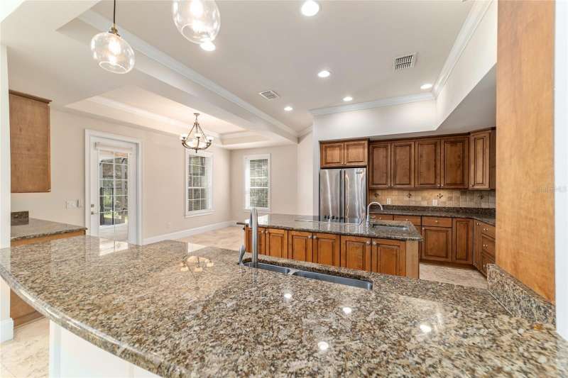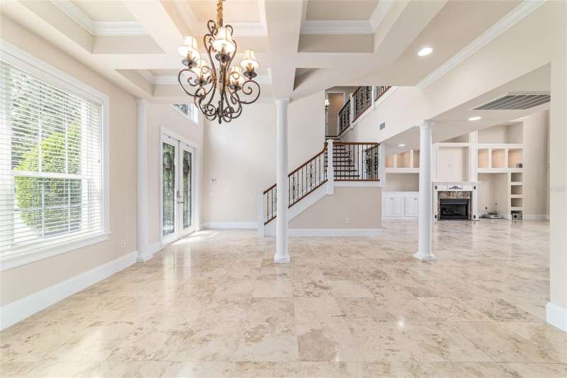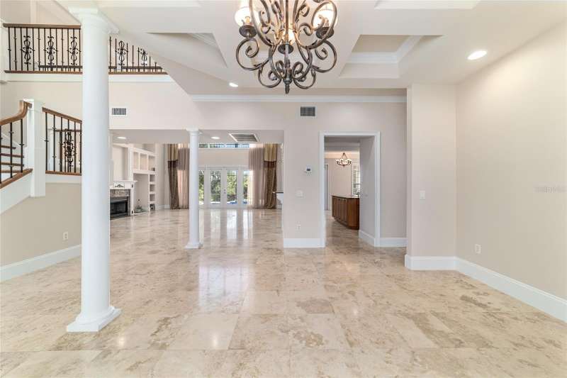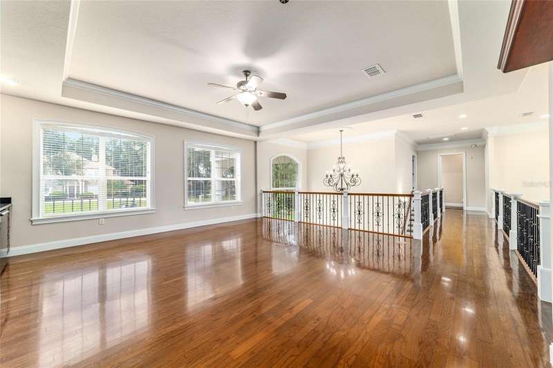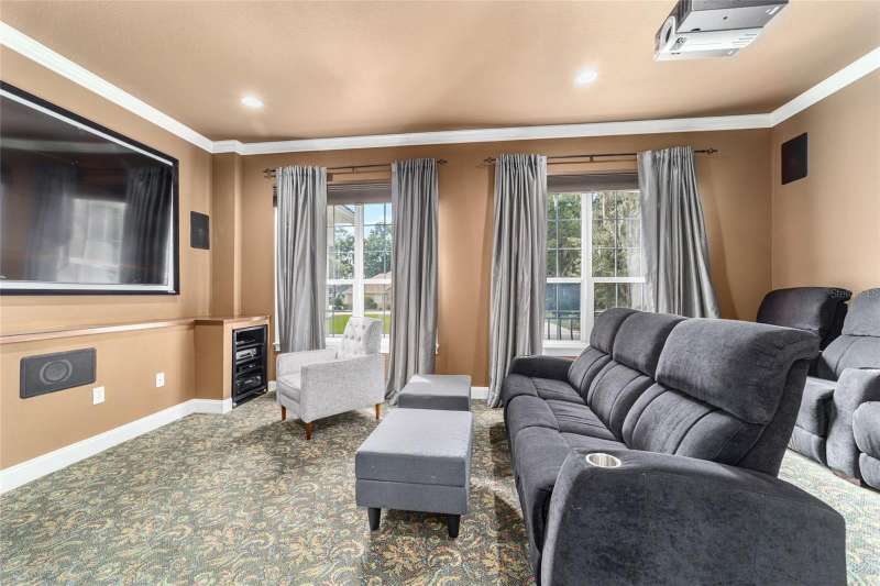 Welcome to this stunning custom-built two-story 5 bedroom/4.5 bath home in the Country Club of Ocala. Built in 2007 and thoughtfully enhanced in 2017 with a sparkling pool, spa, and screen enclosure, this home is perfect for soaking up the Florida sunshine. And the best part? The backyard overlooks a horse farm, so you’ll have those peaceful country views every day. Step into the inviting foyer, where you’ll find a formal dining room and a spacious family room with soaring two-story ceilings, a cozy gas fireplace and plenty of natural light. The family room flows seamlessly into the kitchen, complete with a breakfast bar and eat-in nook that’s great for casual mornings or entertaining. The first floor primary suite is roomy and features a sitting area, two walk-in closets with custom built-ins and a spa-like bath with a jacuzzi tub and separate shower. There is a small bonus space as part of the master that could be perfect for a small office or workout room. An additional bedroom and bath, conveniently doubling as a pool bath, round out the main floor. Head upstairs and you’ll find a large loft-style living space with built-in cabinetry and a bar fridge perfect for just hanging out. Movie nights are easy in the media room, complete with theater seating and equipment. The second floor also offers a spacious guest suite with a private bath and balcony access, plus two more bedrooms that share a Jack-and-Jill bath. The upstairs balcony stretches across the back of the home, overlooking the pool and backyard.The outdoor living space is where this home truly shines—an oversized rectangular pool with a sun shelf and water features is the centerpiece, complemented by a summer kitchen, built-in grill, beverage fridge and a stone fire pit with built-in seating. Whether hosting friends or relaxing with family, you’ll love this private backyard oasis. Additional features include a 3-car garage and plenty of thoughtful details throughout.