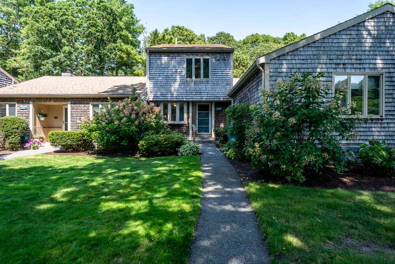 Welcome to this beautifully maintained condo in the desirable Falmouth location! Stunning unit boasts a bright and airy kitchen, recently renovated w/ modern cabinets, appliances, and flooring that evoke a coastal charm. The expansive bay window floods the space with natural light, creating a warm and inviting atmosphere. The spacious living area features a cozy gas fireplace and a sleek slider that leads out to your private patio, perfect for taking in the fresh air and enjoying the surroundings. The open layout seamlessly integrates the dining and living areas, creating a perfect space for entertaining. The second floor boasts two spacious bedrooms, freshly painted and featuring generous closet space and new flooring. The renovated bathrooms are a highlight, with updated vanities, fresh paint, and a sleek new look.This condo has been meticulously maintained and upgraded over the years, notable improvements including a renovated kitchen, bathrooms, heating system, A/C, flooring, int