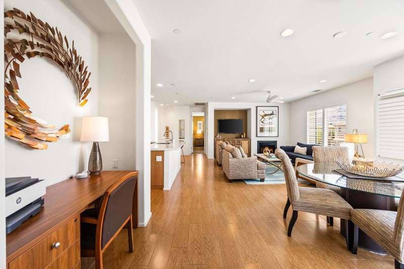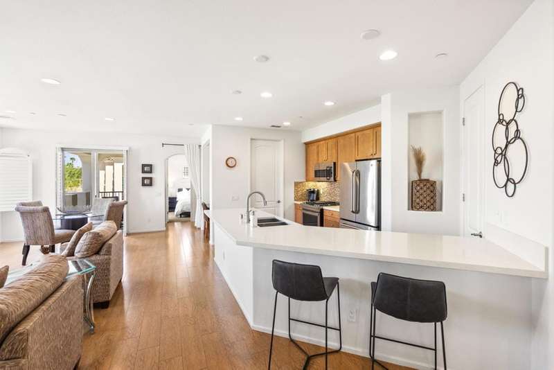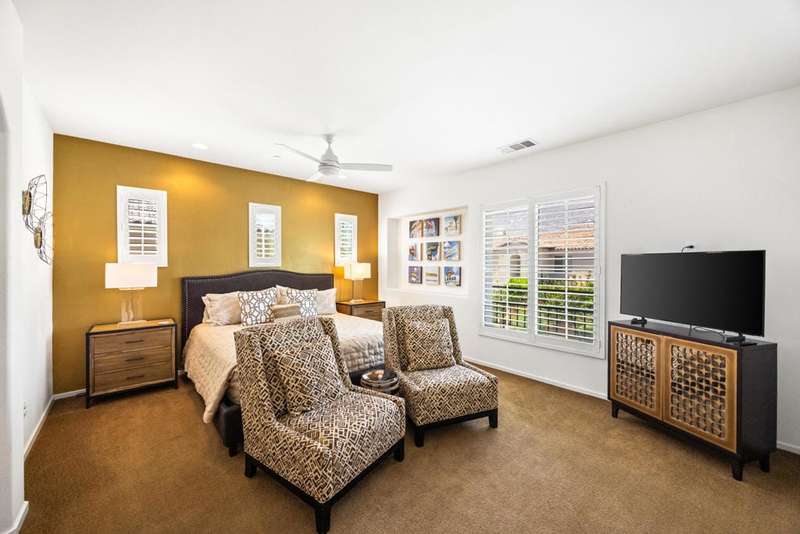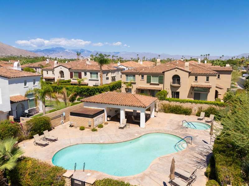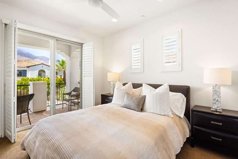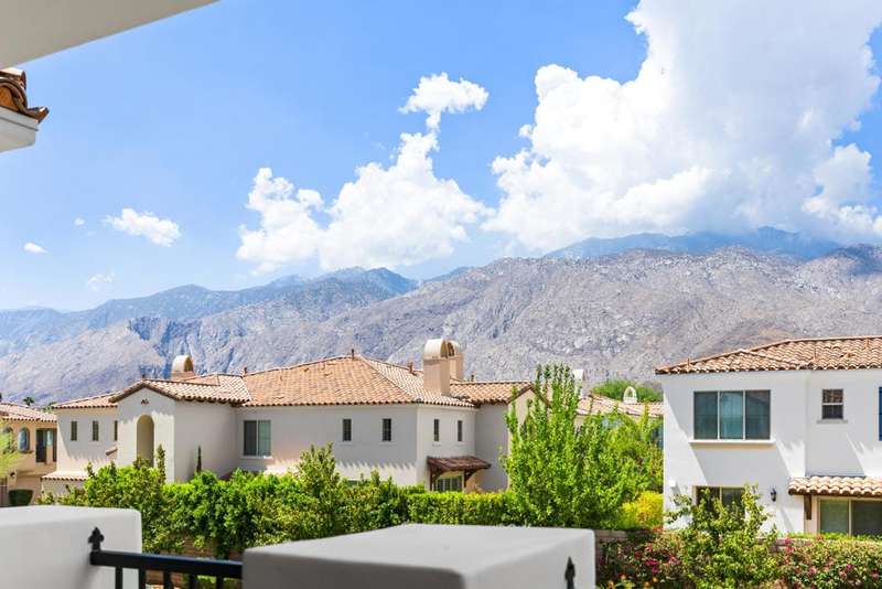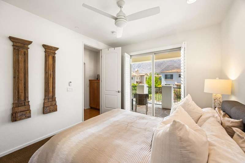Revel in incredible mountain views from every room in this carriage house floor plan in the gated community of Terra Vita. This fully furnished 2-bedroom, 2-bathroom condo was built in 2013 and has a generous primary bedroom suite with amazing mountain views and an ensuite bathroom. The guest bedroom, thoughtfully separated from the primary suite, is adjacent to the second full bathroom and opens to a spacious balcony for glorious mountain gazing. This property is immaculate with wood-plank tile flooring in the great room & kitchen, plantation shutters, a gas fireplace in the living area, tiled kitchen backsplash and a newer Jenn Air stove/ oven. There is a separate laundry room off the kitchen and a two-car garage with an epoxy finish. This lovely property can be enjoyed as a primary residence, second home or luxury rental. It's just a short walk to the community pool and spa. The Terra Vita Community has well-manicured landscaping throughout and is perfectly located close to downtown Palm Springs for shopping, restaurants and all that Palm Springs has to offer.