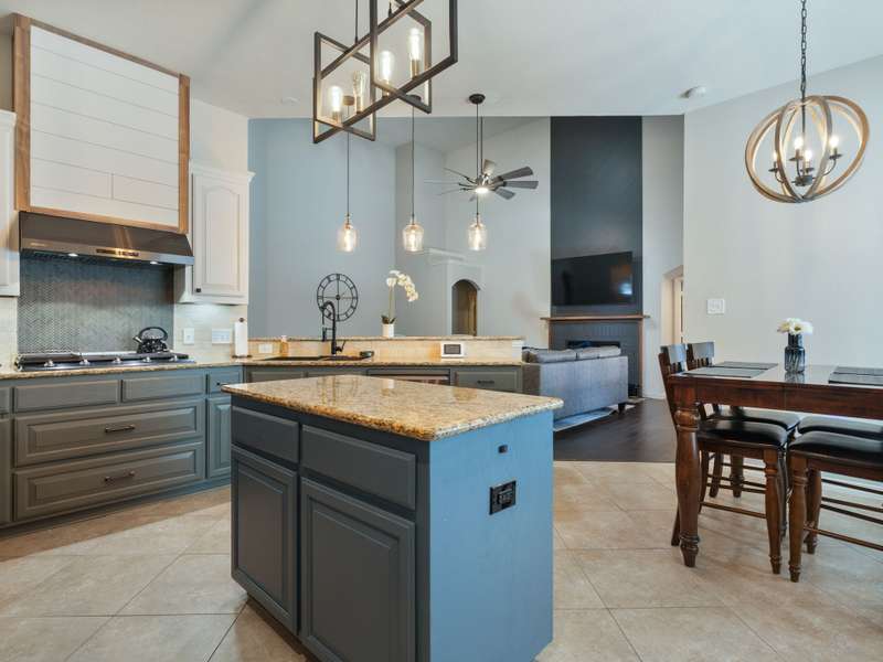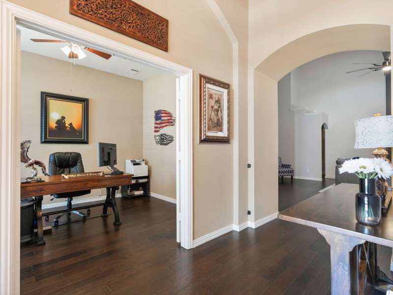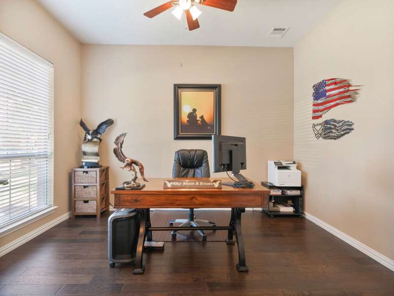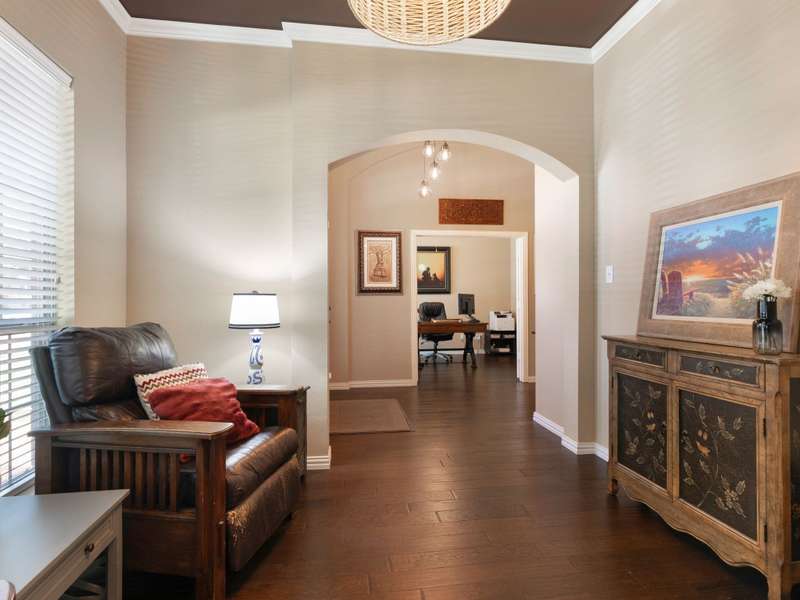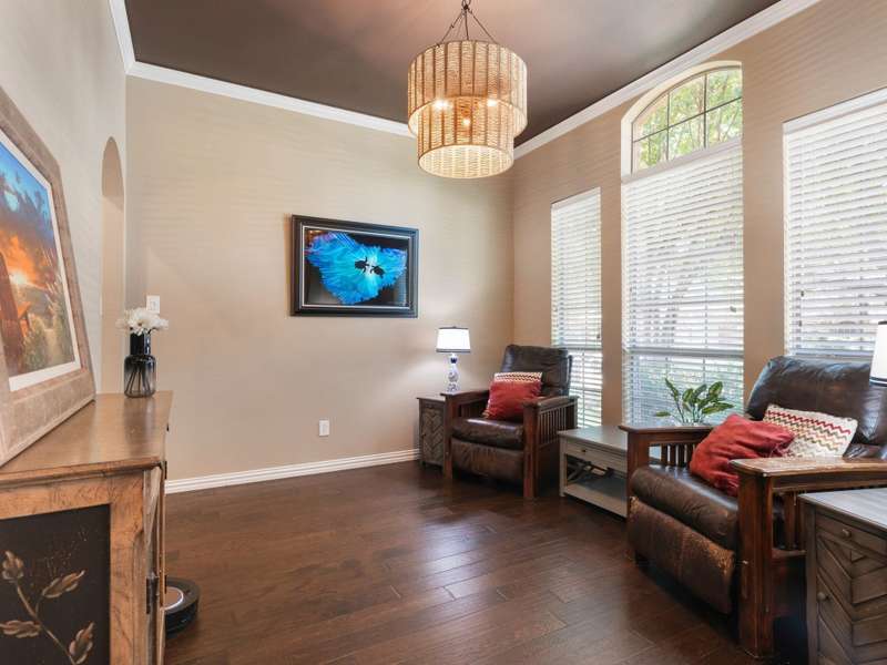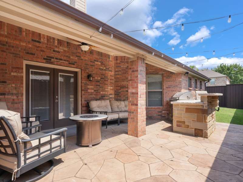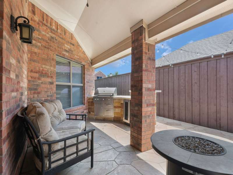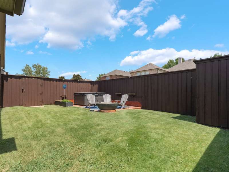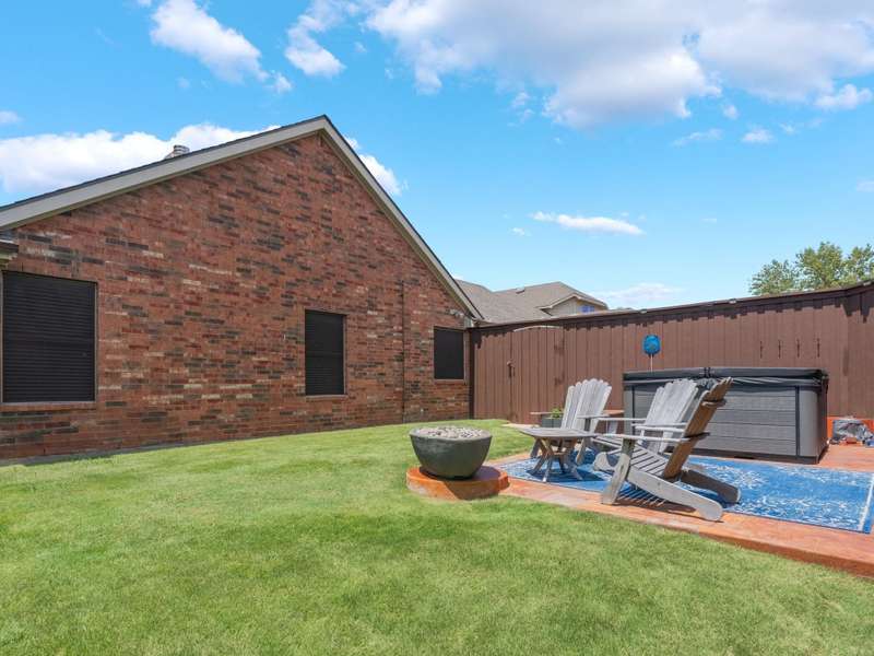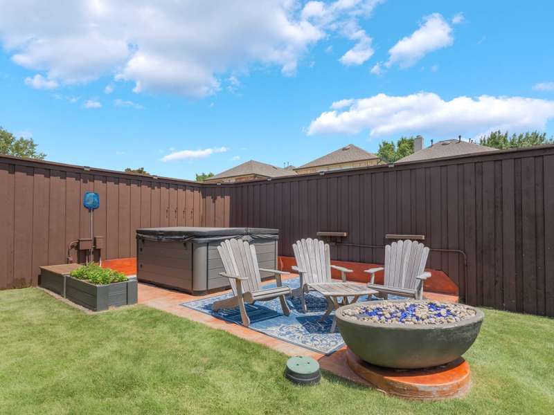 Welcome to your dream home nestled in the highly desirable Northridge community of West Frisco! Beautifully updated 1-story home offers an exceptional blend of comfort, style, and functionality w an open-concept layout, fresh designer paint, soaring ceilings, and countless custom touches throughout. As you arrive, a striking modern front door sets the tone for the stylish interior. Inside, you'll find warm wood flooring, a spacious formal dining room (currently used as a cozy sitting area), and a versatile executive study or optional 4th bedroomperfect for remote work or guests. Luxurious primary suite is a true retreat, featuring a tray ceiling, relaxing seating area, spa-like en-suite w a jetted tub, separate shower, and a jaw-dropping custom walk-in closet fit for a fashionista. Entertain effortlessly in the oversized family room complete w a gas fireplace framed by a stunning ceiling-high custom shiplap accent wall. The room flows seamlessly into the heart of the home: chef-inspired eat-in kitchen boasting: Under-cabinet lighting illuminating countertops, Painted cabinetry w custom woodwork, Built-in spice racks, bar-style sink cup washer, and gas cooktop paired w a stylish shiplap-wrapped vent hood, Black SS appliances, including a microwave-convection oven combo and a charming window seat that adds character and functionality. Step outside to your private backyard oasis, designed for year-round entertaining! Enjoy: Covered patio w built-in gas grill and outdoor refrigerator, Magical string lights over an El Frisco-style dining space, 8-ft privacy fence, and a hot tub that conveys w the home. Plenty of room for gatherings, play, or peaceful evenings under the stars. Oversized 2.5-car garage offers ample storage, and the community pool and playground are just a short walk away, making this home perfect for all lifestyles. Located near the PGA headquarters, world-class golf courses, shopping, dining, and top-rated Frisco ISD schools, this home checks every box!