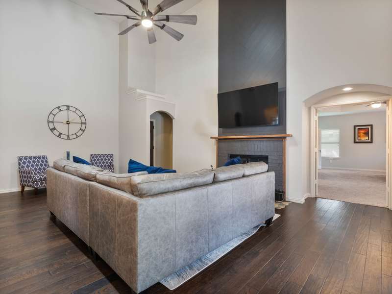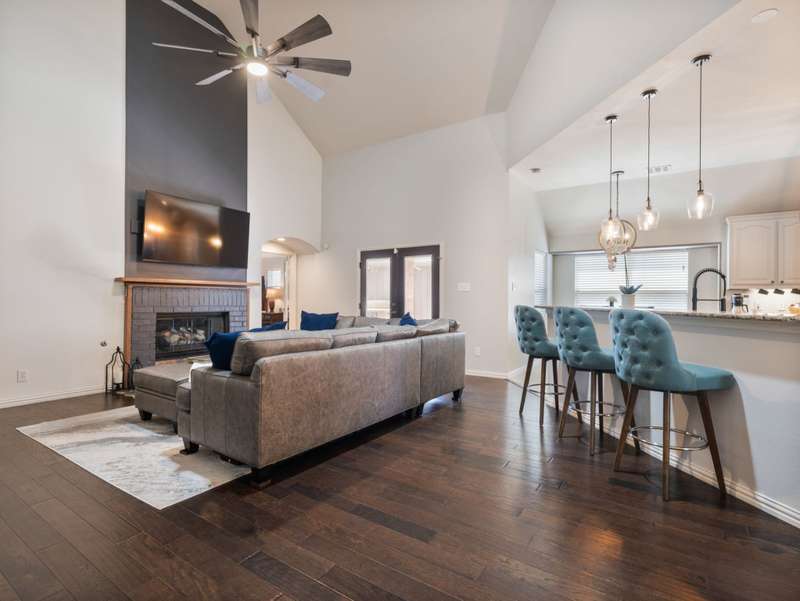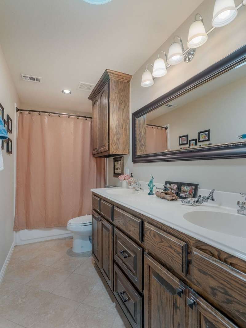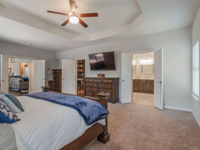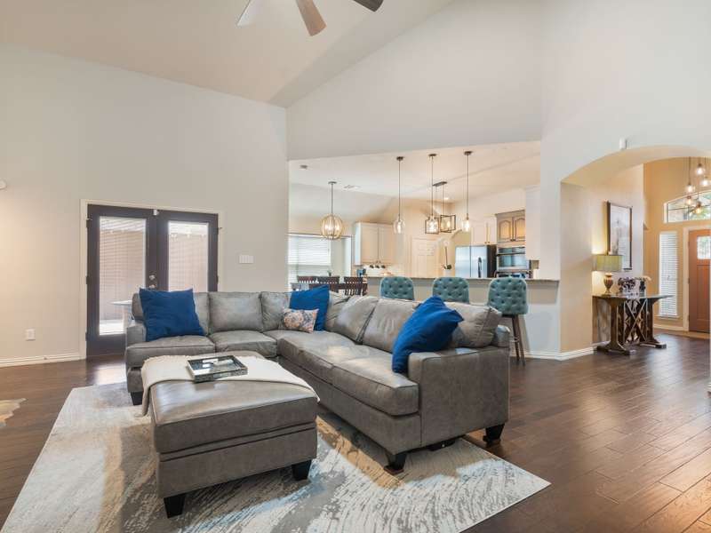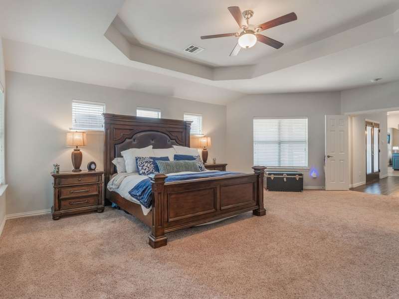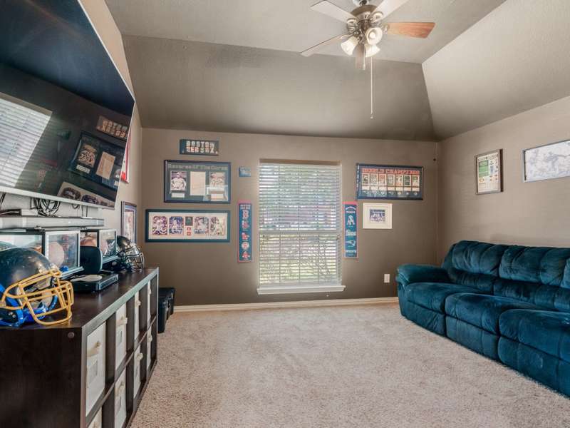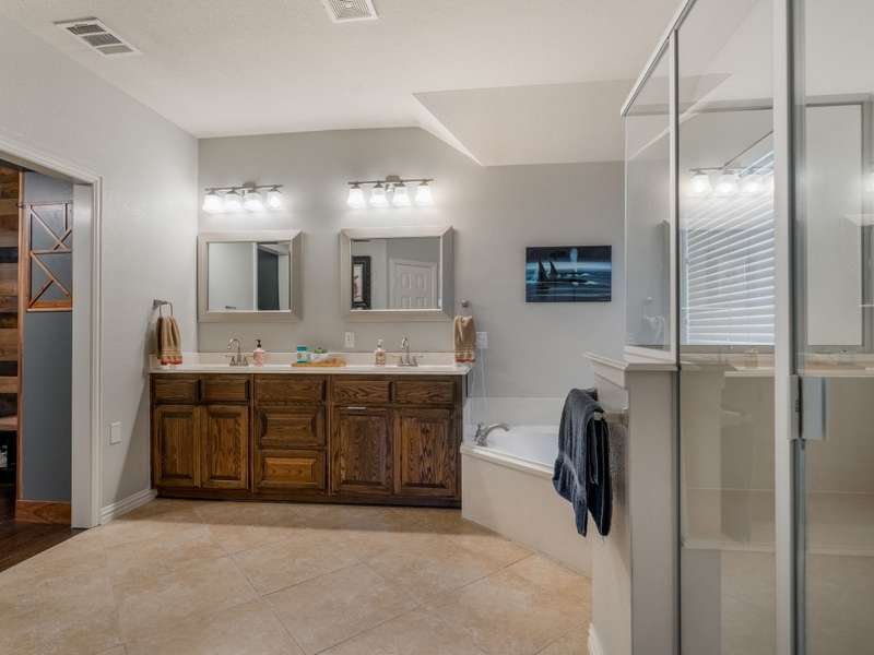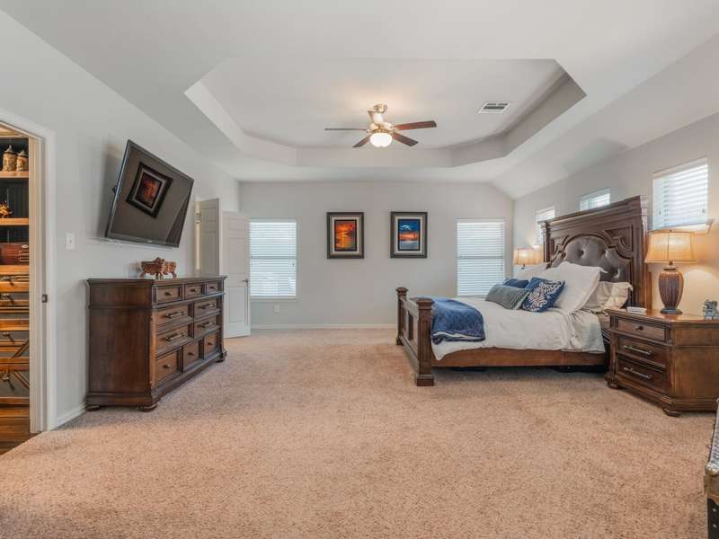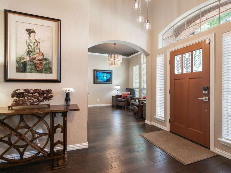 Welcome to your dream home nestled in the highly desirable Northridge community of West Frisco! Beautifully updated 1-story home offers an exceptional blend of comfort, style, and functionality w an open-concept layout, fresh designer paint, soaring ceilings, and countless custom touches throughout. As you arrive, a striking modern front door sets the tone for the stylish interior. Inside, you'll find warm wood flooring, a spacious formal dining room (currently used as a cozy sitting area), and a versatile executive study or optional 4th bedroomperfect for remote work or guests. Luxurious primary suite is a true retreat, featuring a tray ceiling, relaxing seating area, spa-like en-suite w a jetted tub, separate shower, and a jaw-dropping custom walk-in closet fit for a fashionista. Entertain effortlessly in the oversized family room complete w a gas fireplace framed by a stunning ceiling-high custom shiplap accent wall. The room flows seamlessly into the heart of the home: chef-inspired eat-in kitchen boasting: Under-cabinet lighting illuminating countertops, Painted cabinetry w custom woodwork, Built-in spice racks, bar-style sink cup washer, and gas cooktop paired w a stylish shiplap-wrapped vent hood, Black SS appliances, including a microwave-convection oven combo and a charming window seat that adds character and functionality. Step outside to your private backyard oasis, designed for year-round entertaining! Enjoy: Covered patio w built-in gas grill and outdoor refrigerator, Magical string lights over an El Frisco-style dining space, 8-ft privacy fence, and a hot tub that conveys w the home. Plenty of room for gatherings, play, or peaceful evenings under the stars. Oversized 2.5-car garage offers ample storage, and the community pool and playground are just a short walk away, making this home perfect for all lifestyles. Located near the PGA headquarters, world-class golf courses, shopping, dining, and top-rated Frisco ISD schools, this home checks every box!