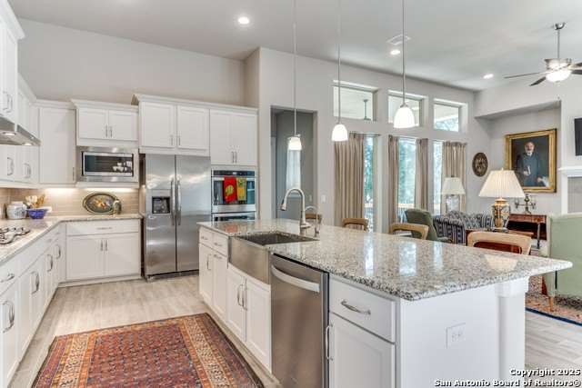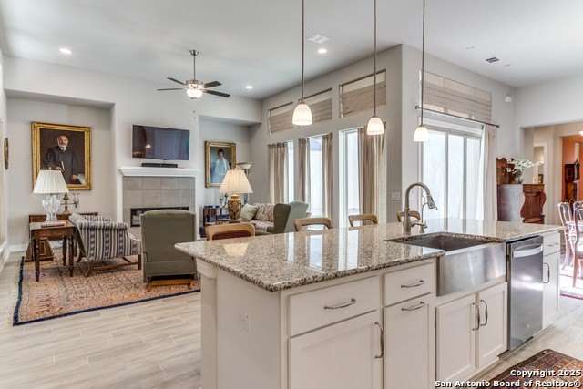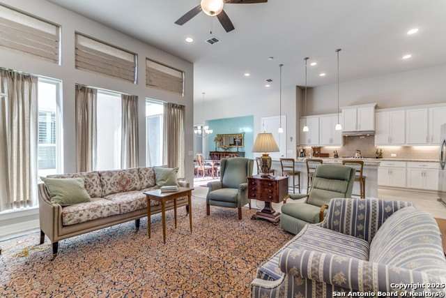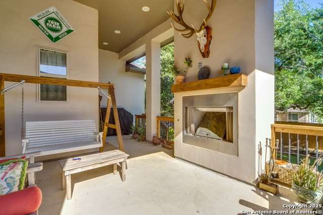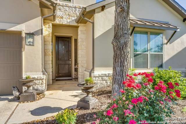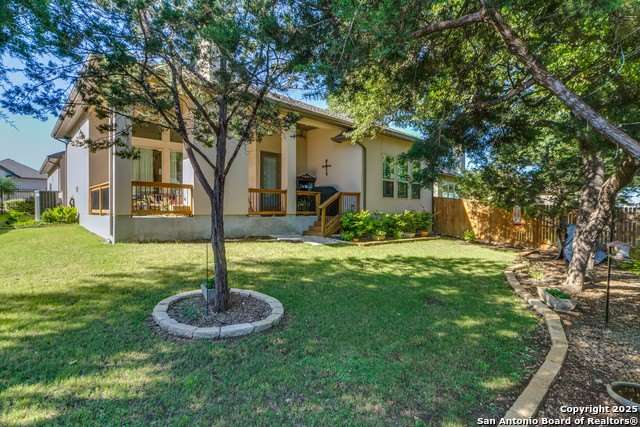 Very pretty one story home in the gated community of Settler's Ridge at Kinder Ranch. High ceilings and lots of natural light. Enjoy two outdoor living spaces including a cozy patio with a wood burning fireplace and a dining patio. Entertainer's kitchen open to the great room. Spacious primary ensuite with large closet. Large two car garage. Yard maintenance is provided by HOA. Walk to schools and enjoy the neighborhood amenities at the nearby recreation center. Quick access to highways. Well maintained. Don't miss this.