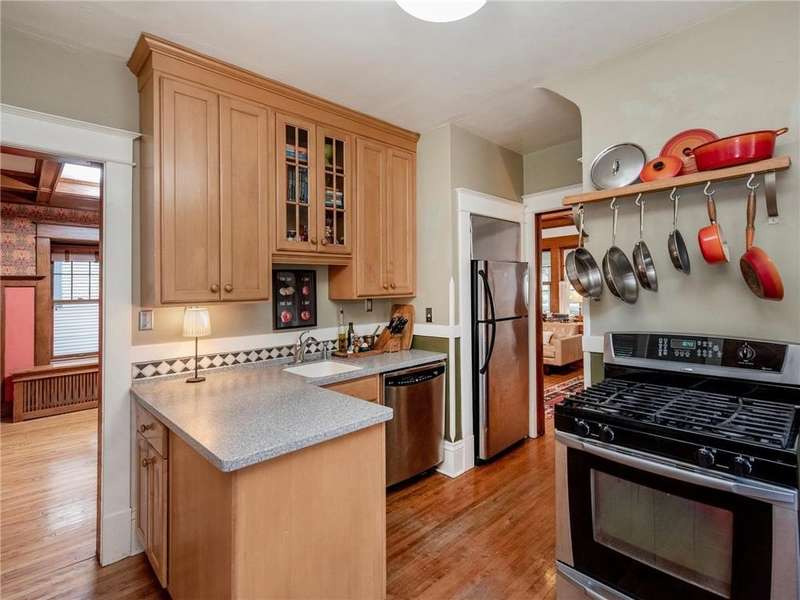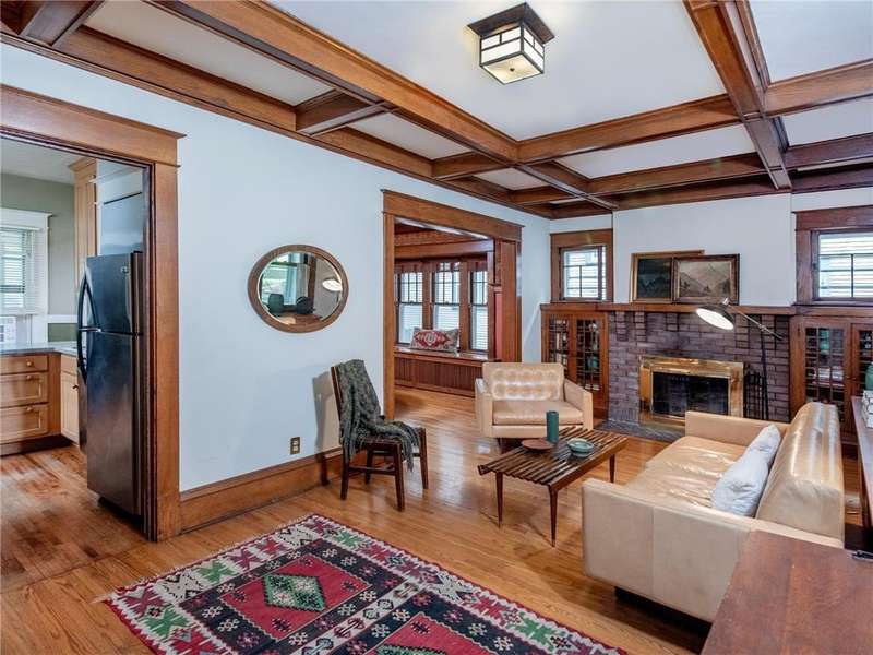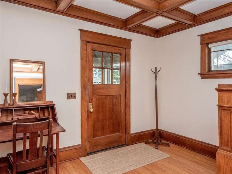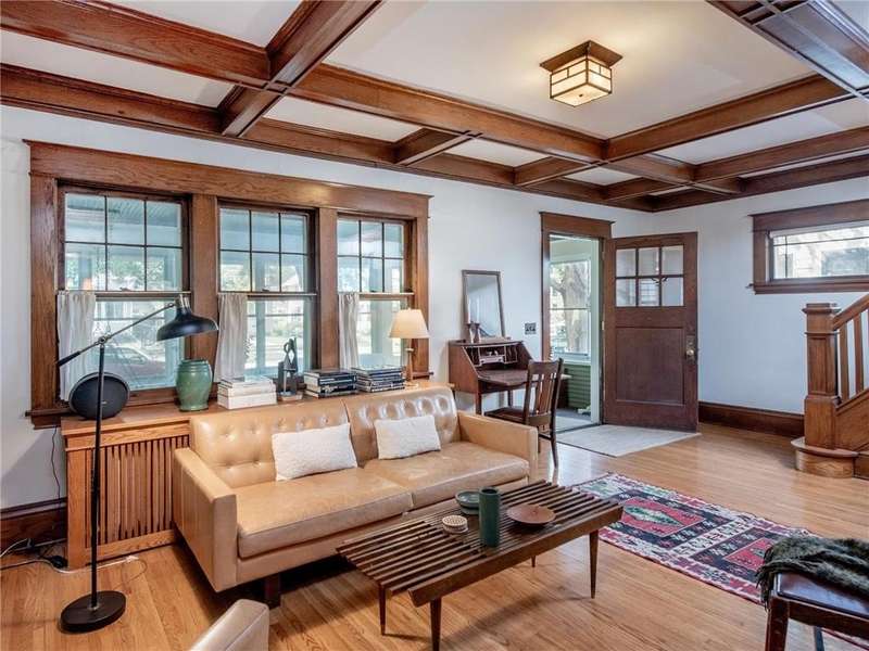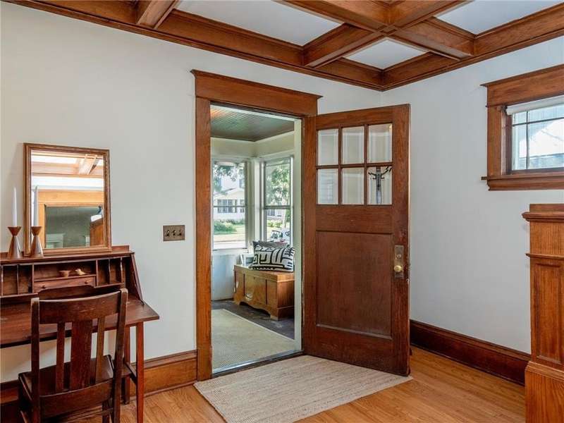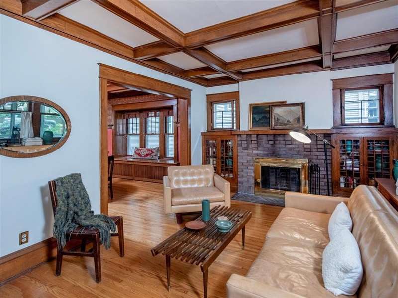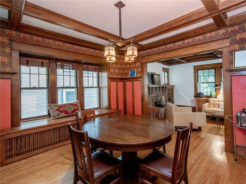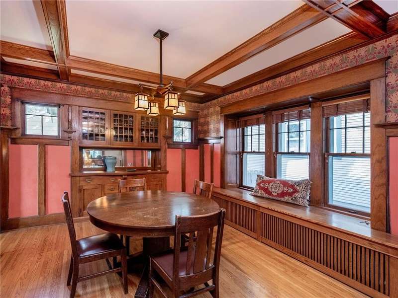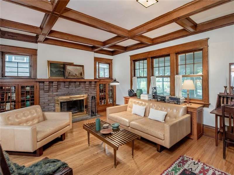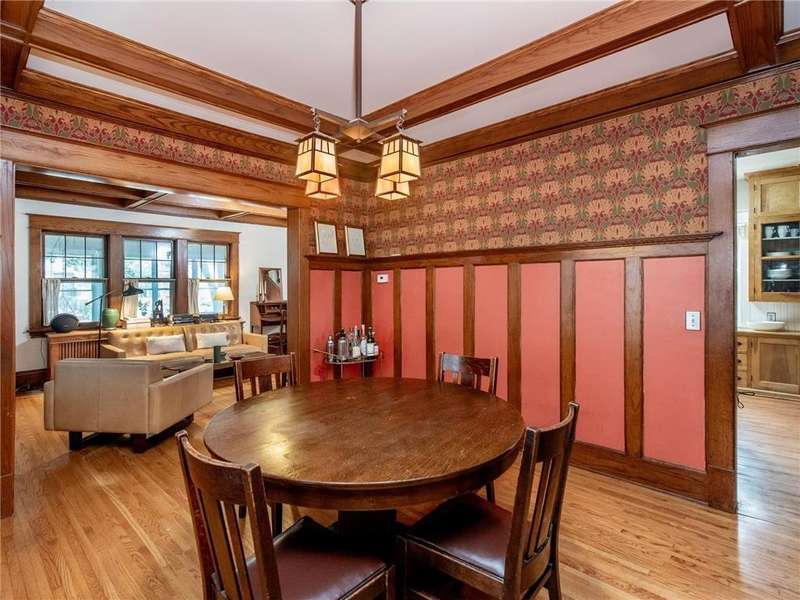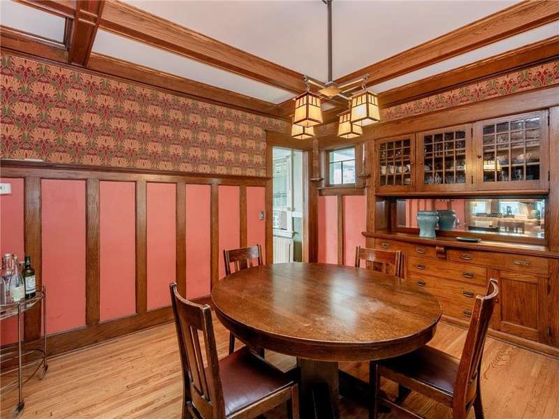 Nestled in the heart of St. Paul's desirable Merriam Park neighborhood, this sophisticated bungalow blends timeless character with classic craftsmanship. Step inside to find stunning original woodwork, hardwood floors throughout, and a beautifully detailed coffered ceiling that adds warmth and elegance to the main living space. The dining room features a built-in buffet, showcasing the home's authentic craftsman style and offering both function and charm. In the evenings, the rich wood tones and thoughtful lighting create a warm, glowing ambiance that makes the home feel especially inviting. The home boasts three spacious bedrooms and two baths, along with an original kitchen that maintains its vintage appeal. Outside, the fenced-in backyard provides the perfect retreat for gardening, play, or entertaining. A newer roof and a rare 2.5-car garage add peace of mind and convenience. With its inviting layout, preserved architectural details, and modern updates, this bungalow is a true gem in one of St. Paul's most sought-after neighborhoods.