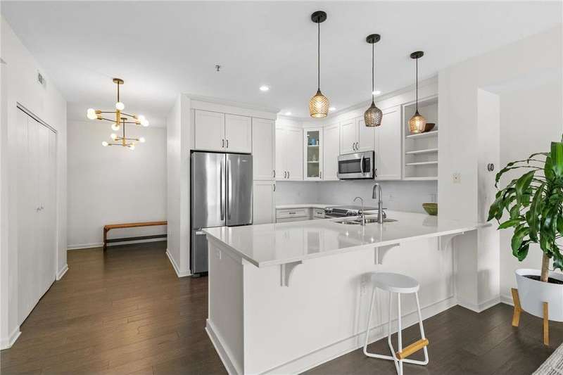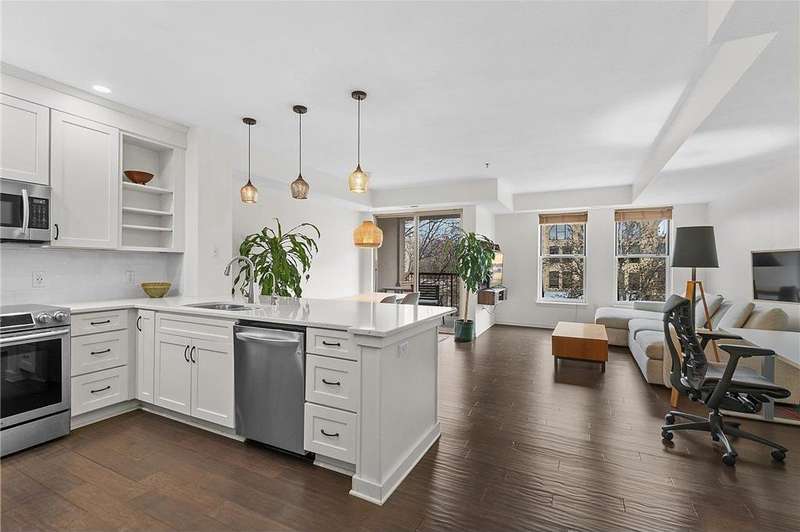 This one bedroom + one bath River Station condo is located in the highly desirable North Loop. The kitchen features beautiful granite counter tops with white cabinets & stainless steel appliances. The condo also features hardwood floors, large windows providing an abundance of natural light and in-unit laundry. Located within easy walking distance to all the North Loop has to offer from shops, restaurants, Target Field, the riverfront, and transit-this location can't be beat! Well-managed association with lush courtyards and pet-friendly policies. HOA fee includes internet and cable. Parking stall #15, storage locker #42B on the 4th floor.