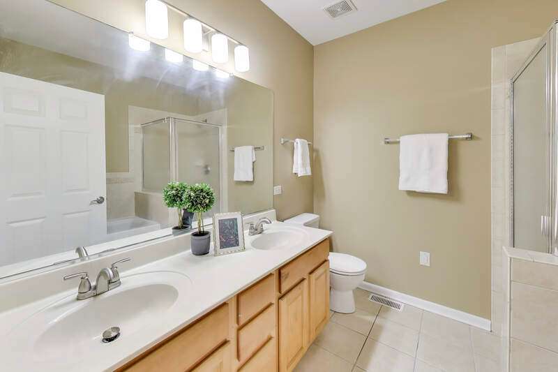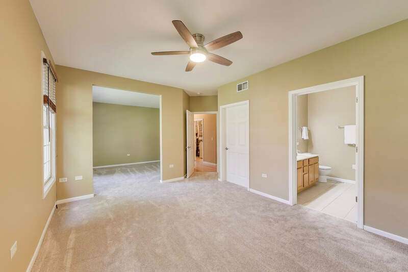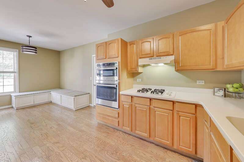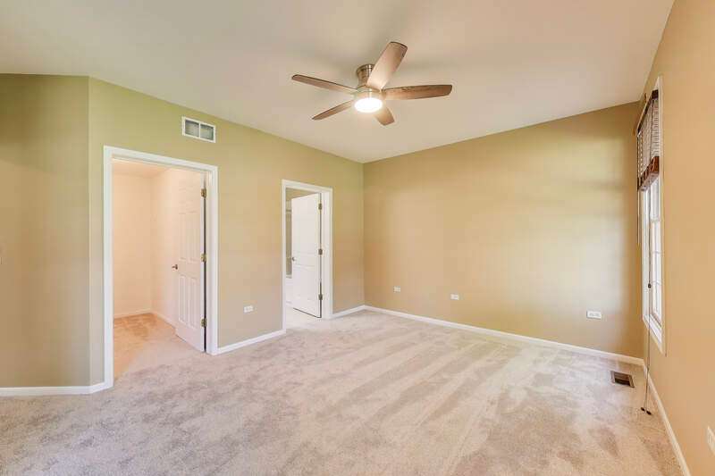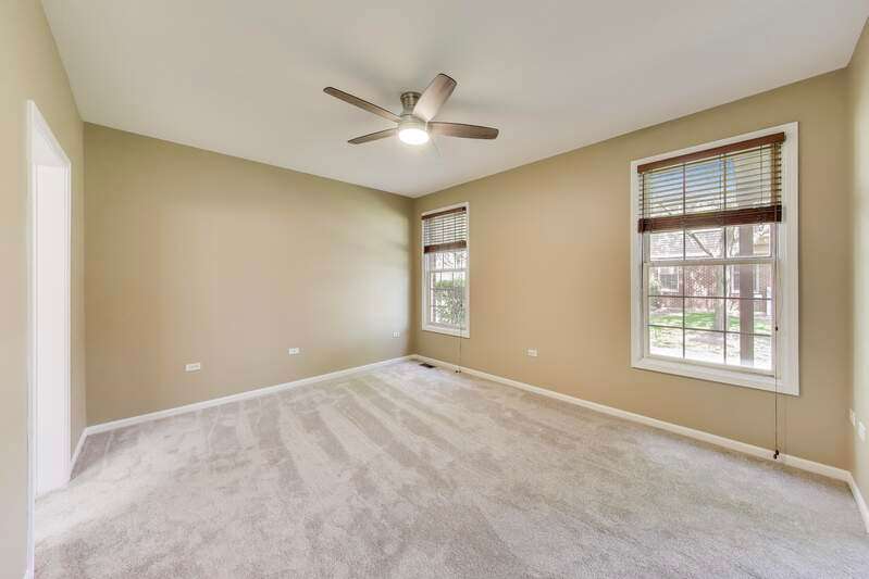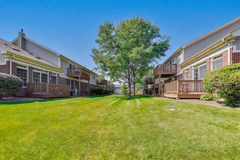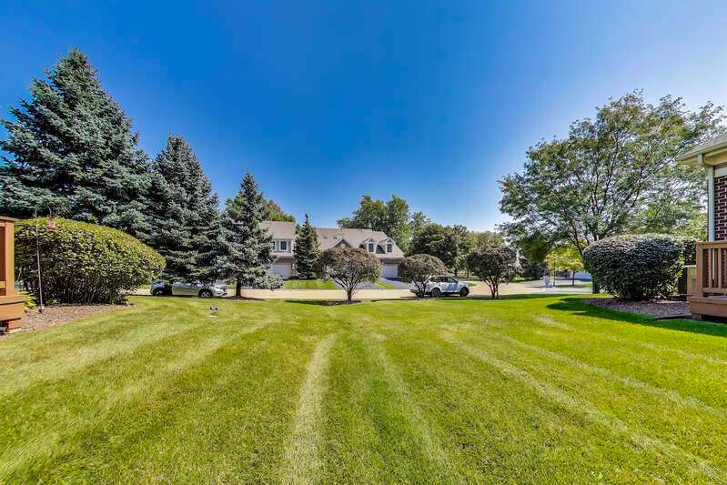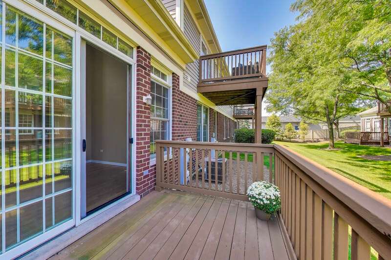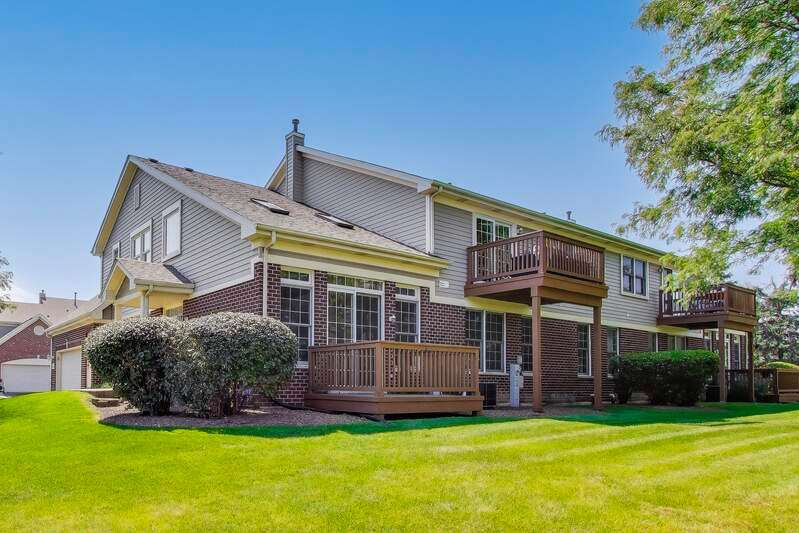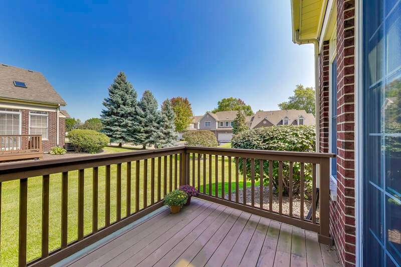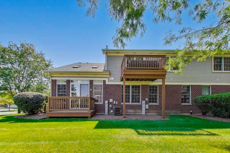 CHARMING RANCH END UNIT with 2-car garage in the Forest Ridge Westgate Valley subdivision! Rare private entrance and private driveway make this all brick townhome feel like a single family home! Easy living with everything you need on one floor including exterior access with a deck and beautiful professional landscaping. The location can't be beat and is close to everything including golf, schools, trails, shopping, restaurants, expressways and train. Wonderful spacious layout with newly-refinished hardwood floors, vaulted ceilings with two skylights, sunny living room, separate dining room and a large eat-in kitchen. Massive primary bedroom with BRAND NEW carpet, private bath, walk in closet and an extra 12x11 room a perfect for office, nursery, etc. as this room can be closed off with French doors. Second bedroom with BRAND NEW carpet offers a generous closet and easy access to the hall bath. There exterior is peaceful and perfect for entertaining. Lots of updates: BRAND NEW kitchen appliances, BRAND NEW roof, BRAND NEW carpet, newly-refinished hardwood floors, freshly painted throughout. You won't want to miss this one!