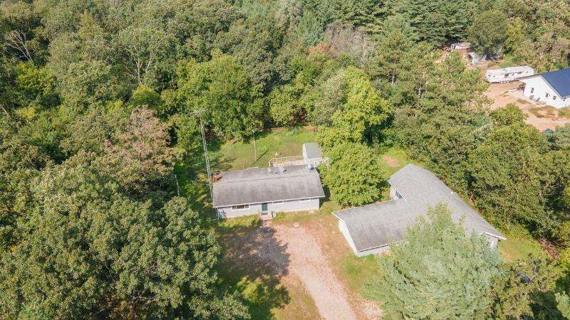 This spacious 4-bedroom, 2-bath home has a bathroom on the lower level that has a concrete floor This is perfect for anyone who needs room to spread out and yes, it comes with multiple garages enough for 10 cars or for all your projects, hobbies, and storage needs! Step outside to a massive deck ideal for entertaining, relaxing, or stargazing under the night sky. A cozy 3-season room provides a great spot for a hot tub or can easily be transformed into a glamping-inspired gathering space. Whether hosting family and friends or enjoying peace and quiet, this home offers the space, comfort, and versatility to fit your lifestyle.