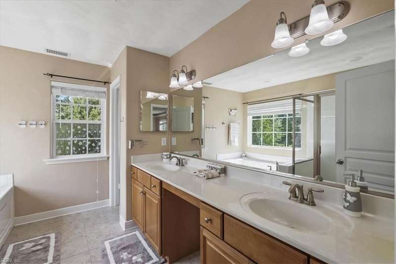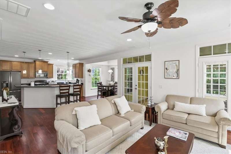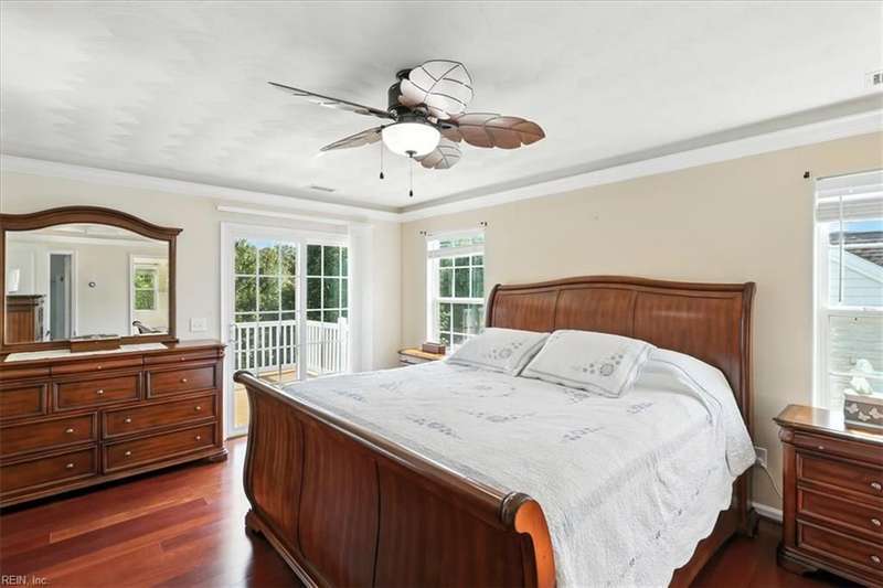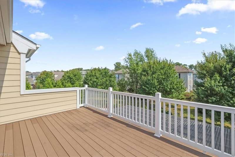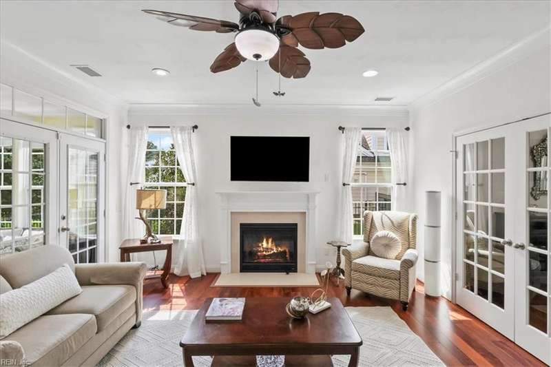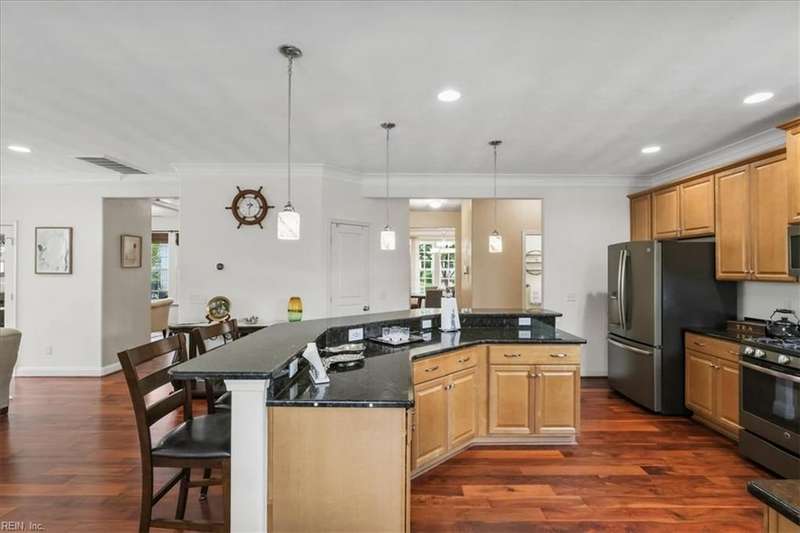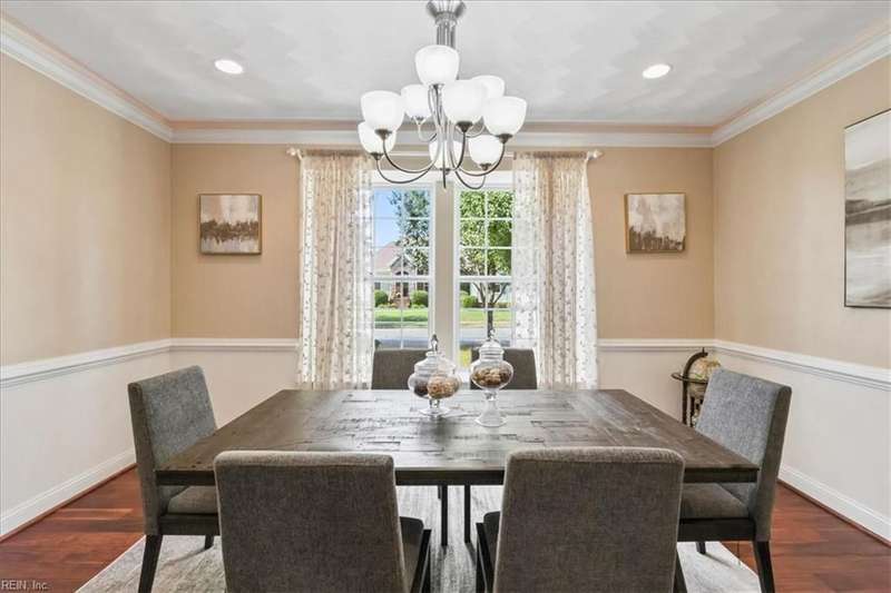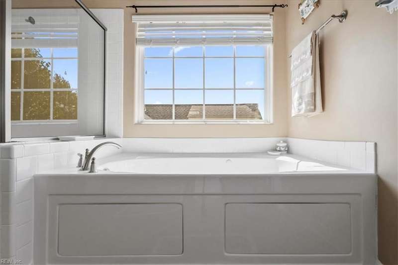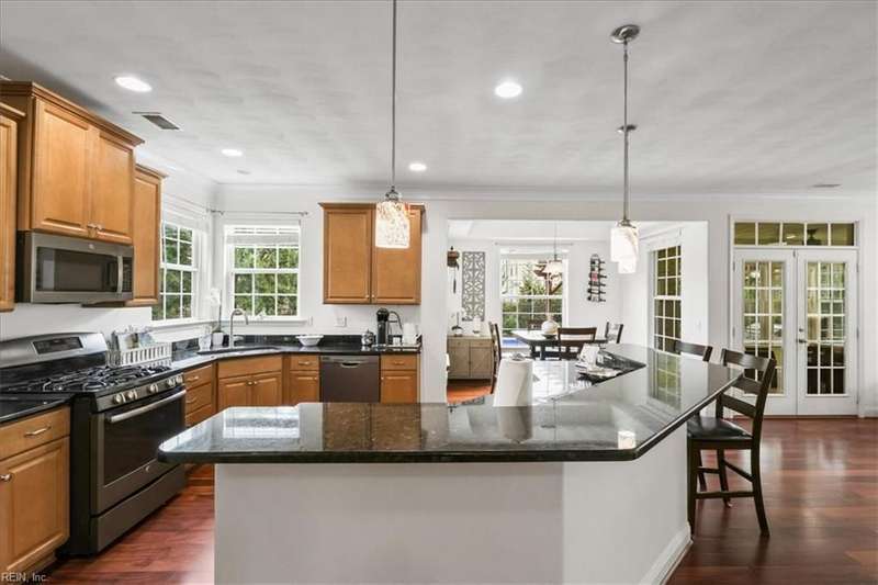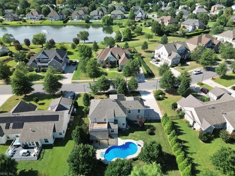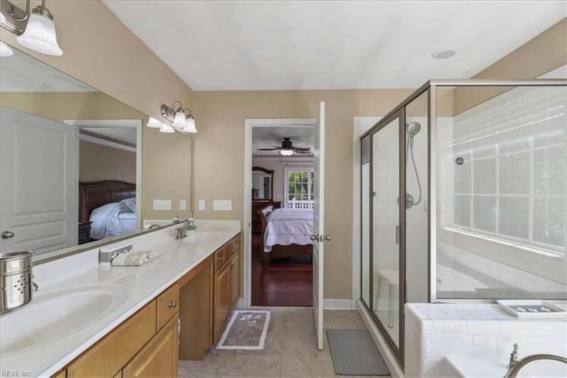 Imagine unwinding by your own sparkling pool at this beautiful North Shore home! A welcoming porch leads inside to an open, light-filled floor plan with versatile spaces perfect for both everyday living and entertaining. The kitchen features granite countertops and a breakfast area with views of the pool, while the sunroom and family room with a cozy gas fireplace invite you to relax and gather.Upstairs, the primary suite feels like a private retreat with elegant mahogany hardwood floors, a private deck overlooking the pool and garden, a sitting area (ideal for office or nursery), a spacious walk-in closet, and a spa-like bath with jetted tub, dual vanities, and separate shower. The finished room over the garage offers even more flexibility, complete with a full bath added in 2021,ideal for guests, a media room, or home gym.