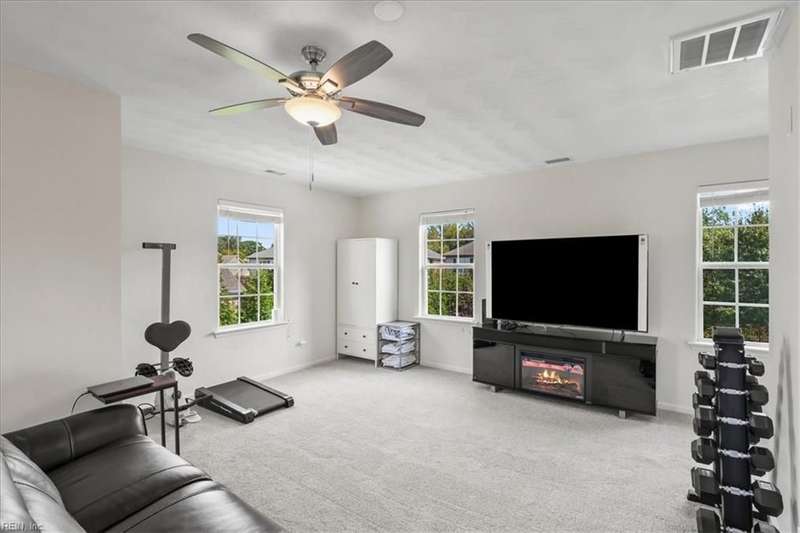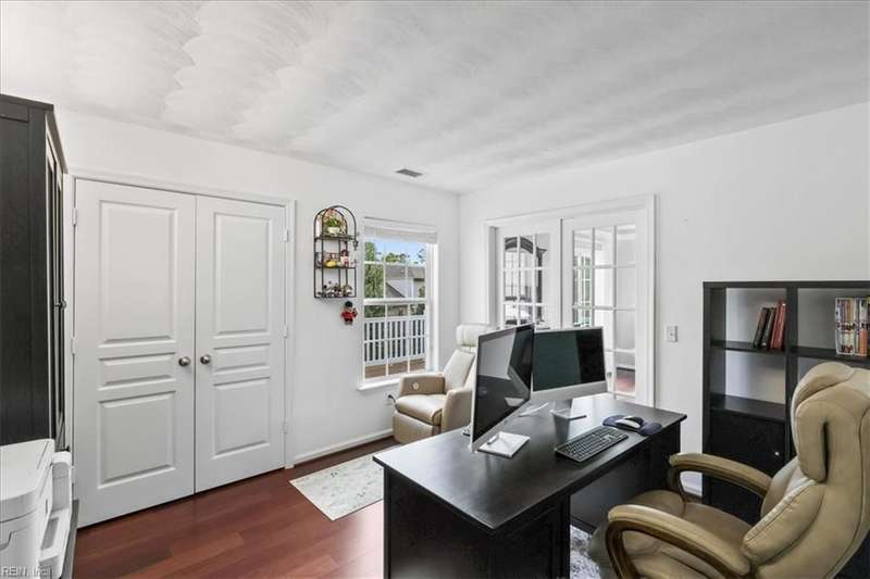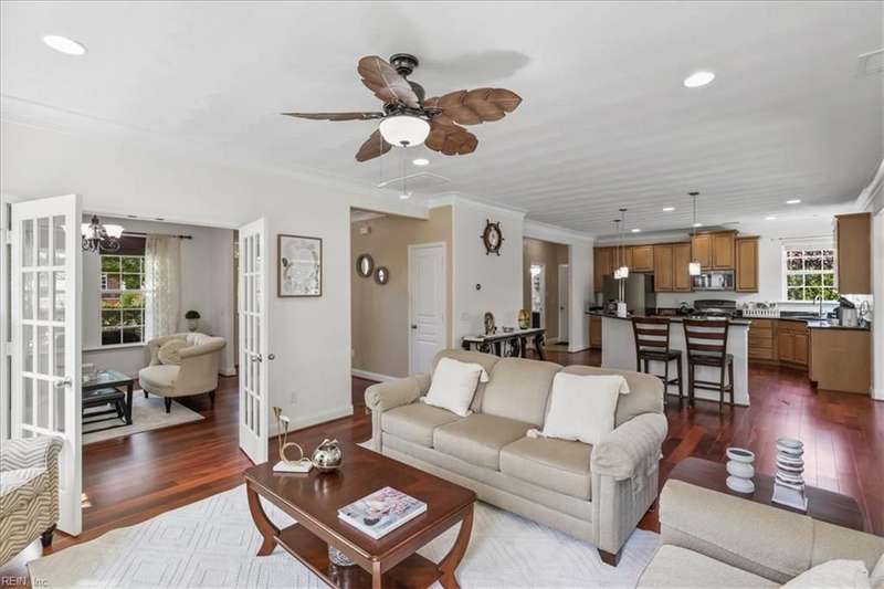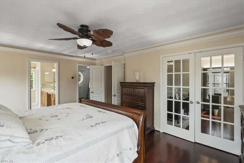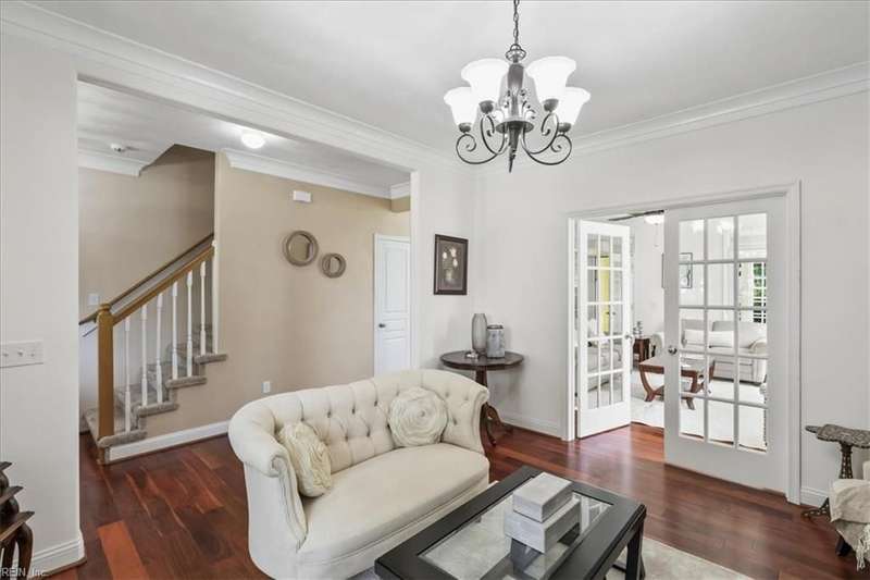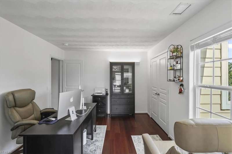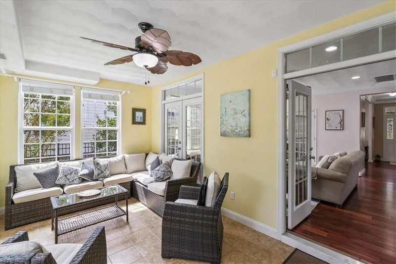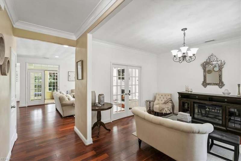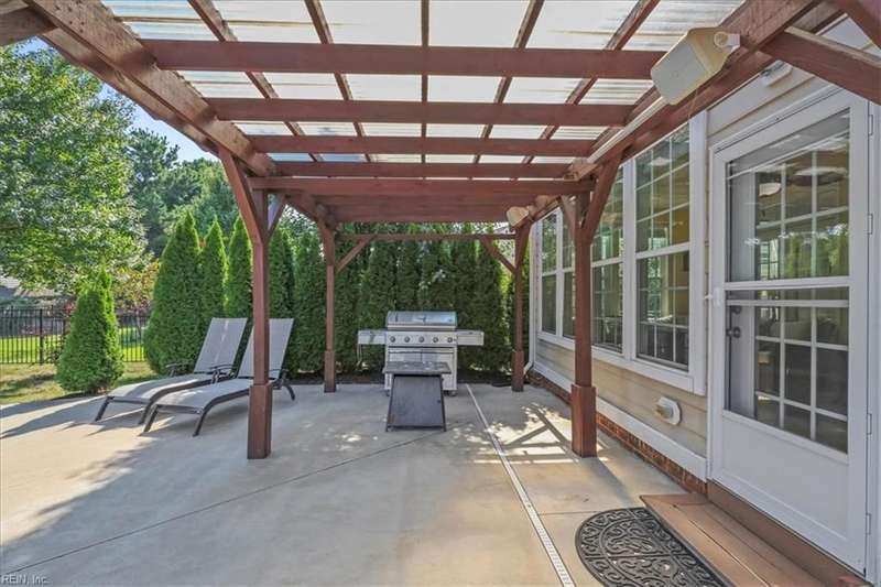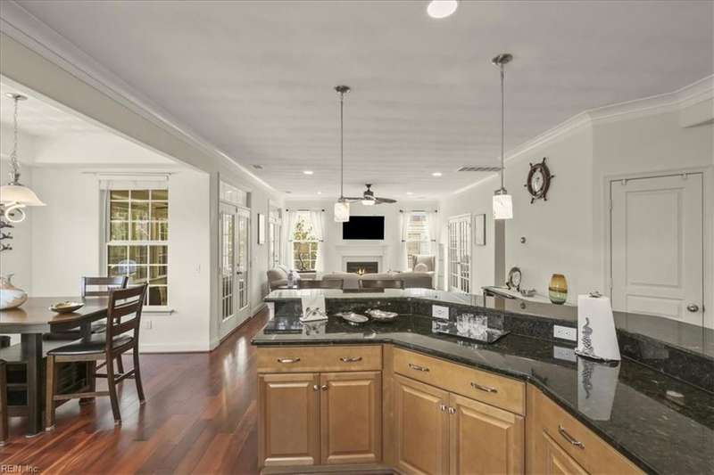 Imagine unwinding by your own sparkling pool at this beautiful North Shore home! A welcoming porch leads inside to an open, light-filled floor plan with versatile spaces perfect for both everyday living and entertaining. The kitchen features granite countertops and a breakfast area with views of the pool, while the sunroom and family room with a cozy gas fireplace invite you to relax and gather.Upstairs, the primary suite feels like a private retreat with elegant mahogany hardwood floors, a private deck overlooking the pool and garden, a sitting area (ideal for office or nursery), a spacious walk-in closet, and a spa-like bath with jetted tub, dual vanities, and separate shower. The finished room over the garage offers even more flexibility, complete with a full bath added in 2021,ideal for guests, a media room, or home gym.