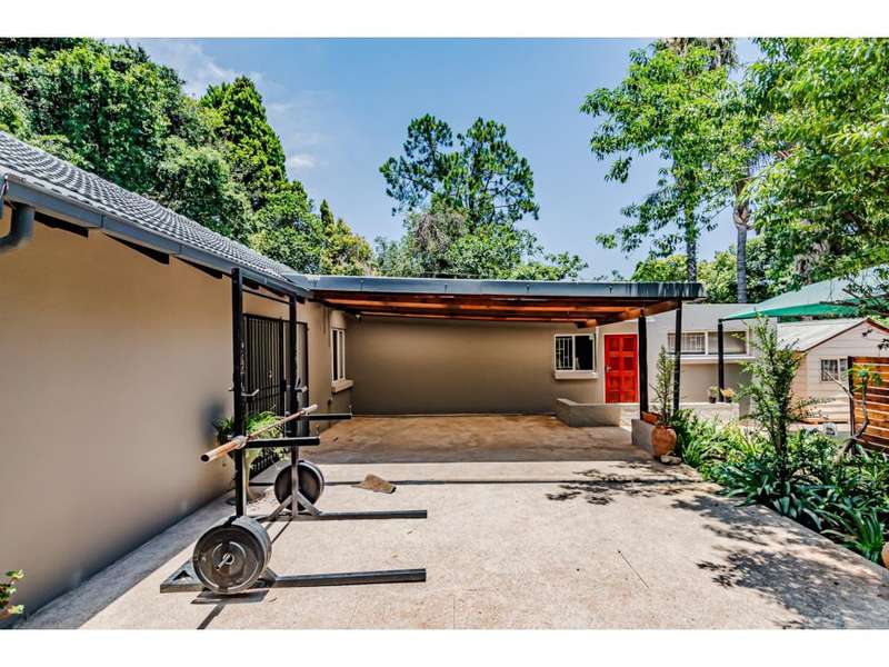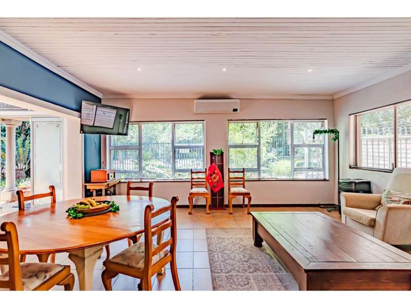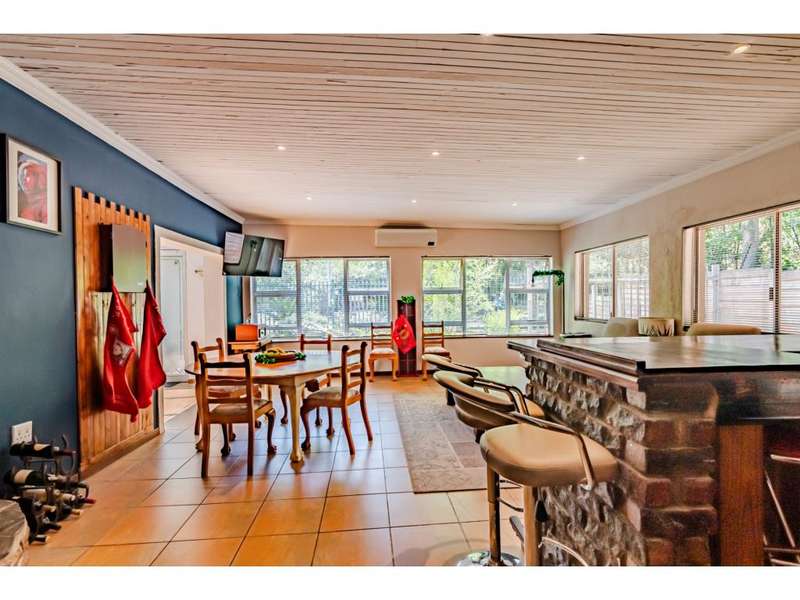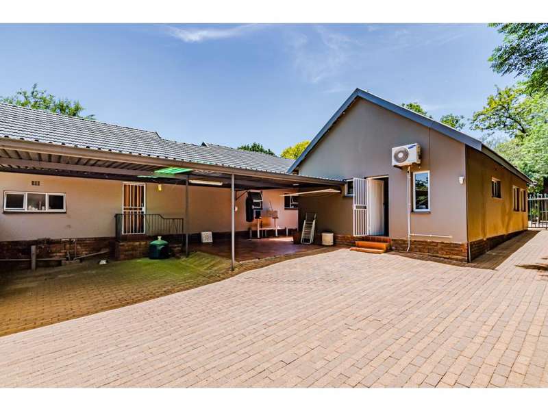 Family home with newly built 2 bed flat plus domestic quarters which could be converted to another 2 bedroom flat. Situated within the Lynnwood Glen boomed-off estate Walking distance from St Albans college Flat income R10k per month 2 entrances