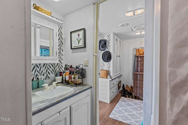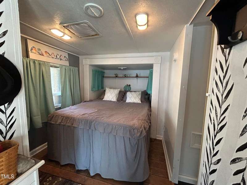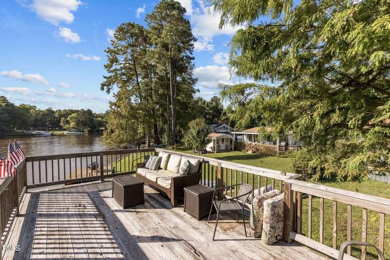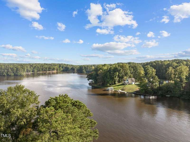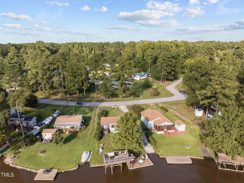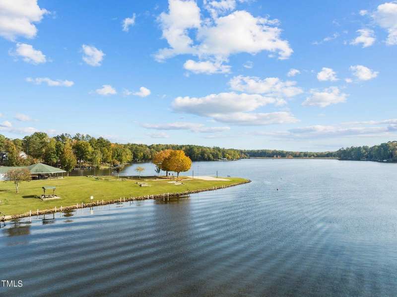 ''LAKEFRONT SANCTUARY IN A PREMIERE GATED GOLF-LAKE COMMUNITY CLOSE TO THE TRIANGLE'' Step into this exquisitely appointed lakefront retreat, where refined design meets waterfront leisure in the coveted gated community of the Lake Royale Resort community. This furnished two-bedroom, one-bath residence (camper/build-over) features a remarkable 30-foot build-over addition constructed in 2022, enveloped in natural light through expansive windows that frame panoramic water views.The open-concept living area is anchored by a custom shiplap wall and flows seamlessly to a 7′ ? 7′ covered entry porch and an 11′ ? 11′ hard-scaped patio. Double Slidng Glass doors open to a private 4′ ? 6′ balcony overlooking the lake ? the perfect vantage for morning coffee or sunset reflection. A second bedroom, offers flexibility for guests or a home office.Outside, entertain your friends on the elevated deck-over boathouse, launch your boat from your own ramp, and enjoy two dock slips and a boat lift right at your door. The landscaped backyard features a fire-pit gathering area and direct lake access.As a homeowner, you will relish resort amenities including an 18-hole professionally designed golf course, a 3.25-mile lake for water-sports and fishing, beaches, pool, pickle-ball, tennis and much more with lots of scheduled activities for all ages. All this in the gated enclave of Lake Royale.Impeccably maintained, this furnished and move-in ready, home delivers a rare combination of luxury, location, and lifestyle. Schedule your private showing today to experience lakefront living at its finest and discover how this exceptional home fits your refined lake-living aspirations.