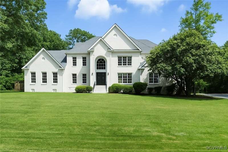 This is your chance to reside in this handsome transitional estate on three private acres in Henrico County, next to Richmond, Virginia and near both the Steward and Collegiate Schools! As you wind up the tree-lined and landscaped driveway, you will instantly breathe easier. Upon entering the front double doors, you will be greeted to a visual treat with a dramatic two story foyer including a sweeping staircase. Beyond is the 17' high ceiling in the Great Room enhanced by a curved wall of double level windows for an ocean of natural light! Throughout the first level are mainly wood, including Brazilian walnut floors. Open concept kitchen will never let you forget that it is the true hub of this residence. Enormous granite islands(2) with prep sink, wall of banquette seating, and incredible heated tile floors give you a warm feeling while you enjoy family meals, entertain or read while sipping morning coffee. The primary suite is beyond compare with two floors of rooms (one of which is a rounded observation room with windows galore), two walk in closets, a marble bathroom, and a cozy gas fireplace. The four story elevator will allow you, your family and your guests to move with ease throughout the home for years to come. Prepare to enjoy the outdoors as the gunite heated pool with 12 seat spa surrounded by quartzite are not to be missed. You will feel as if you're living in the country as the entire yard is secluded by flowering trees while retaining plenty of open space for recreation. You will find you will not want to leave your tranquil resort style residence, so do not hesitate to take a peak at this impressive estate as soon as you are able.