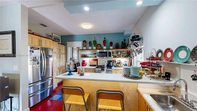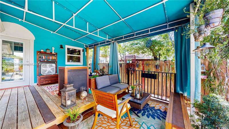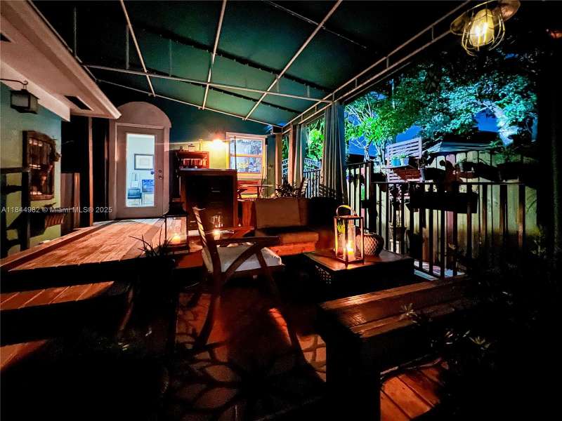 Impeccably upgraded 4-bedroom and 2-bathroom home with solid red oak floors and eco-friendly improvementthroughout. In-laws suite with its entrance. Impact windows, hurricane-rated roof, and a 7K generator ensure top-tier storm protection. Kitchen features custom solid wood cabinets, stone counters, new stainless steelappliances, and a natural gas stove. Updated plumbing and electrical with 200-amp service, surge protection, and whole-house generator diverter. Private courtyard with hot tub, expansive awning-covered deck, and fully fenced yard with gated driveway and off-street parking for 3. A smart security system. A fully electrified yard, video doorbell, and shed with tools are included. Zoned for duplex conversion. Conveniently located. Enjoy 3D tour! May the force be with you!