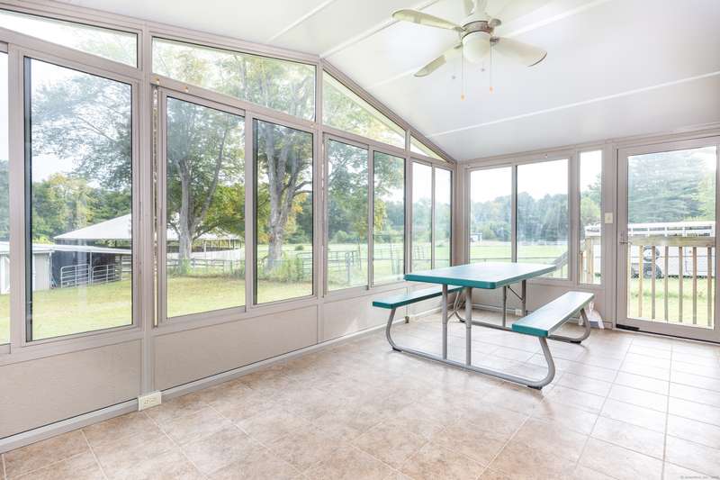 Ever dreamed of having your horses at home? Here is your chance. Lovely small horse farm with big farm amenities! Approx. 120x220 outdoor well maintained sand ring, covered 60x85 arena with lights to keep your horses fit through the winter. Super large field for additional riding, x-country course, jumping, western pleasure, or just grazing. Current owner gets 250-300 bales of hay, if you so desire. Hay shed on property. 4 stall barn, with possibility of 5th stall. Some paddocks have auto watering. 2 tack rooms. For summer pleasure there is a nice pool as well. Enter the home via a covered 9x9 front deck leading into a huge mudroom. Here you will find lots of closets, your 1/2 bath, laundry and access to a fabulous 17x10 3 season porch overlooking pastures, horses and the barn. Large, well appointed eat in kitchen leads into the formal DR. DR is open to the living room with nearly floor to ceiling windows, a perfect space for entertaining. On this level you also have 2 bedrooms and